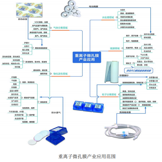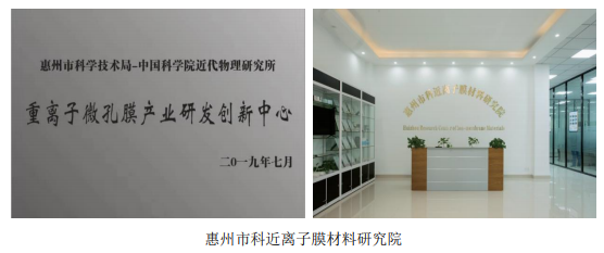 中国科学院近代物理研究所拥有亚洲能量第一的兰州重离子加速器装置(HIRFL),拥有生产重离子微孔膜独一无二的先决条件。2012 年,近代物理所在 HIRFL 上自主建成第二条核孔膜束线 TR6重离子微孔膜辐照生产终端,该终端 1 小时最大辐照 1万平米;2015年,建成武威、枣庄、徐州蚀刻基地,可批量化生产多达二三十种型号的重离子微孔膜;2019 年,在惠州成立重离子微孔膜产业研发中心和惠州市科近离子膜材料研究院,从事新材料研究和技术开发和推广,重点进行重离子微孔膜技术在水处理领域的研究和工程示范、以及企业孵化。