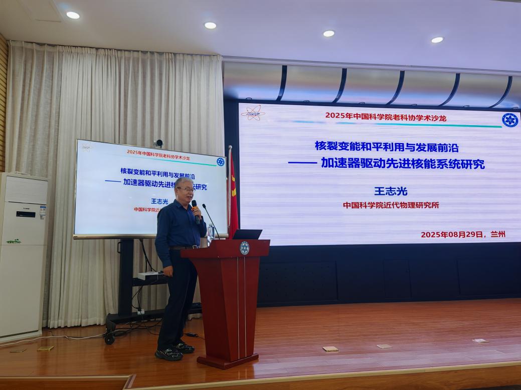 8月29日上午,由中国老科协、中国科学院老科协、中国科学院兰州分院、中国科协创新战略研究院主办,中国科学院兰州分院老科协和中国科学院近代物理研究所共同承办的“核技术在清洁能源领域的应用”学术沙龙在兰州召开。中国科学院科学智慧火花委员会副主任、专家组组长、理化技术研究所原党委书记黄勇,甘肃省老科协会长杨祁峰、副会长周邦贵和任贵忠,兰州市老科协会长宋海慧,兰州分院纪检组组长吴建刚,近代物理所纪委书记宋华龙以及兰州分院老科协会员、分院系统各兄弟单位离退休工作人员40余人参加了活动。本次沙龙由兰州分院老科协秘书长张健主持。