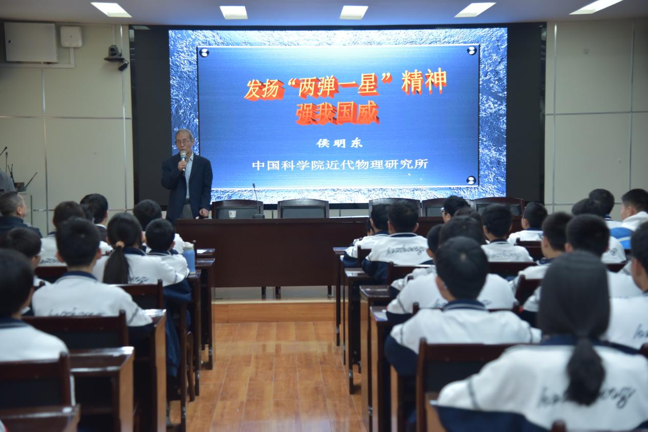 为进一步弘扬科学家精神,激发青少年科学梦想,4月22日,近代物理所联合兰州市城关区科技街社区,在中国科学院兰州分院中学开展了老科学家进校园科普讲座活动。活动特邀近代物理所核物理退休老专家侯明东研究员作了题为《发扬两弹一星精神 强我国威》的专题科普报告。