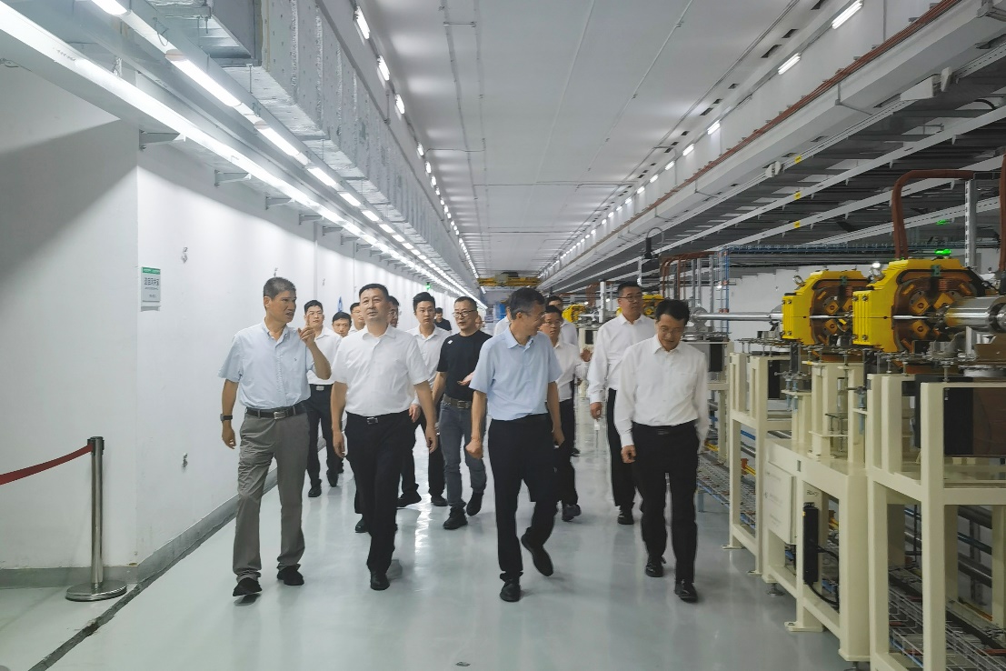 随后,张虎一行实地参观了HIAF装置,在了解到HIAF建设过程中突破的关键核心技术已用于惠州新一代医用重离子装备小型化、智能化,远程医疗等攻关,他表示省市会全力配合装置“沿途下蛋”工作,形成装置边建设、边转化、边运行的良好示范。