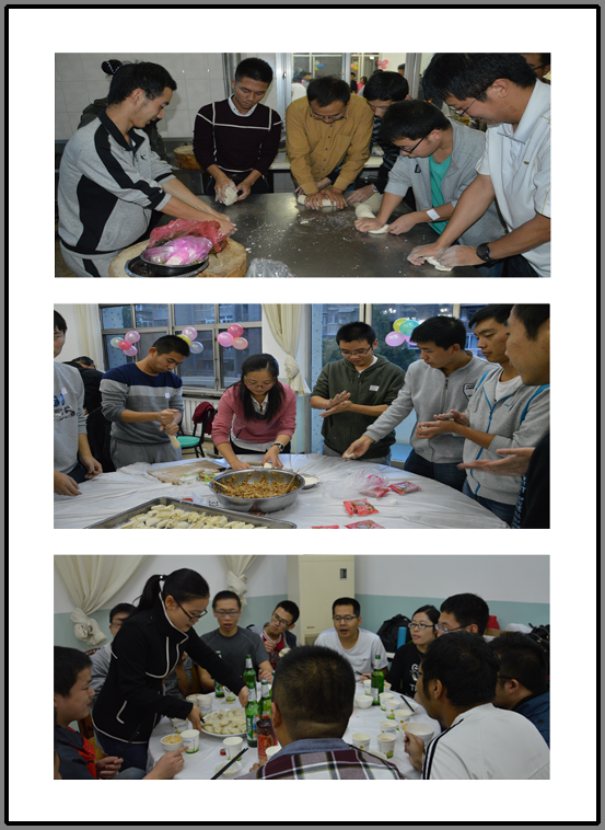 近代物理所研究生举行的包饺子大赛,将参赛的同学分为6个组别,在40分钟内包饺子最多、质量最好的即为获胜者。当粉扑扑的面团和香喷喷的饺子馅端上桌时,整个食堂沸腾了,同学们摩拳擦掌、迫不及待地操作起来,擀皮的擀皮,包馅的包馅,不一会功夫,一个又一个饺子呈现在眼前,其中不乏做工精巧、皮薄馅足的精品饺子,也有造型各异、别具一格的创意饺子。大约40分钟后,各组煮好的饺子全部端上桌,大家品尝着自己的劳动成果,谈笑风生,好不惬意。