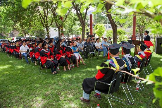 毕业典礼在雄壮的国歌声中开始。赵红卫宣读了《近代物理研究所关于准予杜成名等54名研究生毕业的决定》。嗣后,在高昂奋进的音乐声中,赵红卫、袁平、马新文等为毕业生颁发毕业证书,肖国青为毕业生拨流苏,并握手祝福。肖国青在致辞中向圆满完成学业的全体毕业生表示热烈的祝贺,向为研究所教育事业辛勤付出的导师表示真挚的感谢。肖国青希望毕业生认真学习不久前召开的全国科技创新大会上习近平总书记的重要讲话,时刻牢记“科技创新是强国富民的关键”,以后无论是从事重离子科学研究,还是从事其他领域的工作,都要勇于担当,直面挑战,坚持对科学的信仰,坚持对真理的追求,坚守科研道德底线,不断探索、敢于创新,不辜负国家、社会和近代物理所的培养。