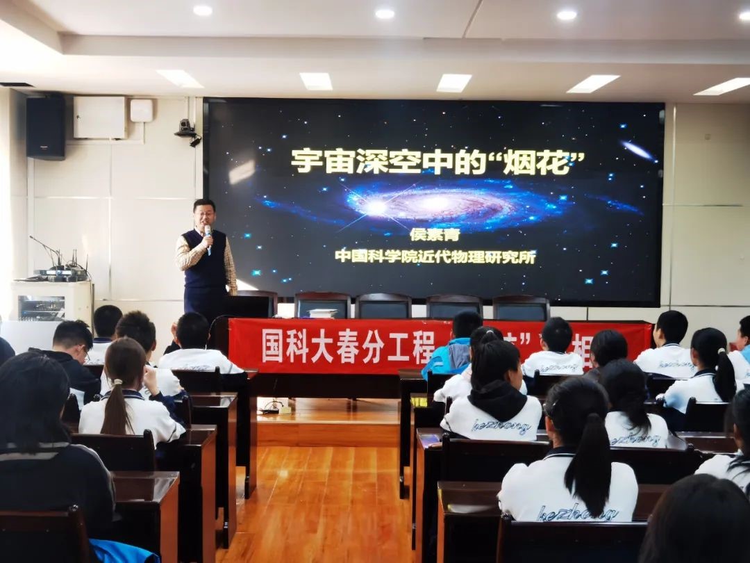 为加强青少年的科学素养,增强青少年科技创新意识,10月17日,近代物理所侯素青研究员赴科学院中学开展了国科大春分工程 “核”你相约核科普活动,为同学们作了一场精彩绝伦的讲座,向大家介绍了一种别具一格的"烟花"——恒星,并带领同学们在宇宙深空中遨游。