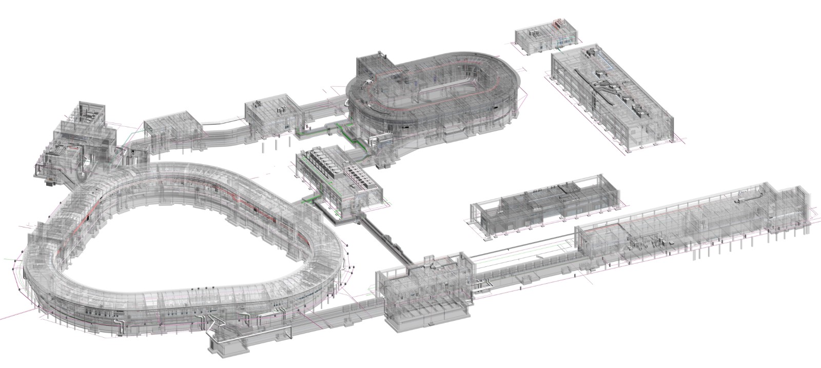 HIAF地下隧道与地上单体联合等轴透视图