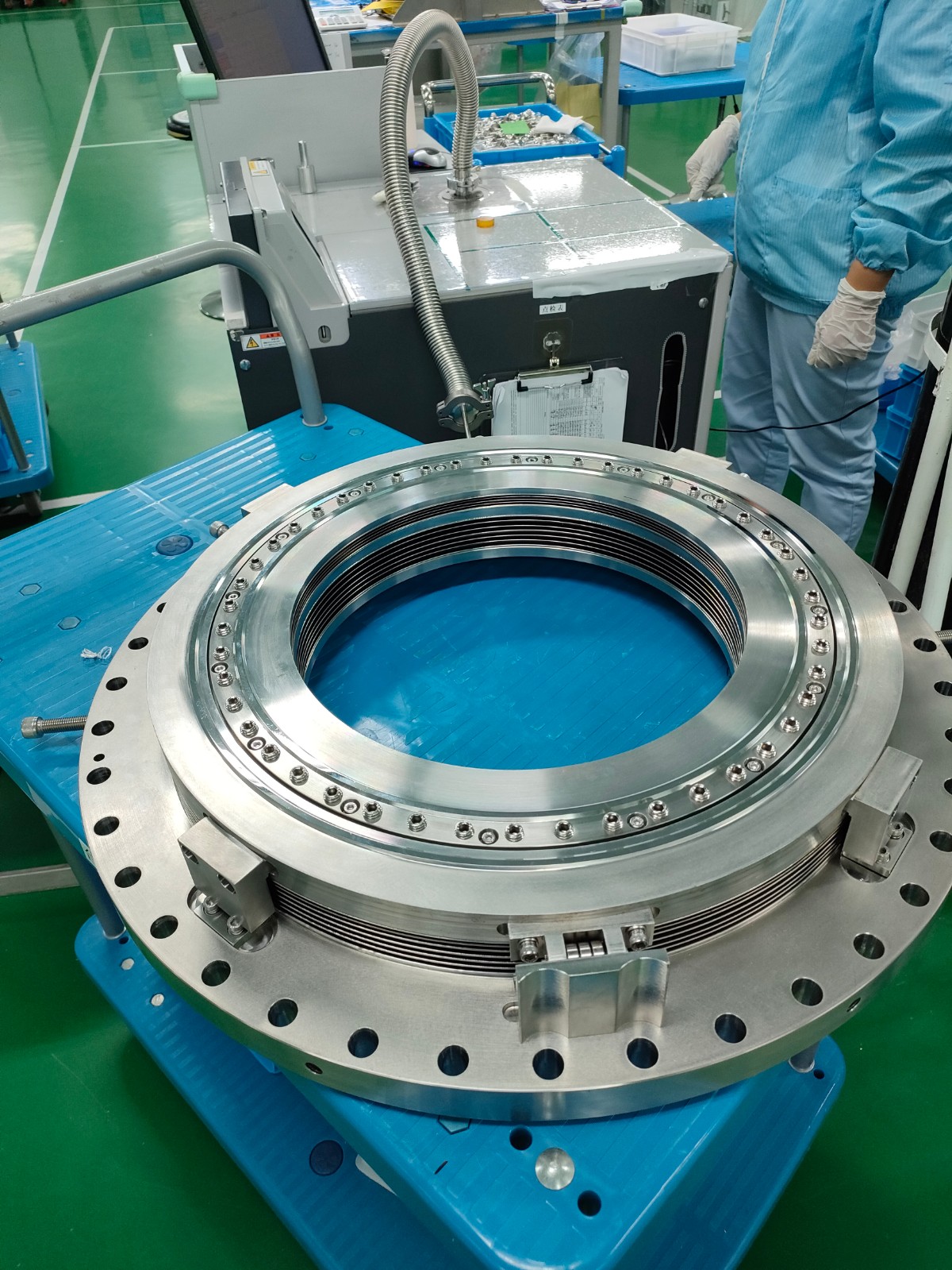 2022年9月,首次提出了一种分体式平面密封充气法兰结构,并完成DN350mm首台套加工及测试。