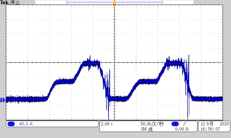 图3为4高压1低压串联负载86mΩ,20mH脉冲输出2000A。