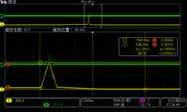 图片4为3Hz 1500A 连续4个脉冲输出;