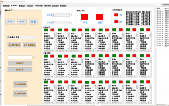 HIAF BRing 二极铁电源样机现场调试取得新的进展,目前正在进行不同厂家单支路、四高压源一低压源、满功率2000A/3Hz、72小时拷机测试。同时对三个支路的重要器件温度进行了对比与分析,包括高压源整流二极管温度、高压源H桥IGBT温度、叠母温度(电容温度)方面、进出水温度、变压器、电抗器温度等。数字控制器方面完成上位机调试界面、主控制器、从控制器主要功能模块程序开发,基于1个主控制器串联2个从控制器的:上位机调试界面到主控制器之间的通信功能测试、主从控制器之间的通信功能测试以及主控制器的故障保护功能测试。