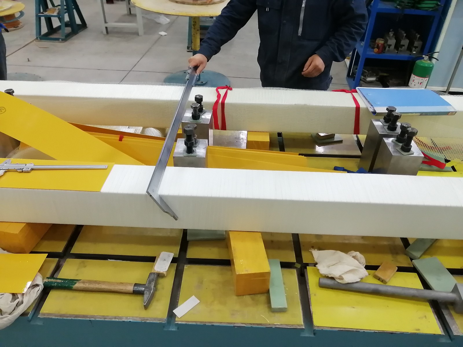图1和图2分别为半铁芯端部削斜和削斜后的检测,图3为铁芯预装配完成后进行气隙检测,图4和图5分别为线圈浇注前的尺寸检测和电阻测量,图6为稳态测磁装置组装调试现场。
