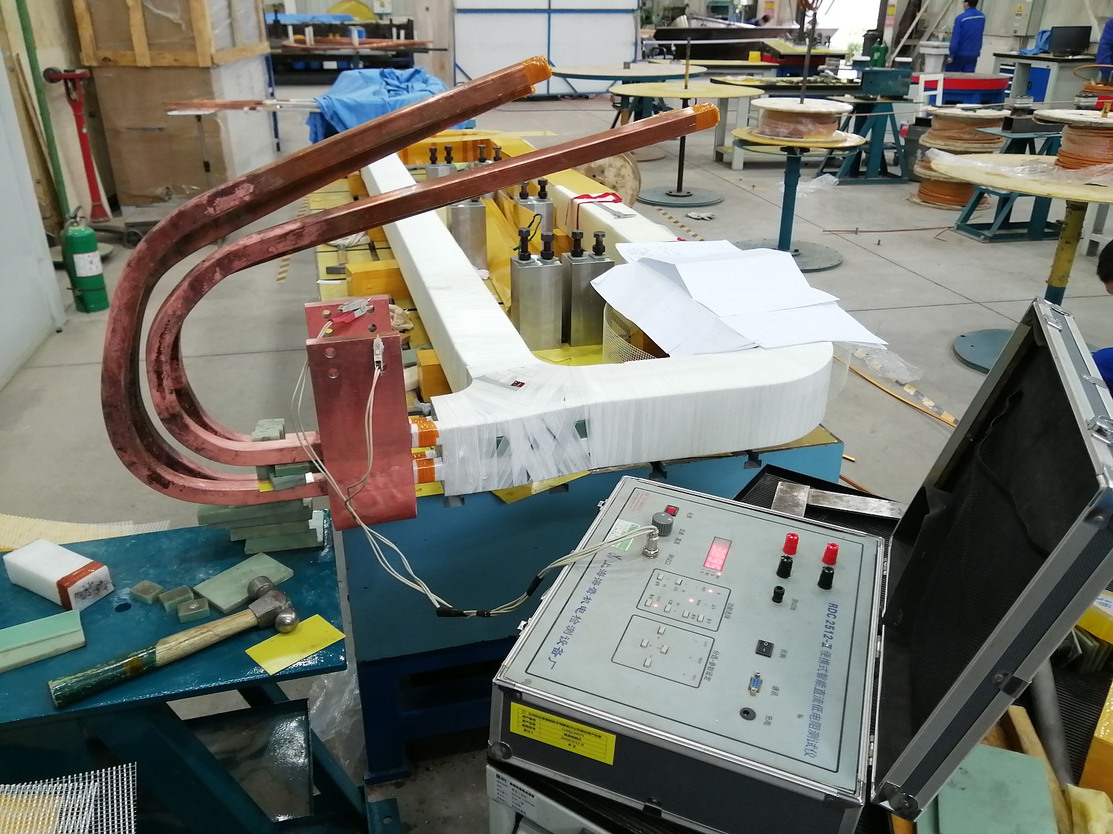 2020年5月,铁芯预装配完成,并完成拉耳焊接、检测和定位;半铁芯端部削斜、检测完成;两个线圈绕制和浇注全部完成;高精度直流测试电源组装、调试完成,具备出厂验收条件;稳态测磁装置总装完成,开始整体调试;动态测磁矩阵线圈工艺方案确定。
