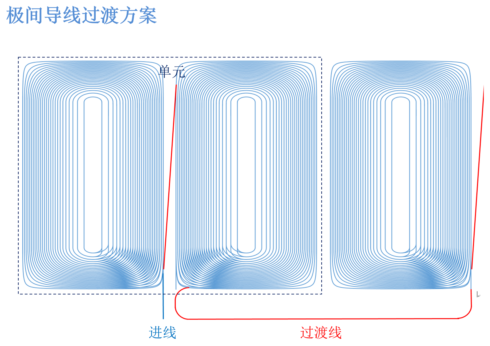 图1为由绵阳厂家完成的四支G10骨架坯料;图2为由北京厂家完成的一支G10骨架坯料;图3为匝间导线过渡方案示意图;图4为国产低温环氧浇注件冷激前后的表面对比图;图5为G10骨架缠绕制作现场。