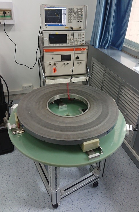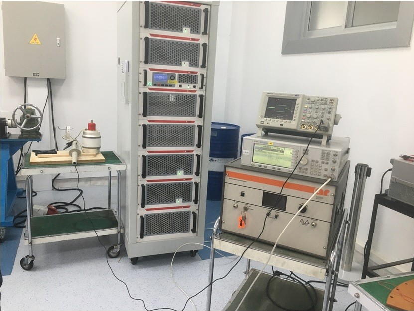 图1为大尺寸磁环高功率密度测试装置 ;图2为射频耐压测试;图3为冷热态磁环性能测试平台;图4为高频系统全数字低电平自环测试系统。