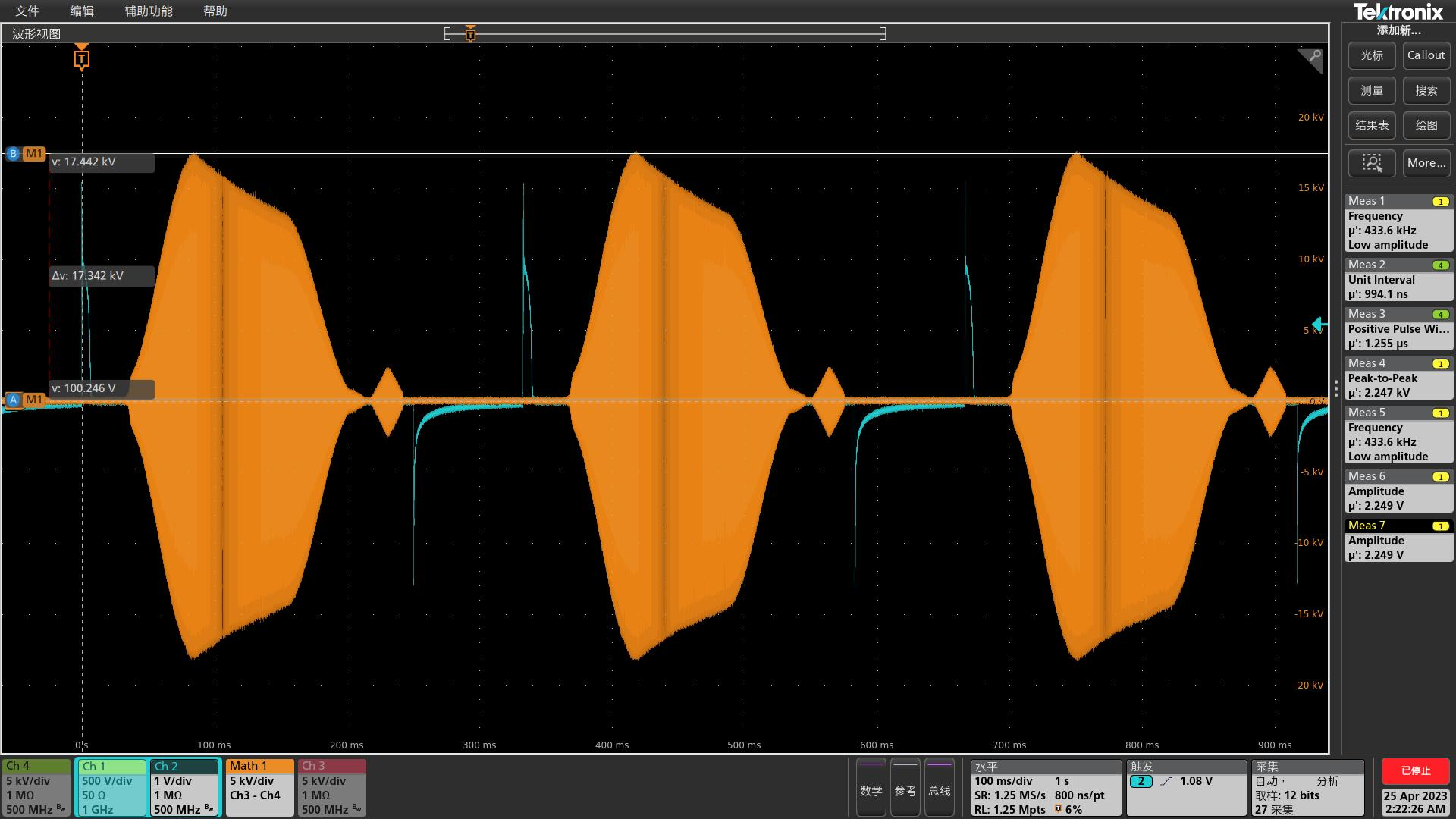 图2为3Hz腔体单间隙电压取样信号,腔体包含三个加速间隙。
