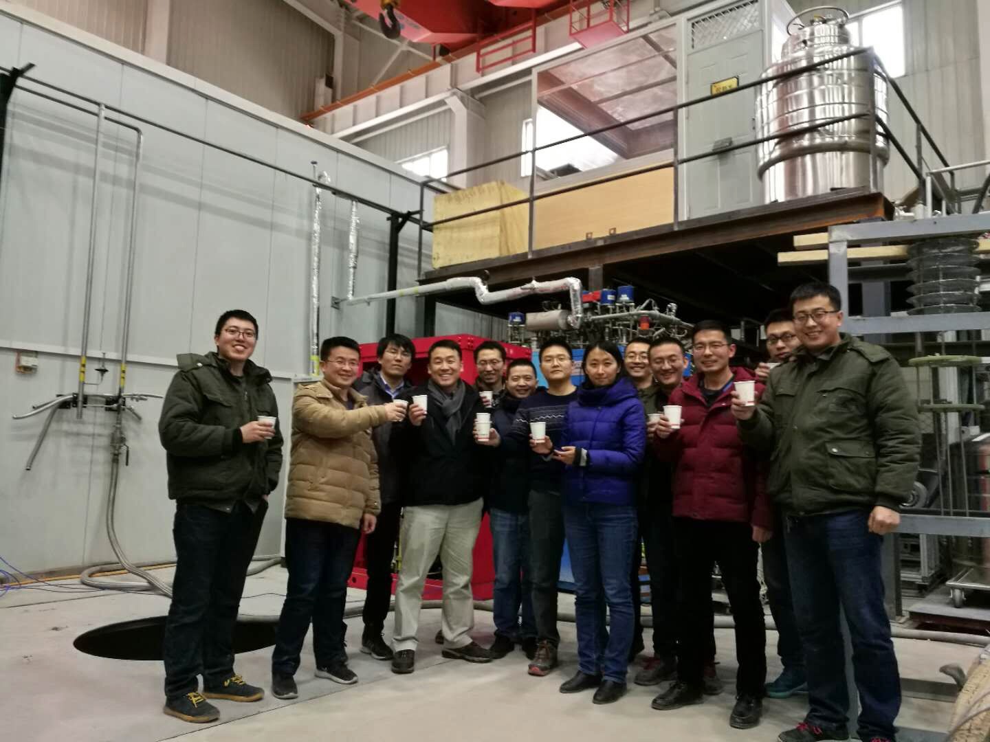 图7 二分之一样机六极线圈加电成功现场FECR研究团队