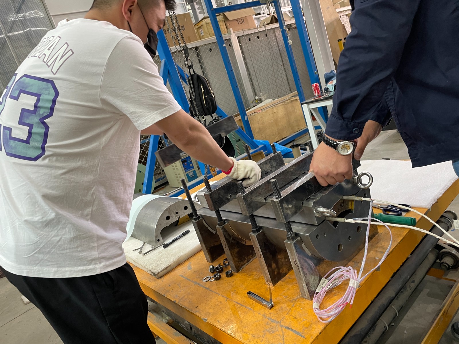 完成了FECR冷体线圈垫补和调整,装配;磁体线圈进行了初步电气检测;调整安装尺寸,完成了磁体垂直测试安装;分配垂直测试法兰端部各法兰接口;完成了应变引线连接和初步调试;制作完成电流引线延长铜排和安装;开始准备电流引线、电压引线、测磁工装、温度计等的布置,进入低温励磁测试。