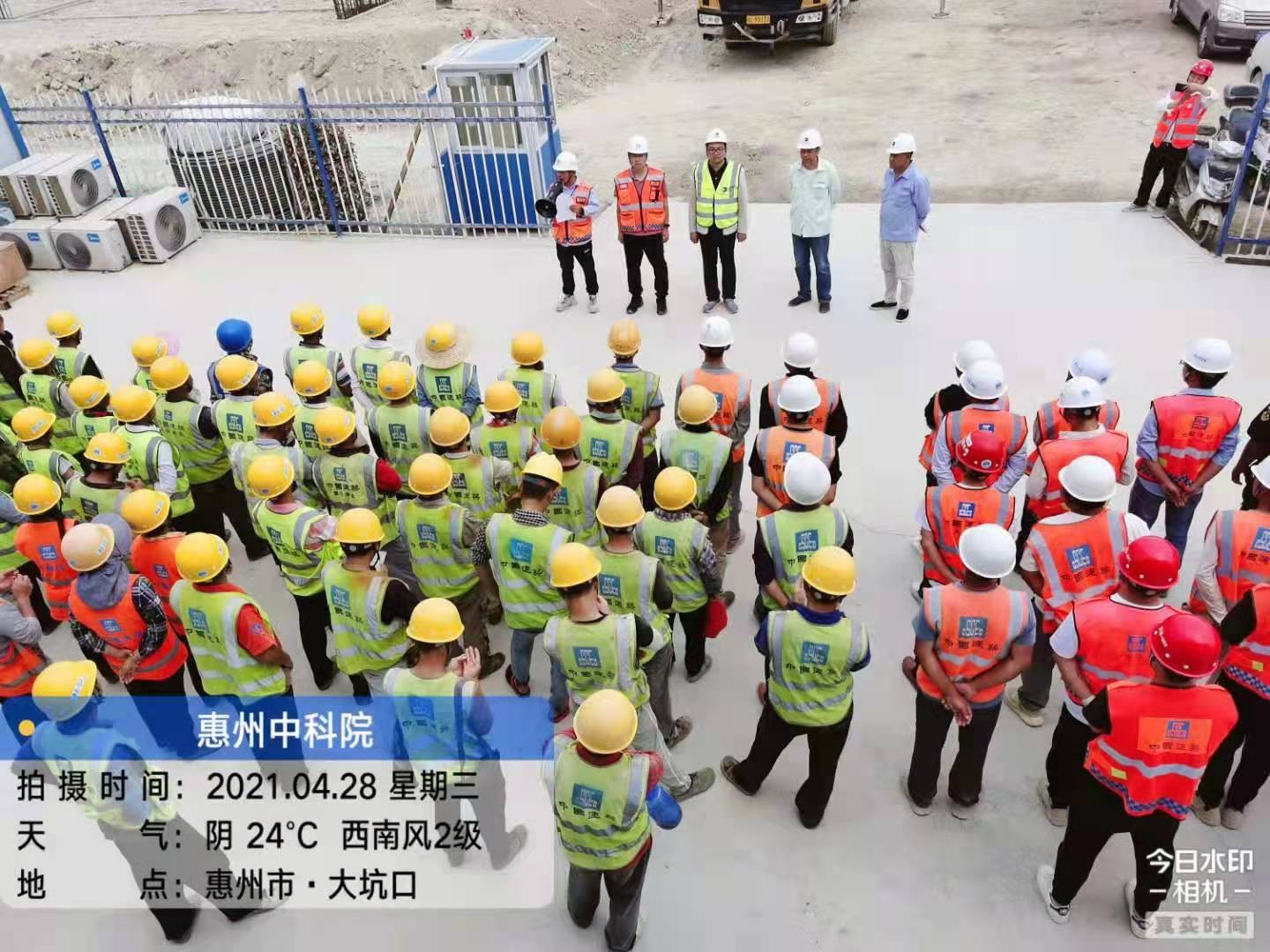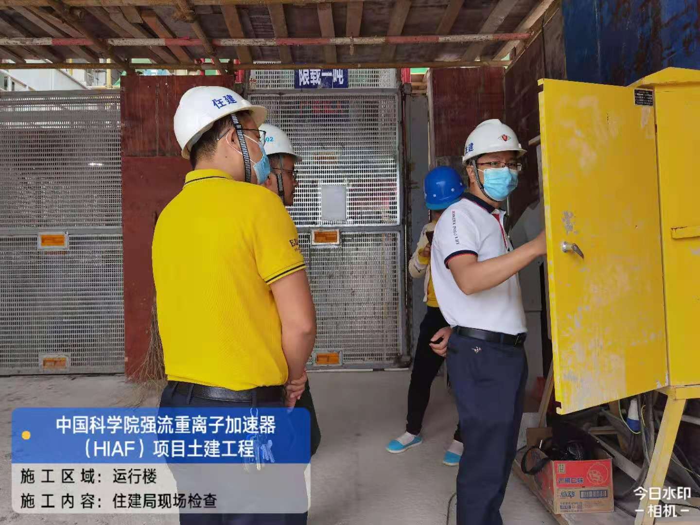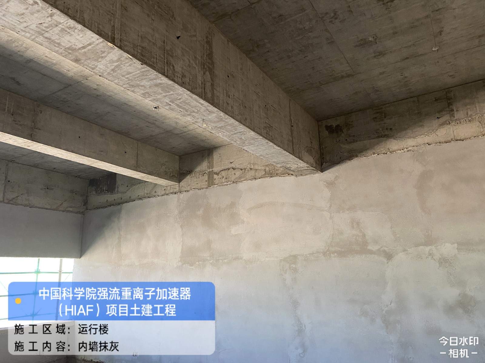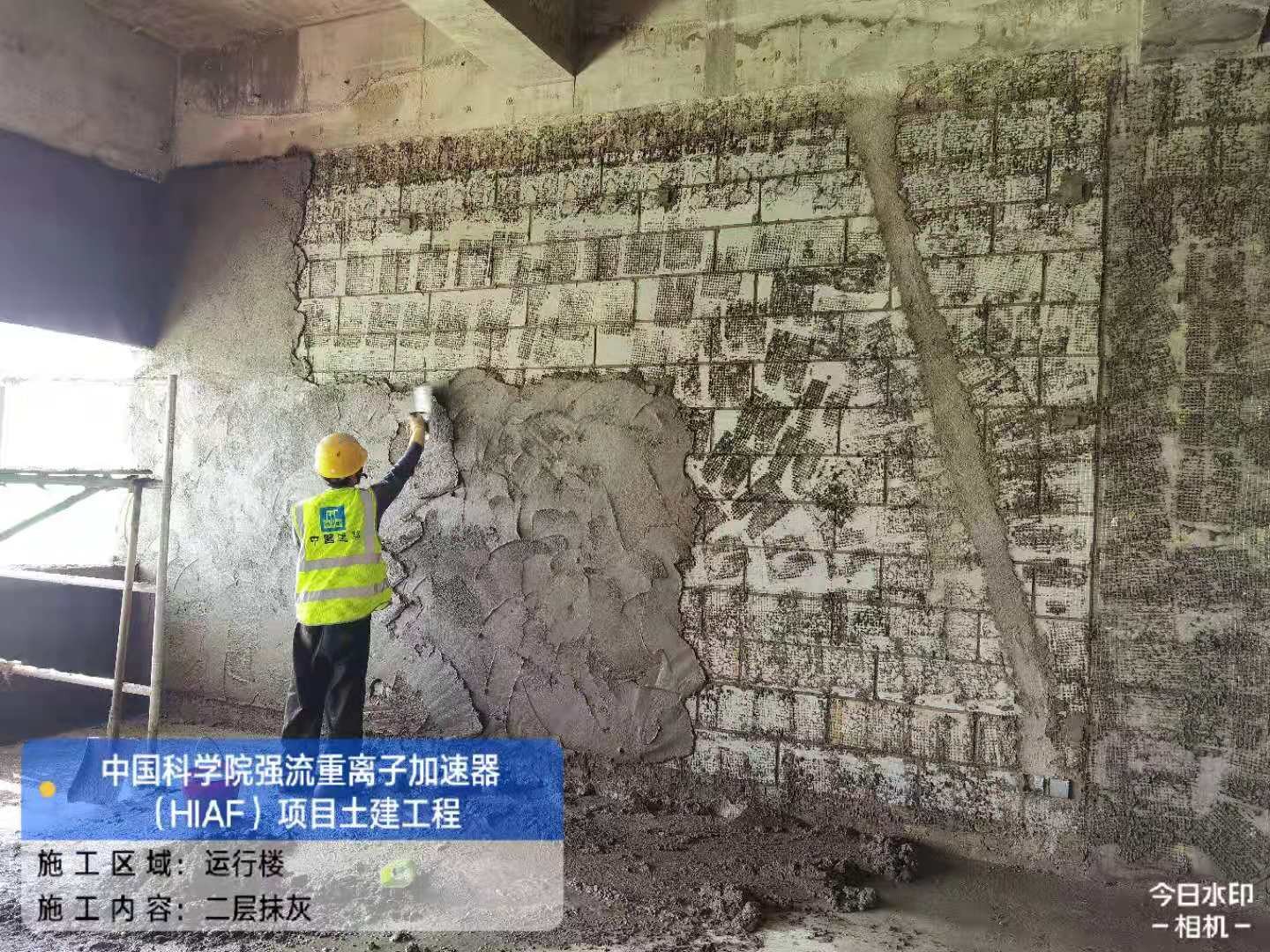 截至2021年5月10日,HIAF主体工程桩施工方面,已完成加速器隧道工程桩施工,三号综合站房工程桩已完成3根,综合测试大厅工程桩已完成2根,科学之门已工程桩完成6根。给水机房施工方面,已完成给水机房内架搭设,外架搭设已完成80%,屋面层梁板模板安装已完成30%。