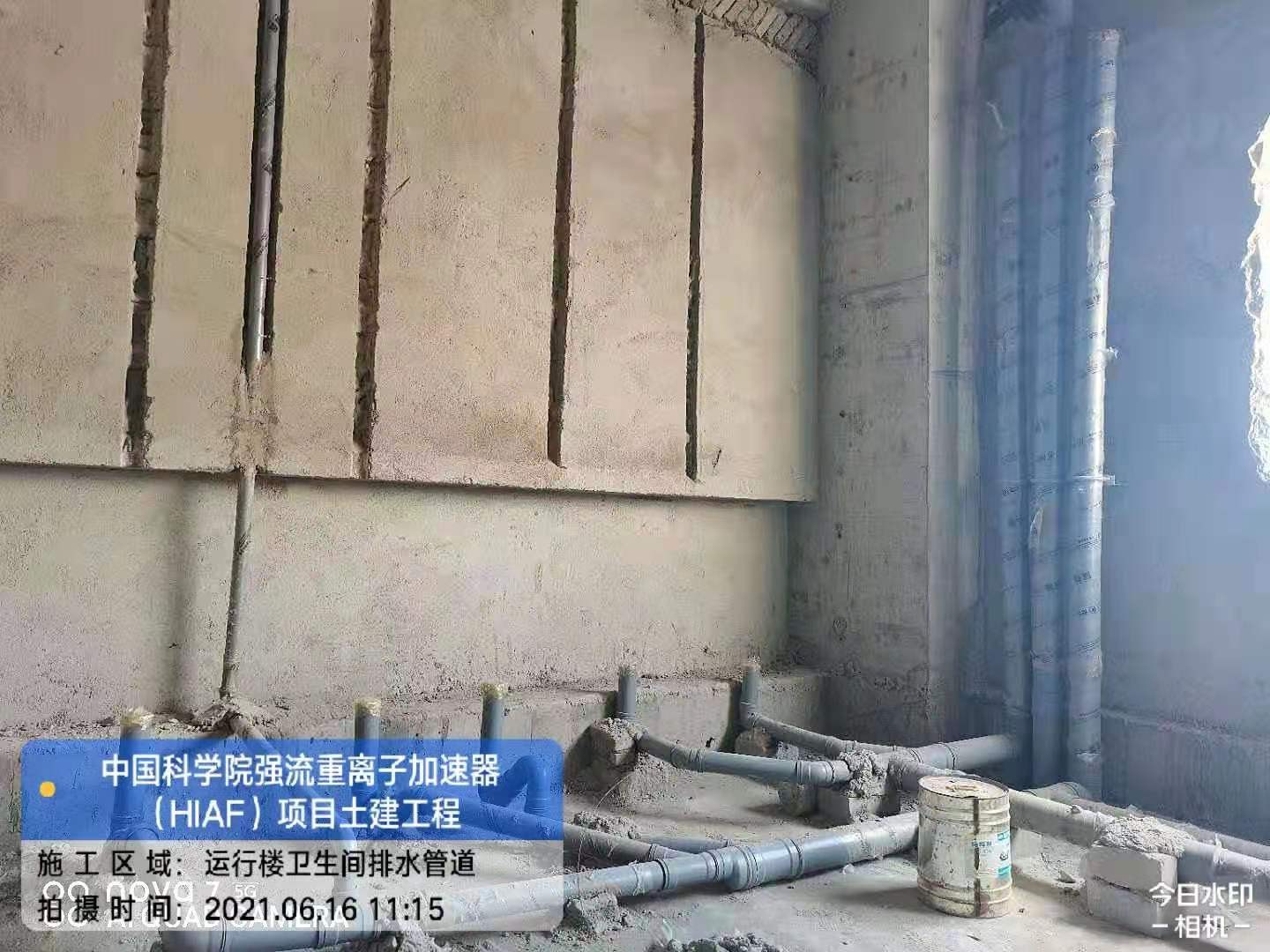 截至2021年6月15日,运行楼外墙抹灰完成约95%,外架拆除完成约50%,1-2层消防管道完成80%,运行楼1-2层卫生间管道完成60%。
