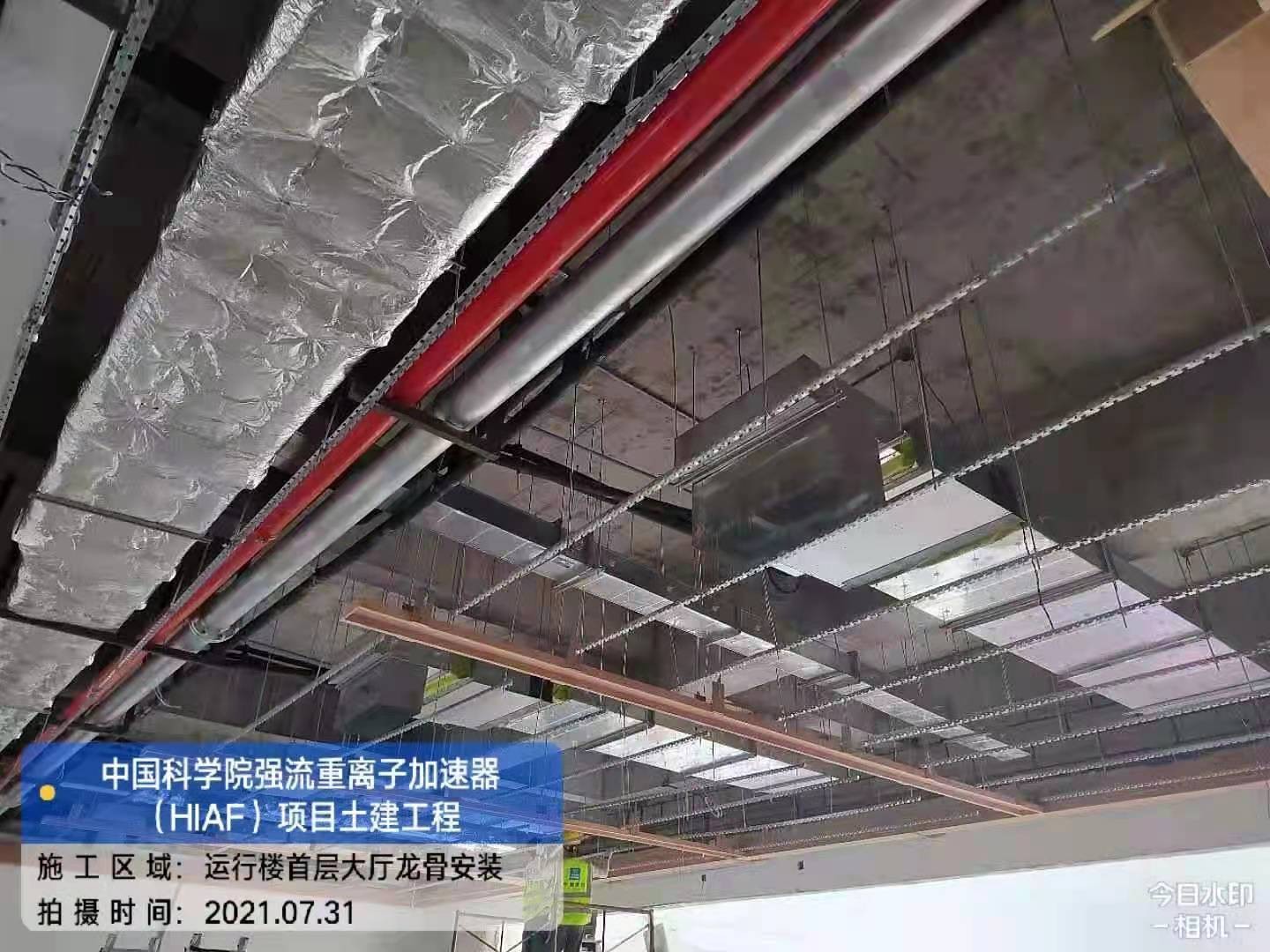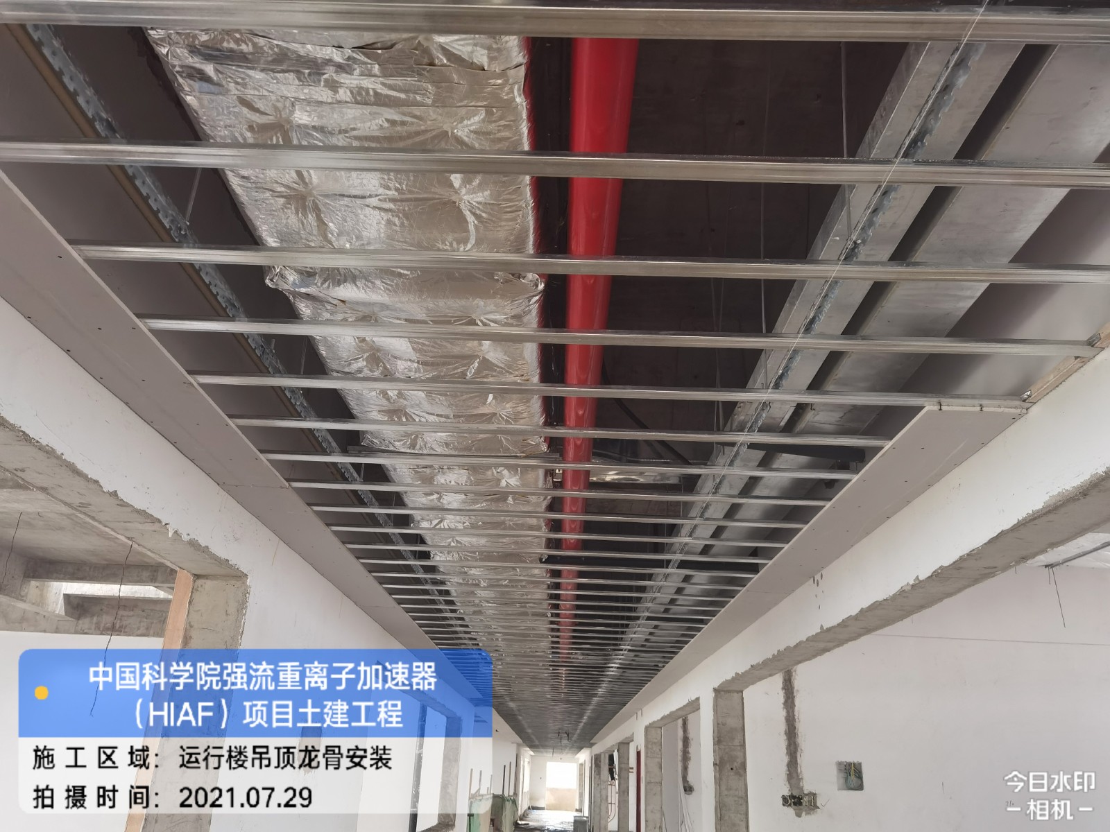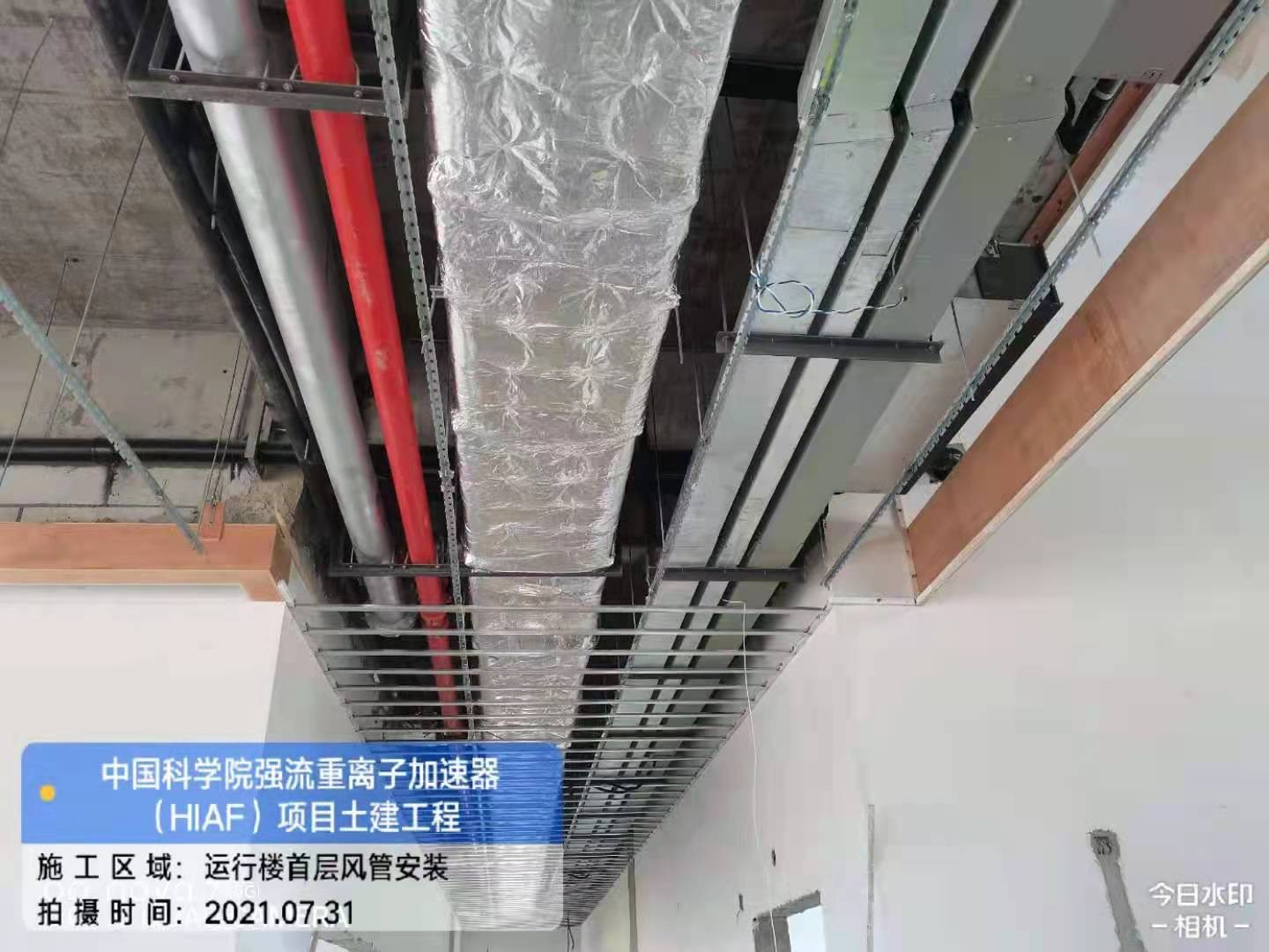 截至2021年8月1日,运行楼1-2层照明及插座线路敷设完成,2层风管安装完成约90%,1层消防电线敷设完成约50%,1层风管安装完成约90%,给水机房墙体砌筑完成约50%。