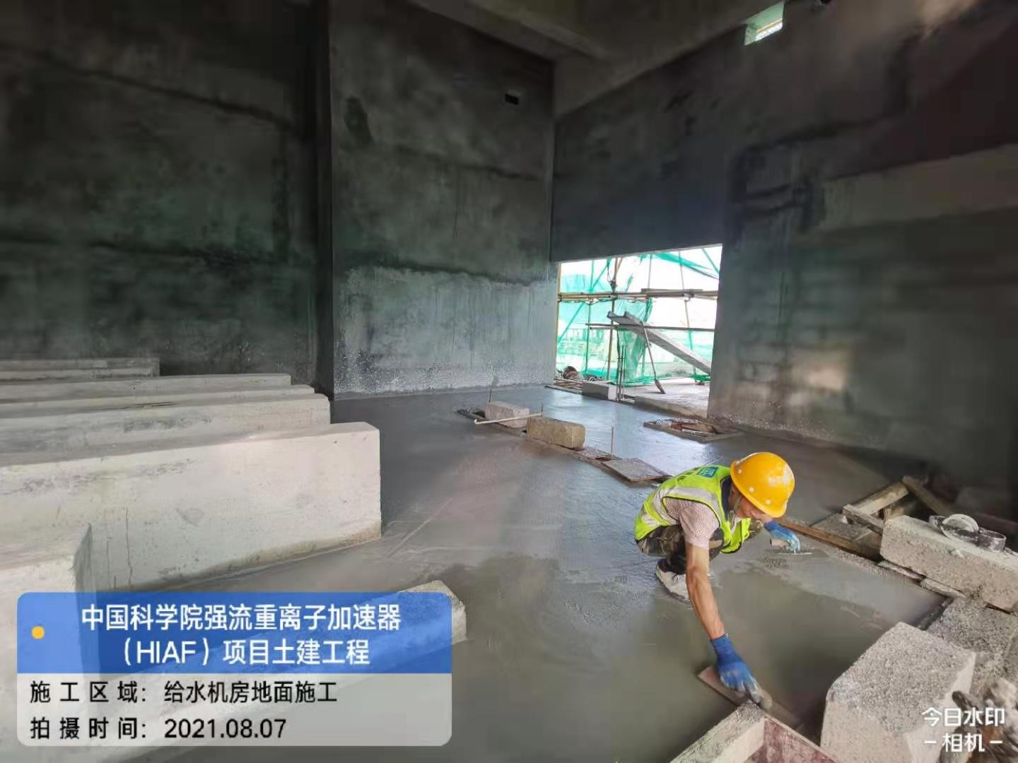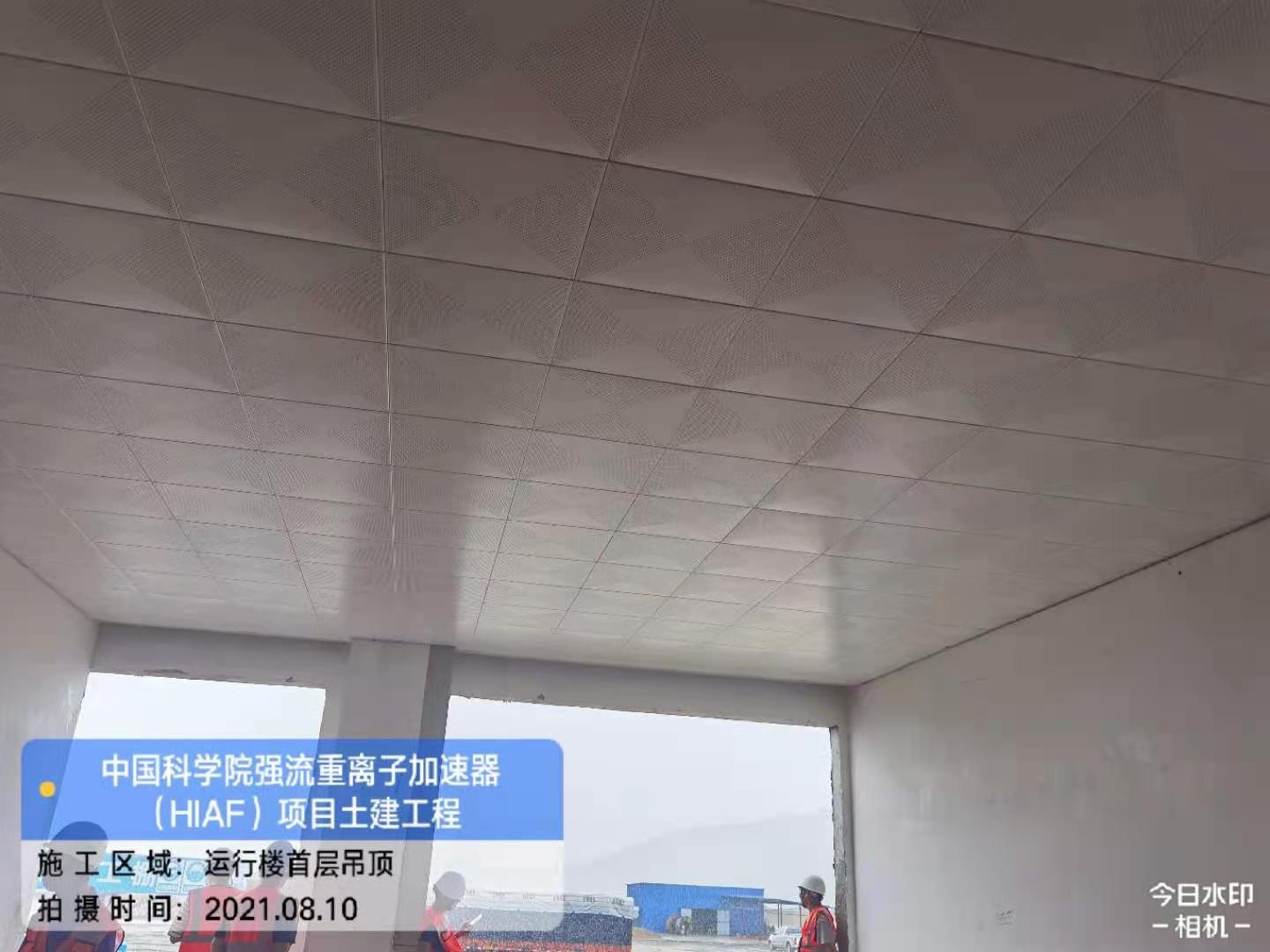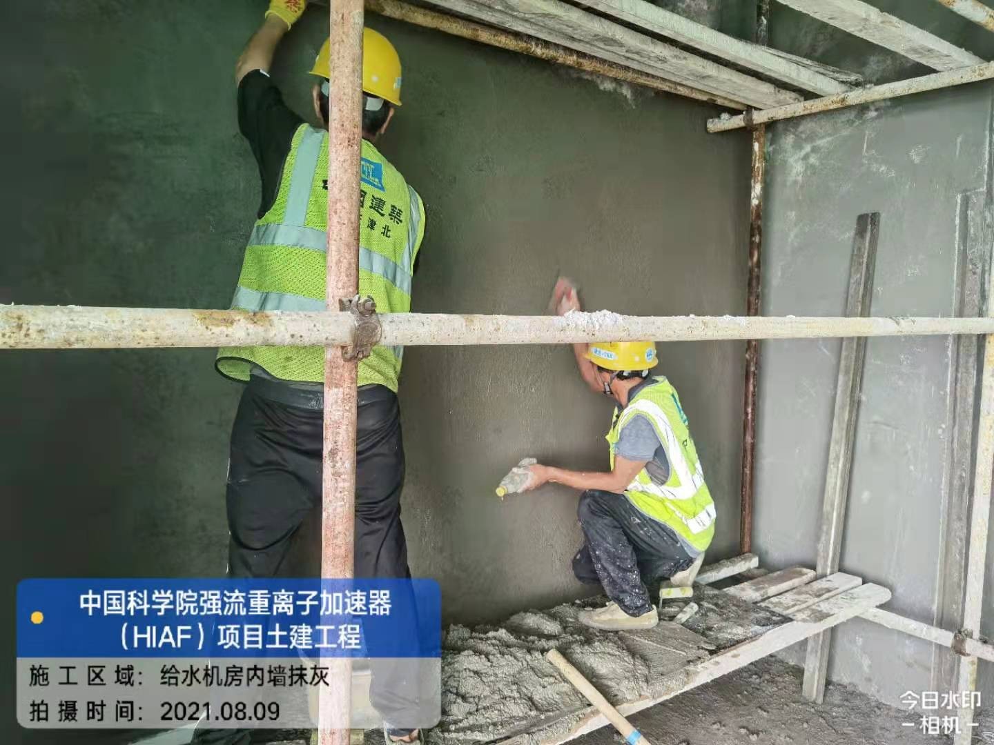 截至2021年8月8日,运行楼外墙腻子第二遍完成50%,二层吊顶完成约50%,2层风管保温完成80%;1层风管保温完成80%;给水压力试验;消防电缆敷设完成90%;给水机房墙体砌筑完成约75%,抹灰完成约40%,地面完成约50%。