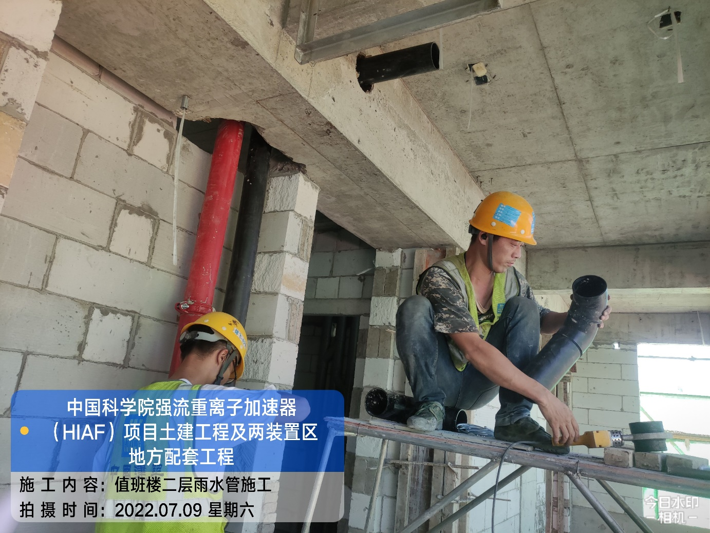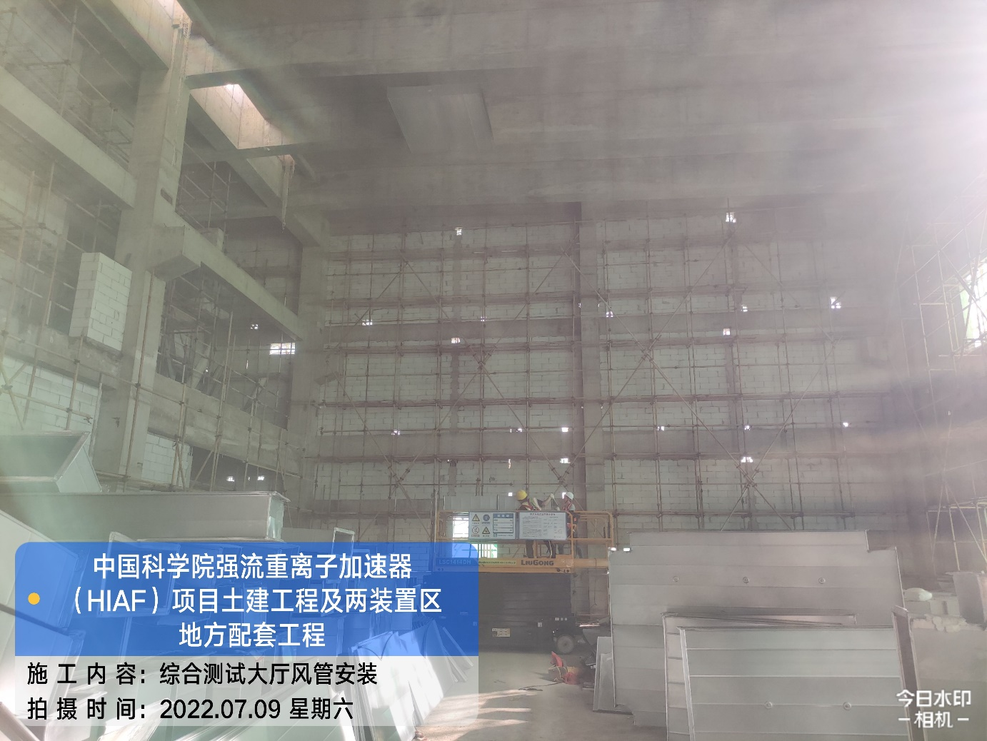 二、HIAF区其它单体:综合测试大厅屋面砌筑完成。三号综合站房外架拆除完成;内架拆除完成50%。室外综合管廊无。