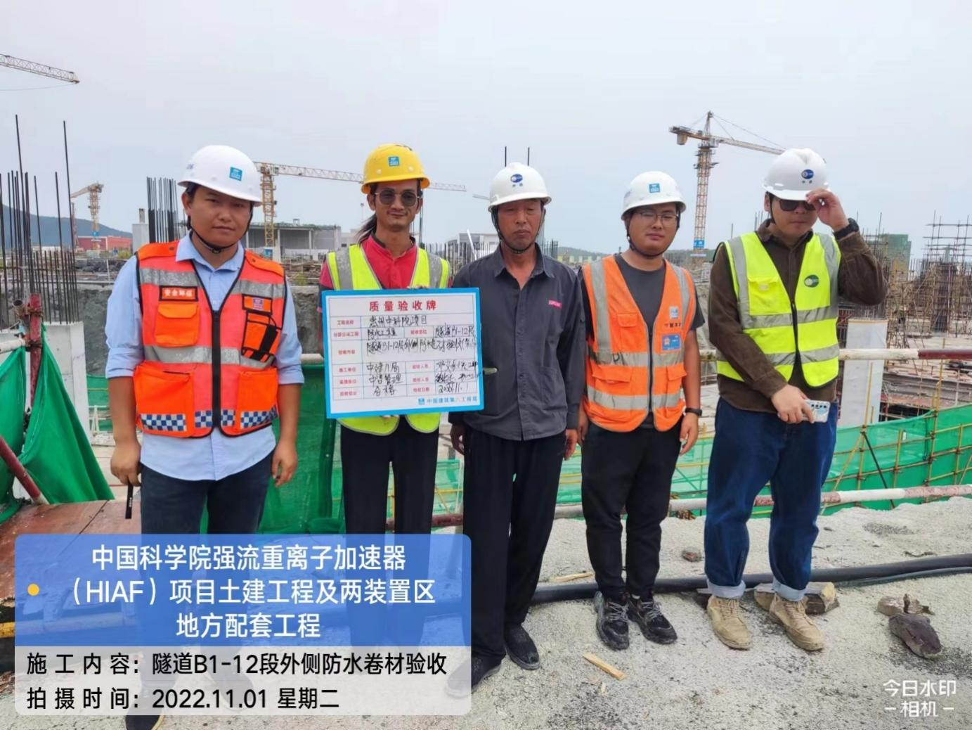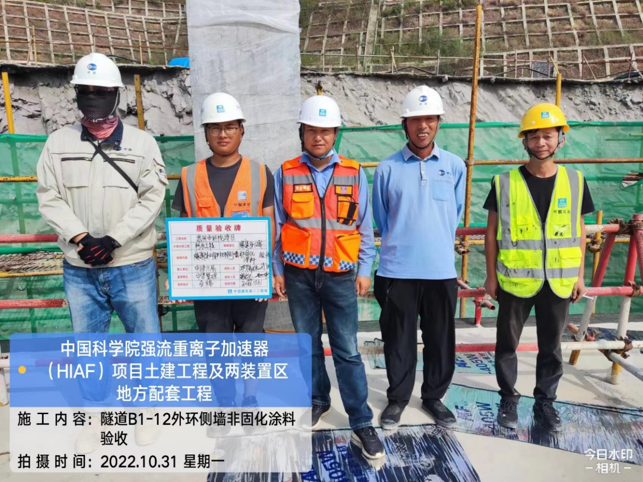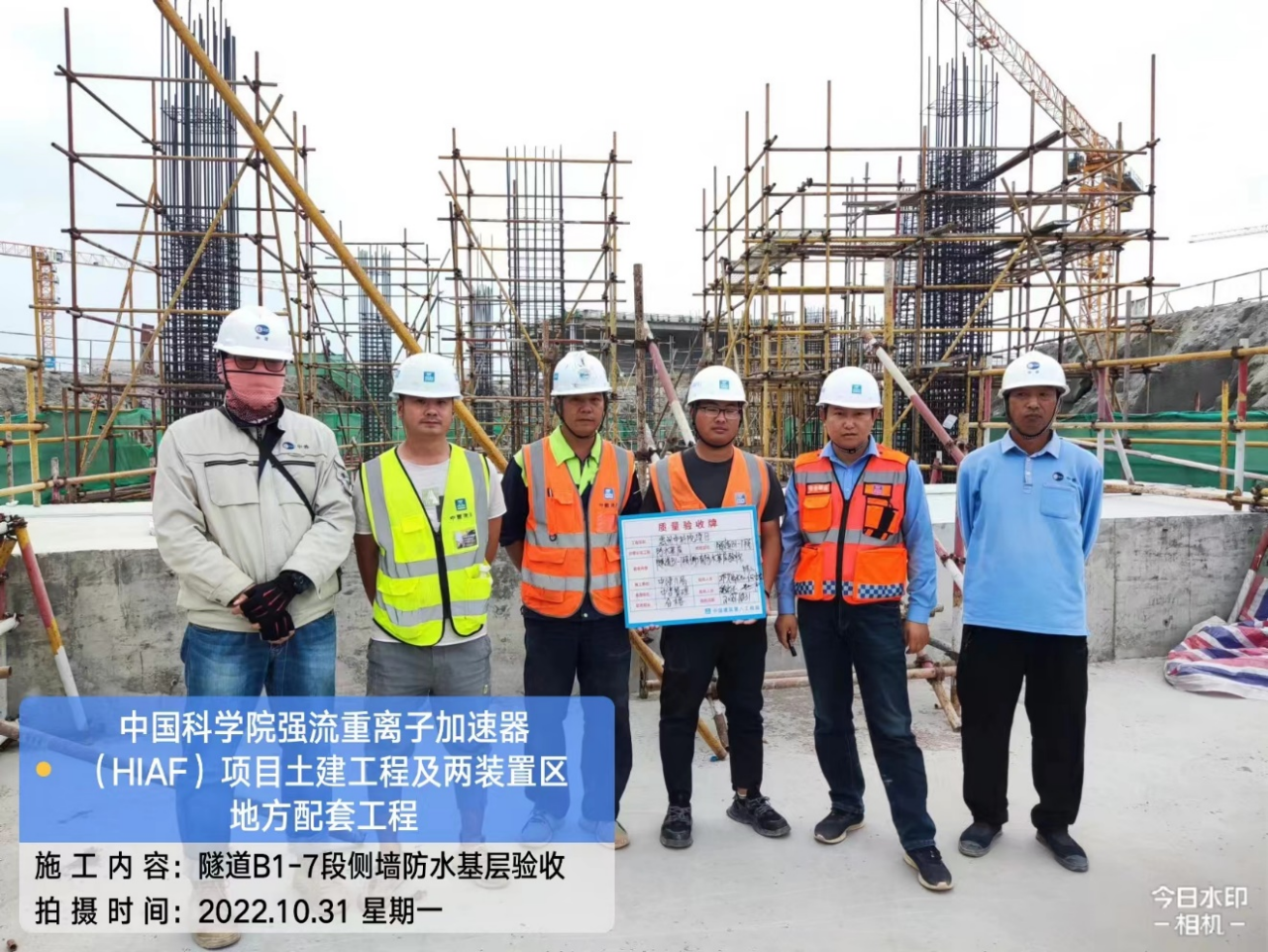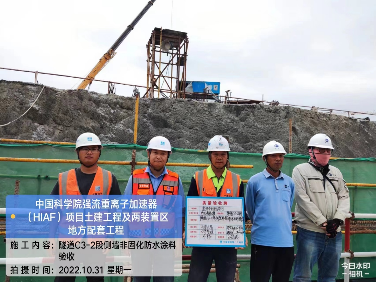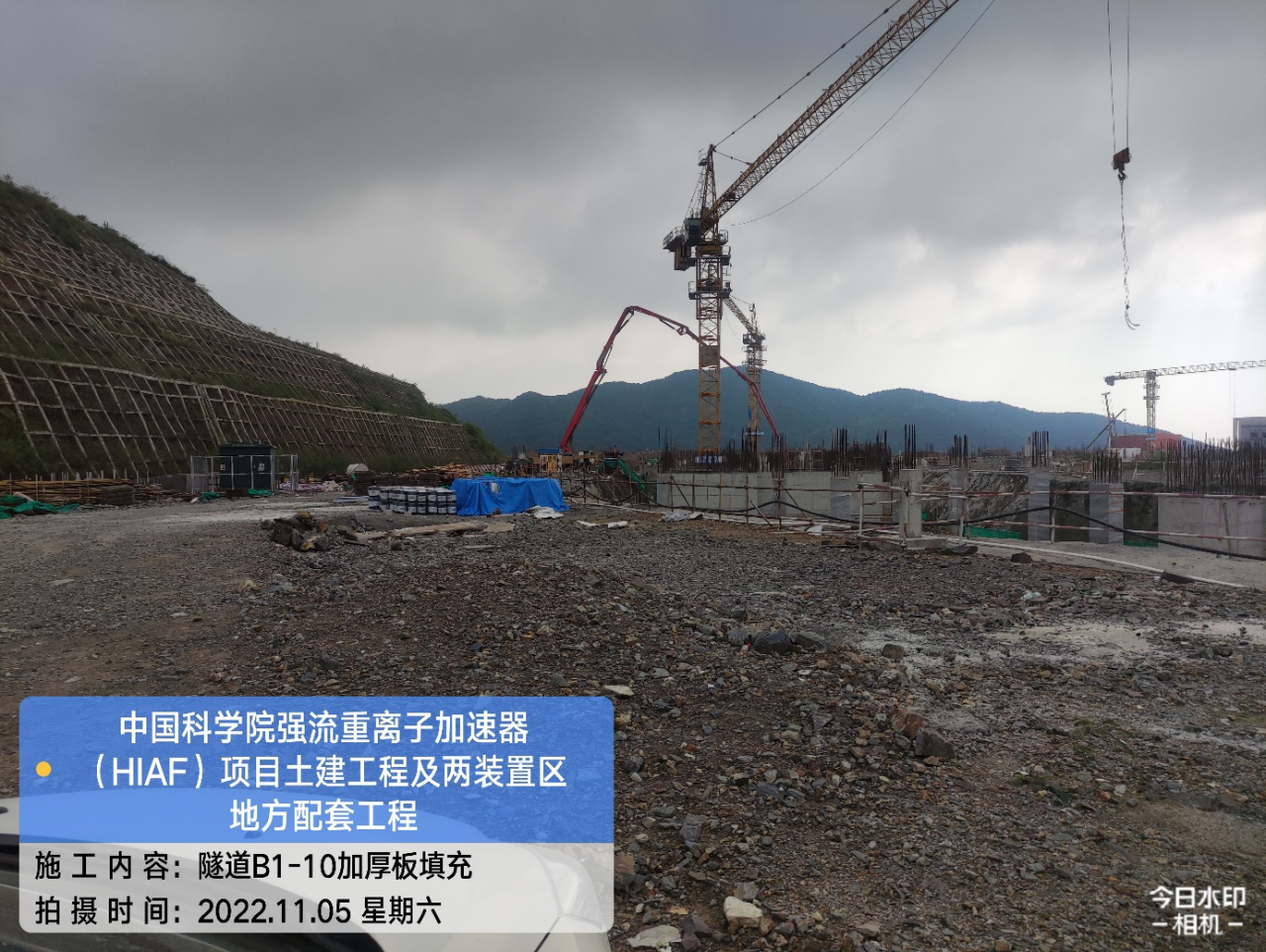 一、加速器隧道:B环B1-14顶板上电井、框架柱混凝土浇筑完成;B1-11外墙防水基层验收移交完成。S环C3-5牛脚基层清理完成;C3-6侧墙防水卷材完成;随机冷却副隧道基层验收移交完成;C3-6顶板以上结构模板安装完成;C3-4防水保护层砌筑完成10%。H隧道C2-7牛脚防水卷材完成;C2-6侧墙防水基层清理完成。直线隧道A1-9墙柱钢筋绑扎完成10%;A1-5墙柱模板完成;A1-6墙柱混凝土浇筑完成; A1-3/4底板防水完成;A1-2墙柱模板安装完成80%。