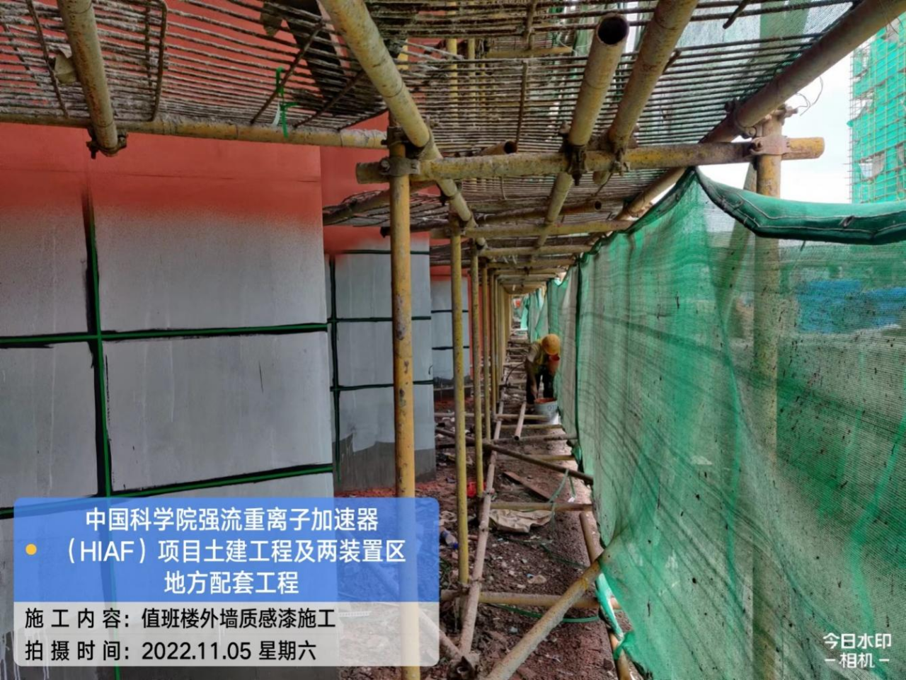 二、HIAF区其它单体:综合测试大厅首层内墙饰面完成90%;TH-2至TH-3轴首层地坪浇筑完成80%;窗框安装完成80%;收口完成50%。室外综合管廊L1-1/2土方回填完成90%。三号综合站房窗框安装完成;内墙刮白完成;喷漆未开始。