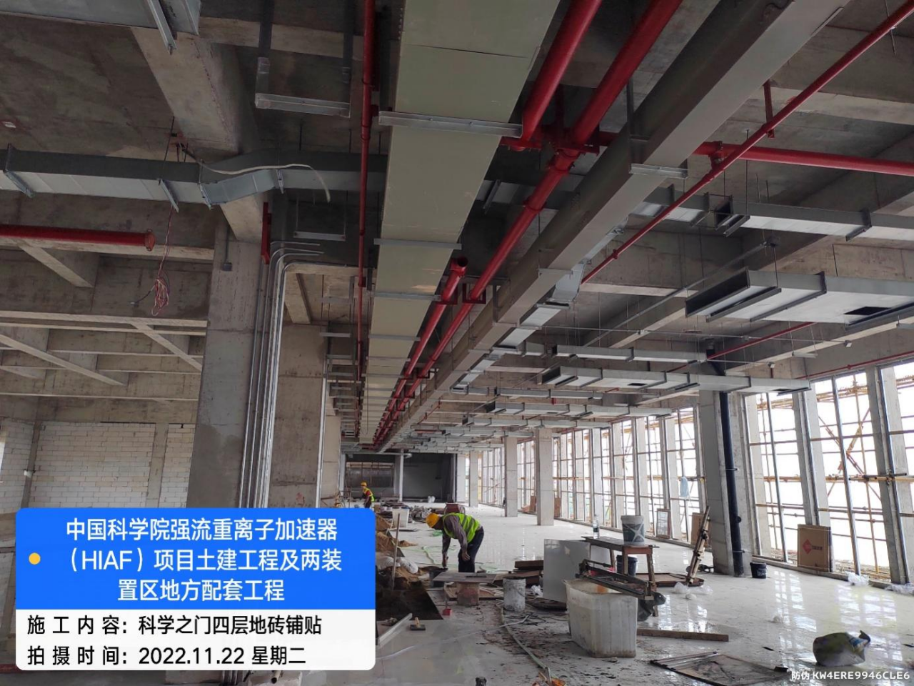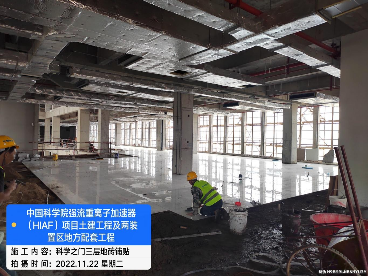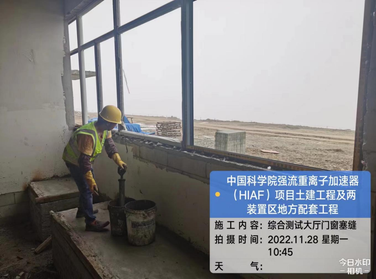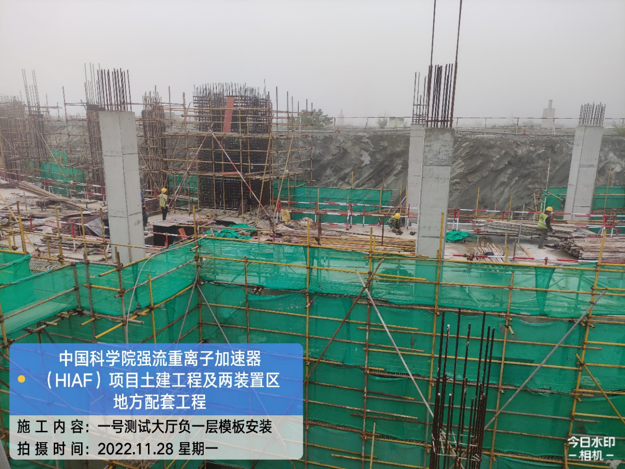 二、HIAF区其它单体:综合测试大厅屋面防水保护层完成20%;卫生间防水及找坡层完成;窗框安装完成60%。室外综合管廊L3-L5垫层浇筑完成。三号综合站房内墙无机涂料完成。一号制冷中心地梁施工准备工作完成。