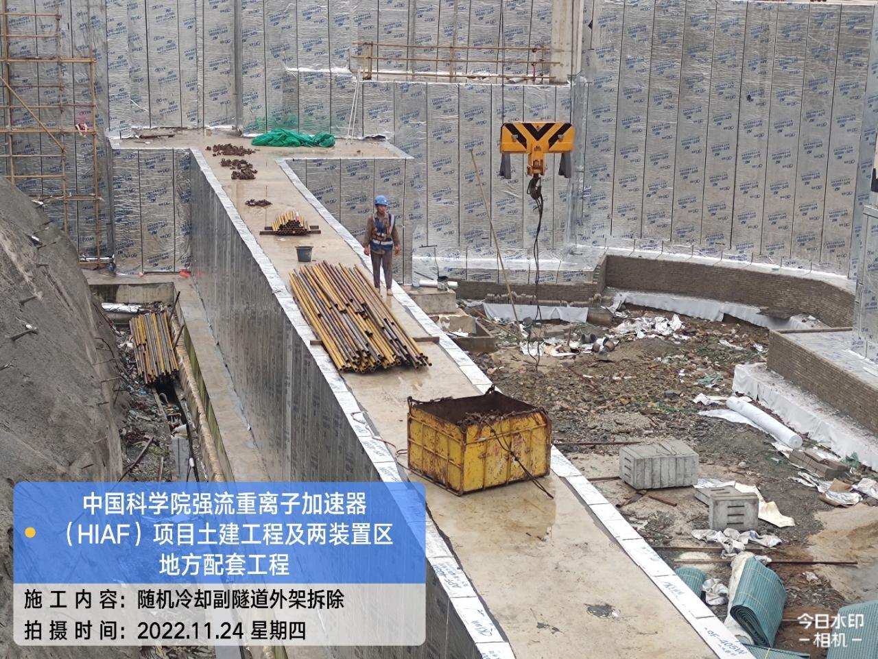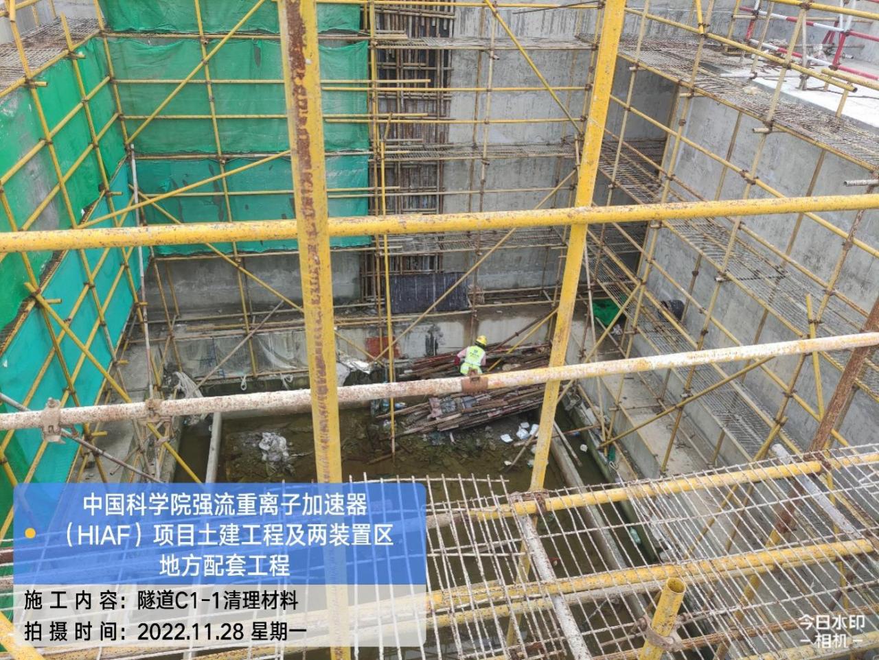 一、加速器隧道:B环B1-10基层修补完成;B1-14/15顶板上电井、独立柱混凝土浇筑完成;B1-8/9/11/12侧墙防水卷材完成;B1-12/13外环牛腿防水卷材完成。S环C3-4外环防水保护层完成20%;C3-1牛腿防水完成;C3-3与随机冷却副隧道牛腿基层清理完成60%。H隧道C2-7防水保护层砌筑完成20%。直线隧道A1-3/9墙柱钢筋绑扎完成;A1-6顶板钢筋绑扎完成60%;A1-4底板混凝土浇筑完成;A1-2顶板混凝土浇筑完成。