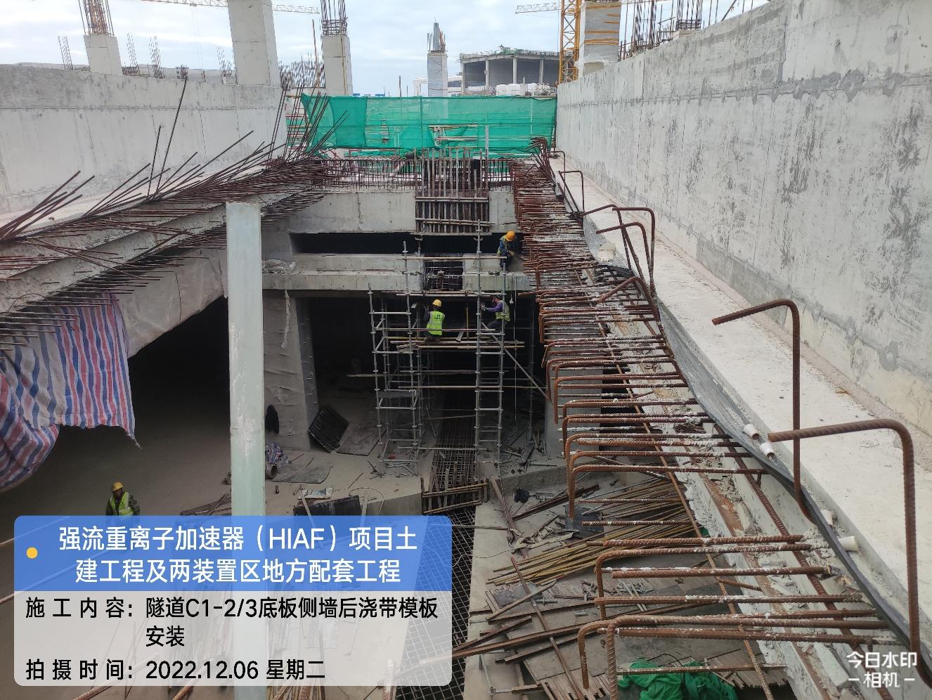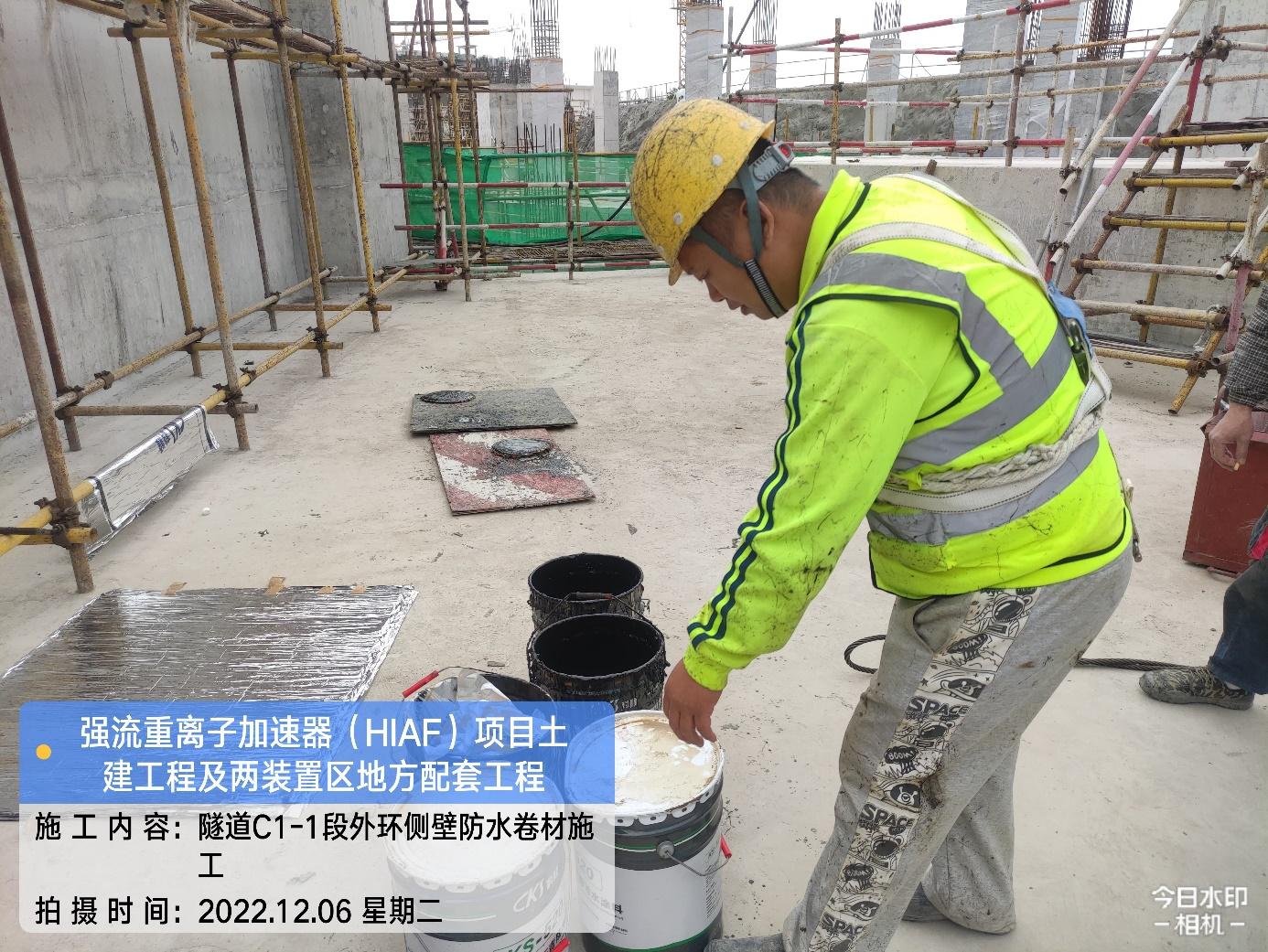 一、加速器隧道:B环B1-10侧墙卷材完成80%;B1-12/13外环牛腿防水卷材完成;B1-5/6侧墙防水卷材完成;B1-4非固化涂料完成;B1-1/2/3侧墙防水基层完成。S环C3-4内环防水保护层完成20%;C3-3/4/5/6底板牛腿防水完成;C3-4内墙抹灰完成60%。H隧道C2-1防水基层完成;C2-3/4/5底板牛腿防水完成。直线隧道A1-4侧墙牛腿模板完成;A1-9侧墙混凝土浇筑完成;A1-5/6顶板混凝土浇筑完成;A1-1底板钢筋绑扎完成。高能综合终端C1-1侧墙防水完成。