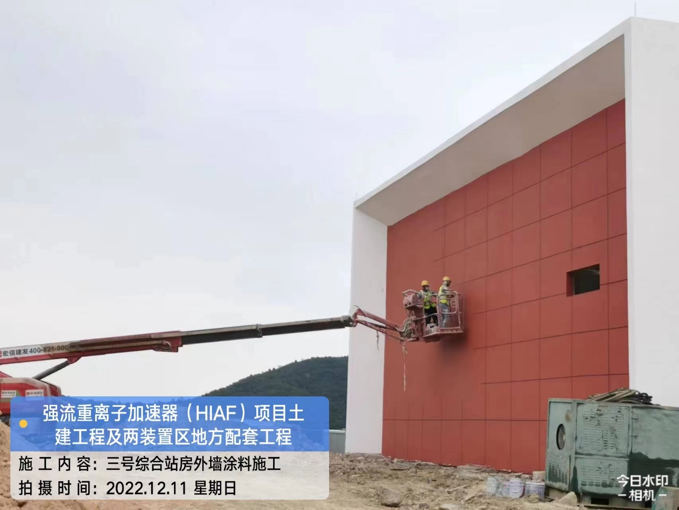 二、HIAF区其它单体:综合测试大厅大厅顶棚无机涂料完成80%;卫生间防水及找坡层完成;门窗收口完成80%;走廊消防栓砌筑完成50%。室外综合管廊L1-3底板浇筑完成。三号综合站房百叶安装完成。一号制冷中心RC-A至RC-E地梁施工完成60%。