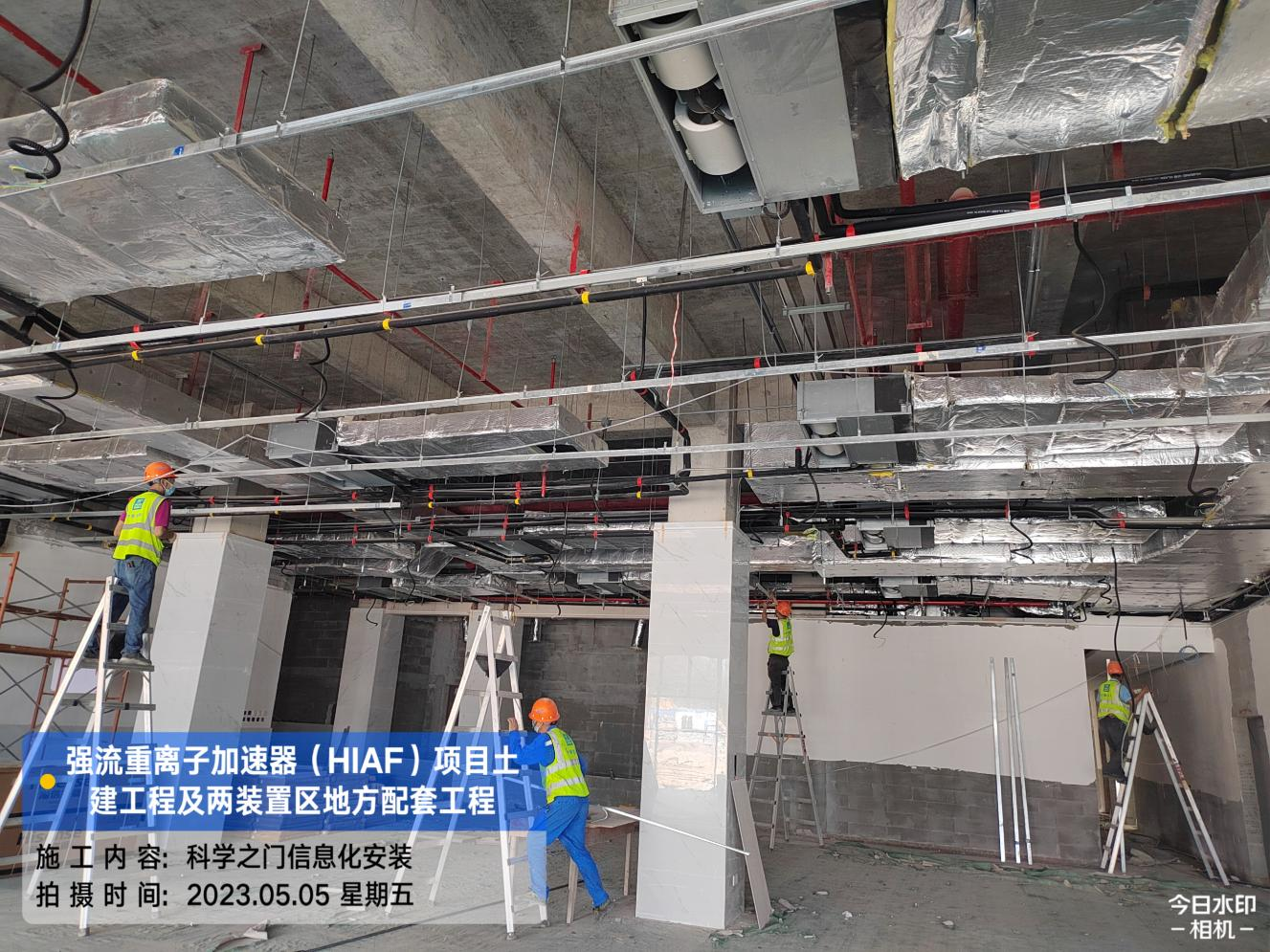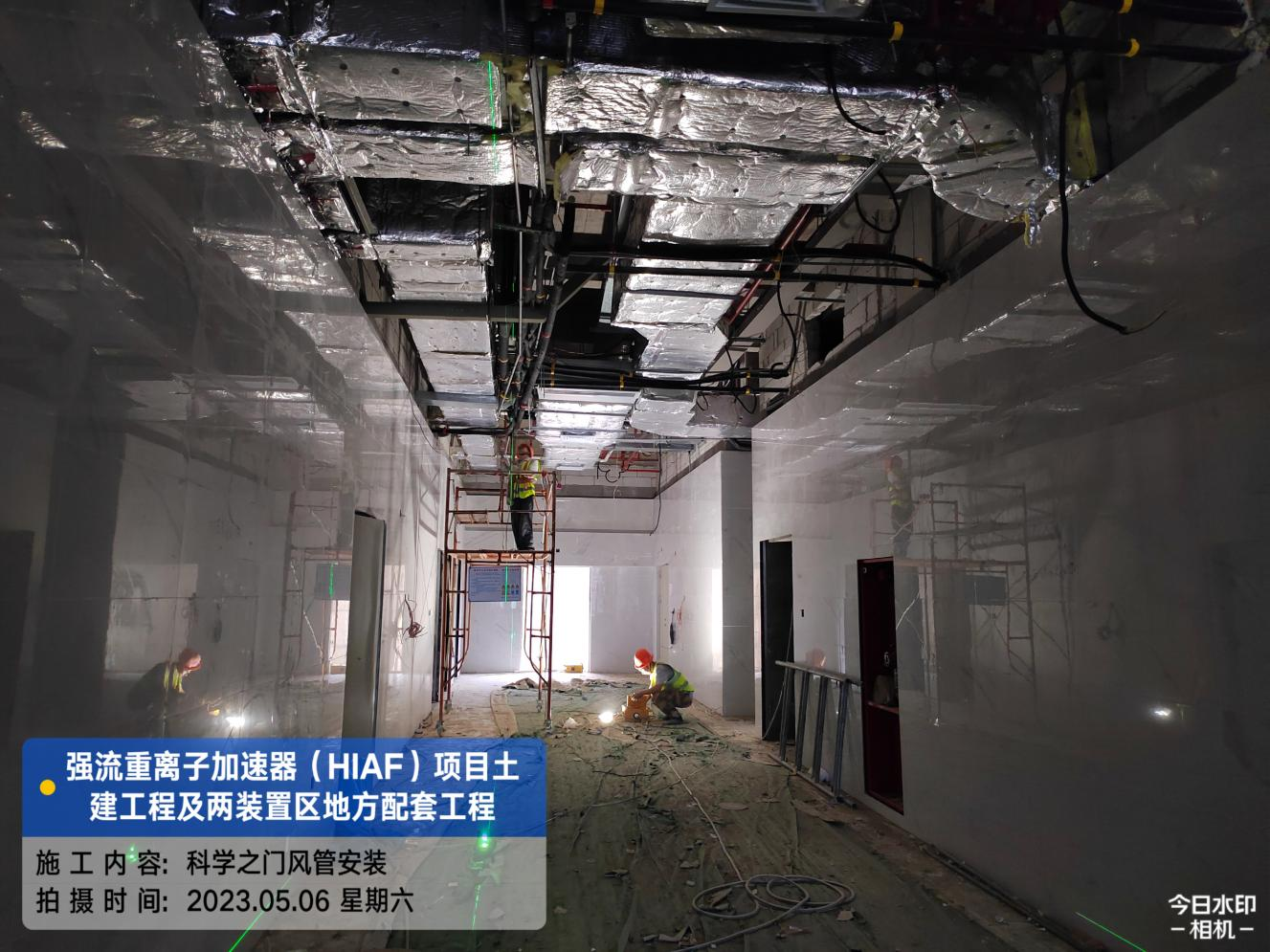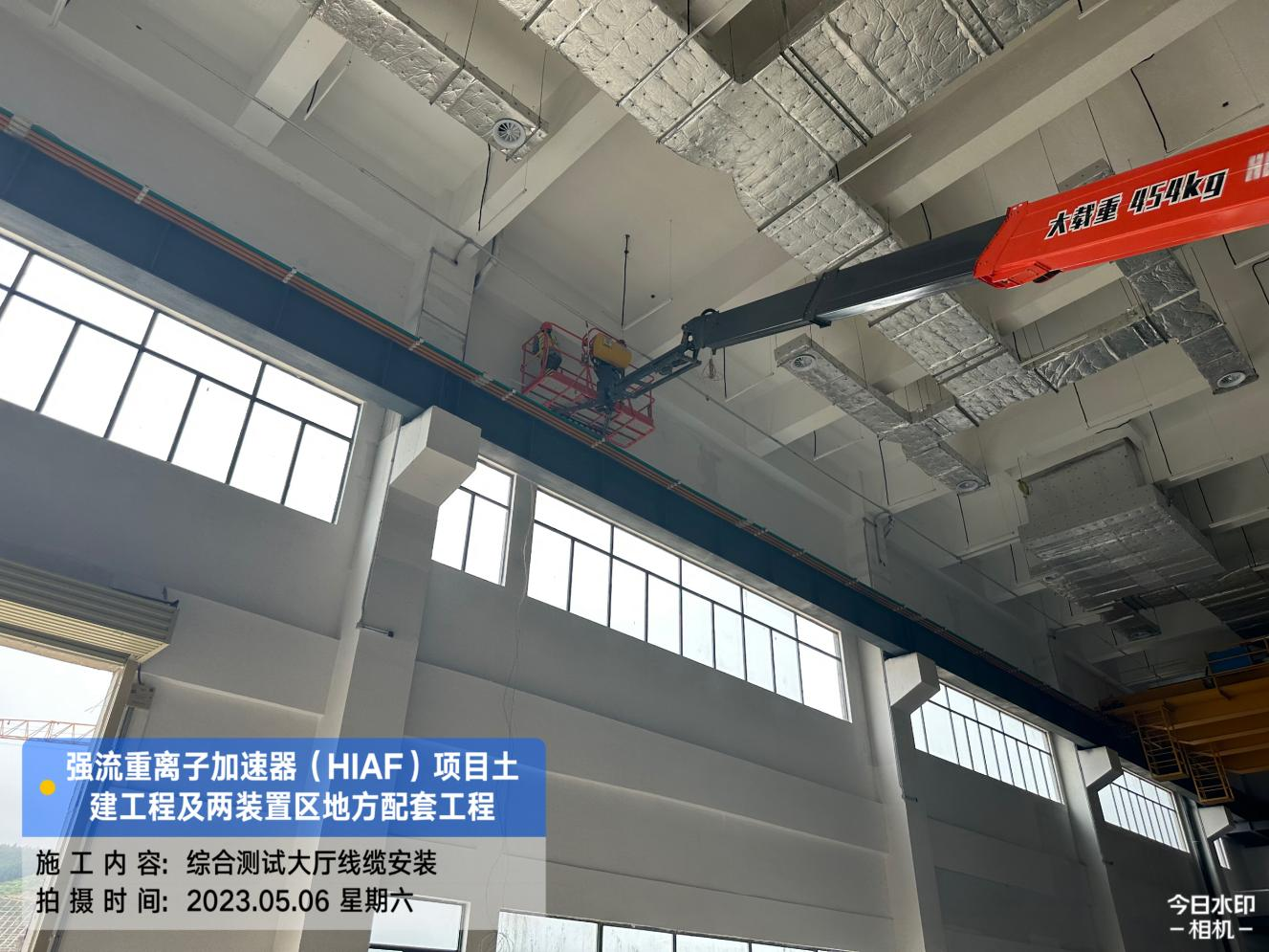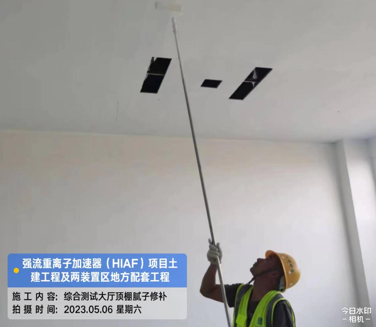 二、HIAF区其它单体:室外综合管廊GL-AD至GL-Y底板钢筋完成。一号制冷中心RC-1/3轴首层砌体完成70%,内墙粗骨料完成30%,屋面防水基层处理完成,剩余屋面女儿墙浇筑完成。综合测试大厅二层天花腻子完成。直线设备楼2#楼设备夹层墙(A1-2段)混凝土浇筑完成。