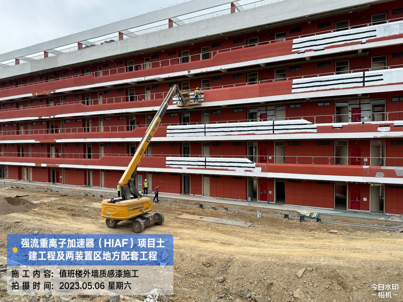 三、后勤区:科学之门餐厅吊顶龙骨完成80%。值班楼走廊女儿墙外墙涂料完成30%。