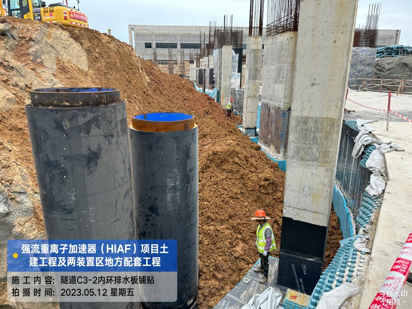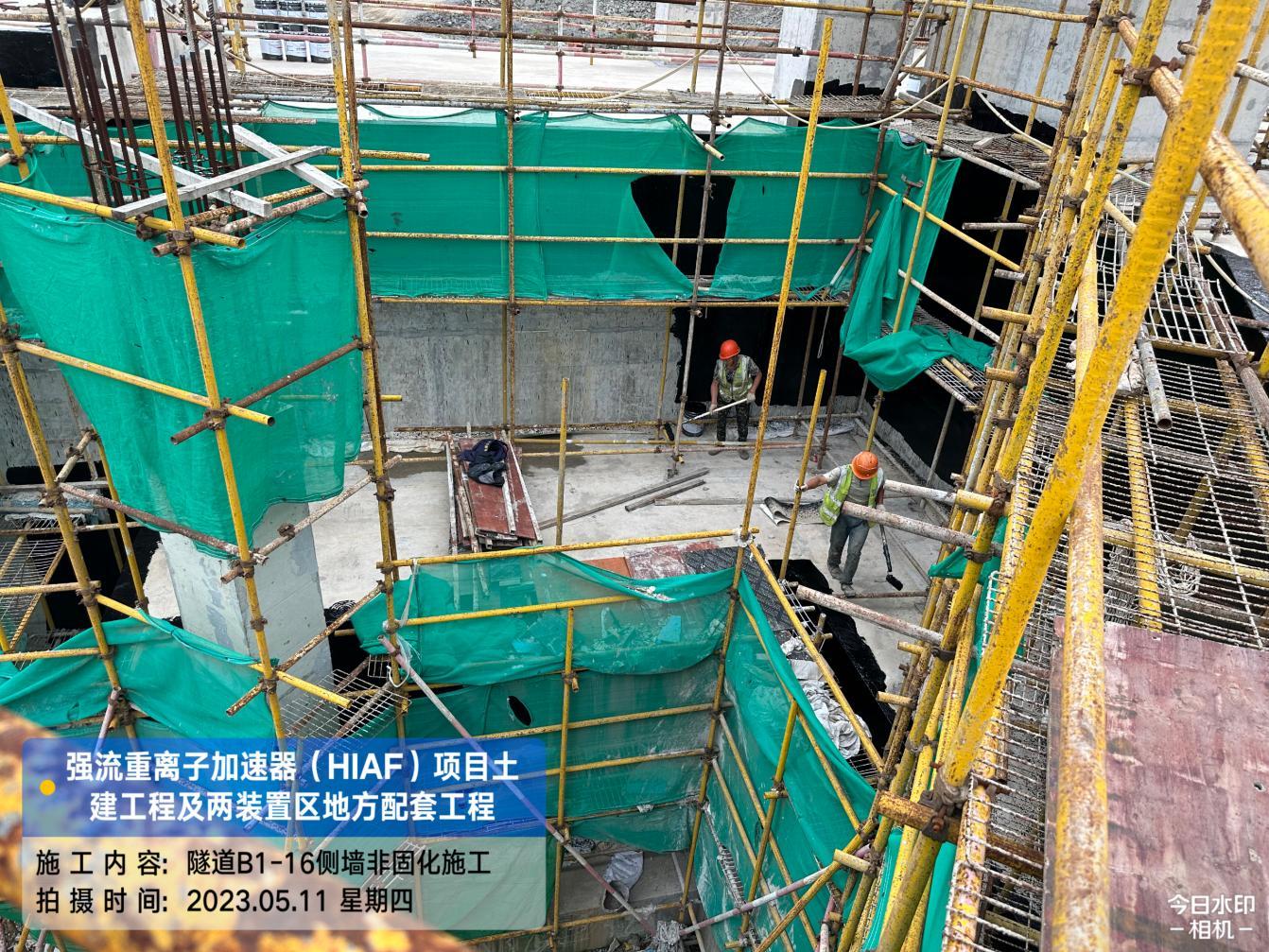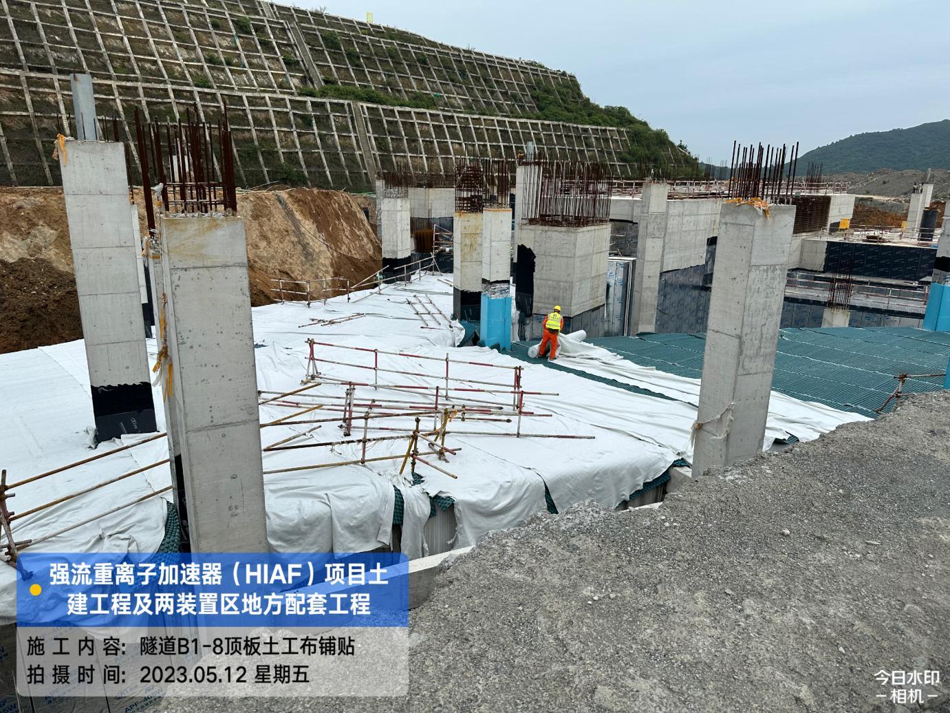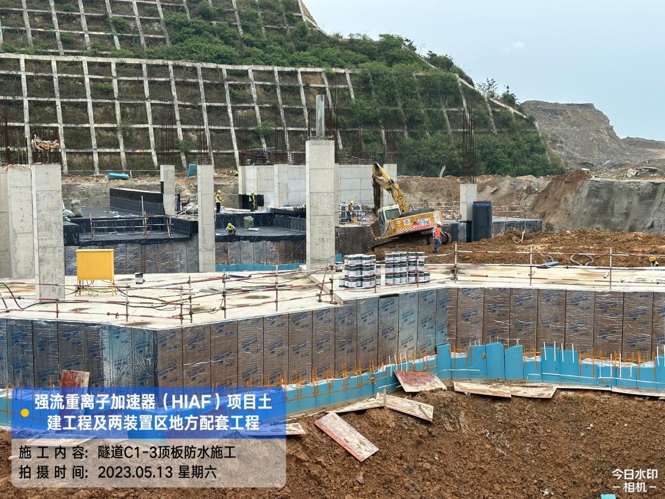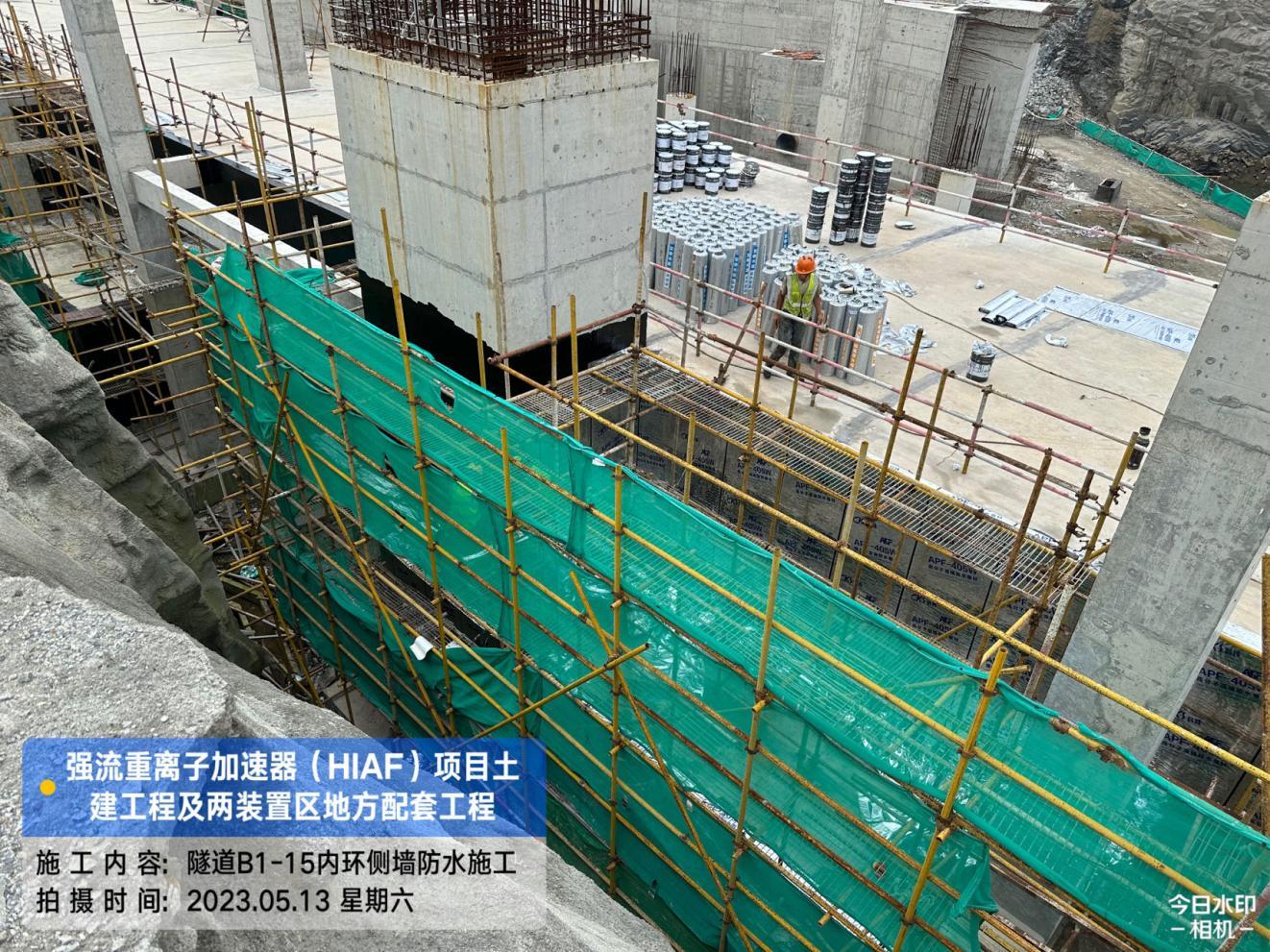 一、加速器隧道:B环B1-14/15内环侧墙防水完成;B1-11/12外环侧墙排水板铺贴完成90%,土方回填完成90%;B1-10/11顶板第二道排水板、土工布完成。S环C3-2外环排水沟砂石层铺设完成;C3-2/6/5内环侧墙排水板铺贴完成60%,回填完成60%;C3-4内环回填完成70%。H隧道C2-1内环侧墙排水板完成35%,土方回填完成35%。直线隧道A1-4/5底板后浇带混凝土浇筑完成。高能综合终端C1-1/2/3侧墙排水板、土工布铺贴完成30%,回填完成30%;C1-3顶板防水完成80%。