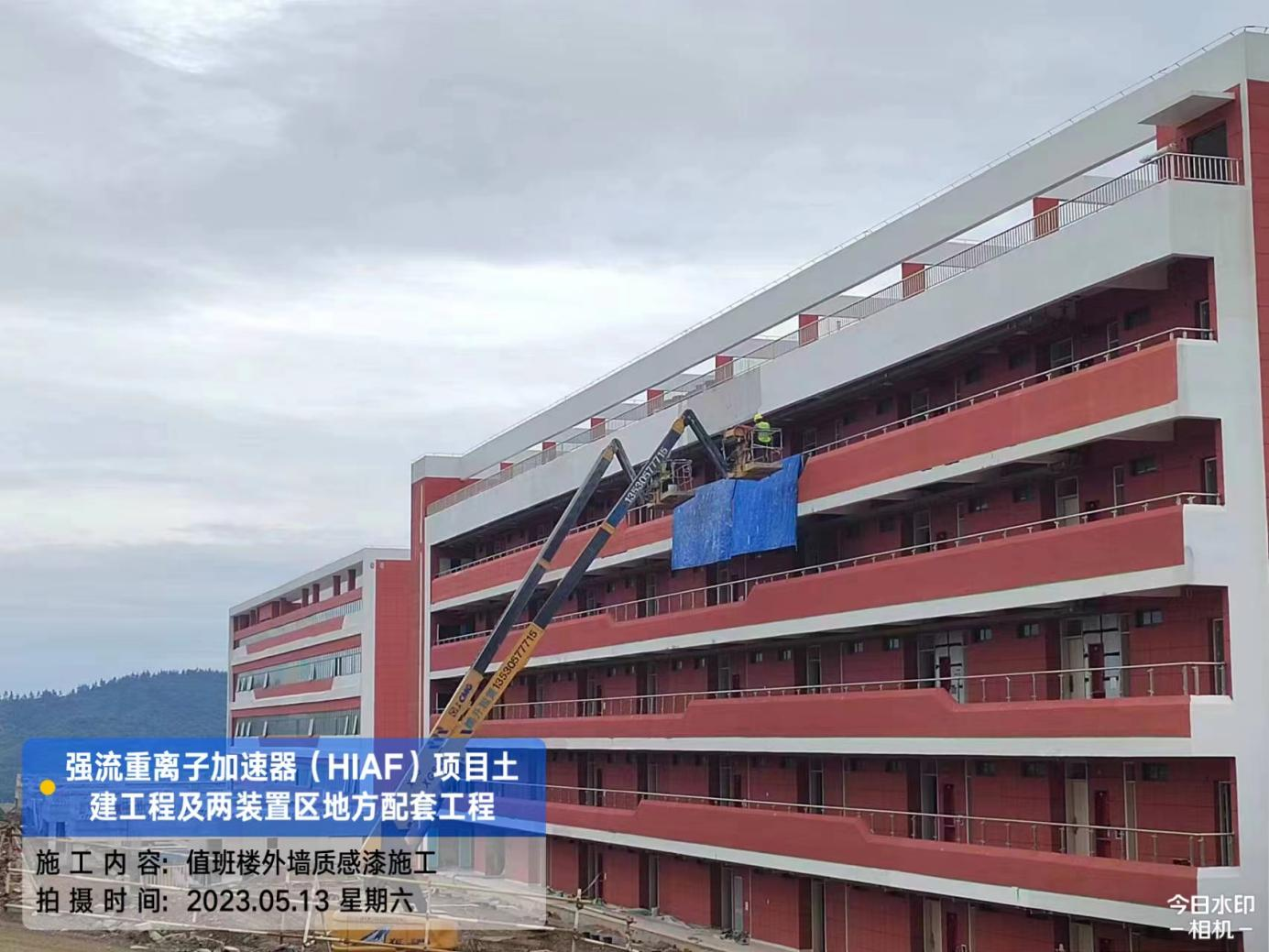三、后勤区:科学之门餐厅吊顶完成30%。值班楼走廊女儿墙外墙涂料完成40%。
