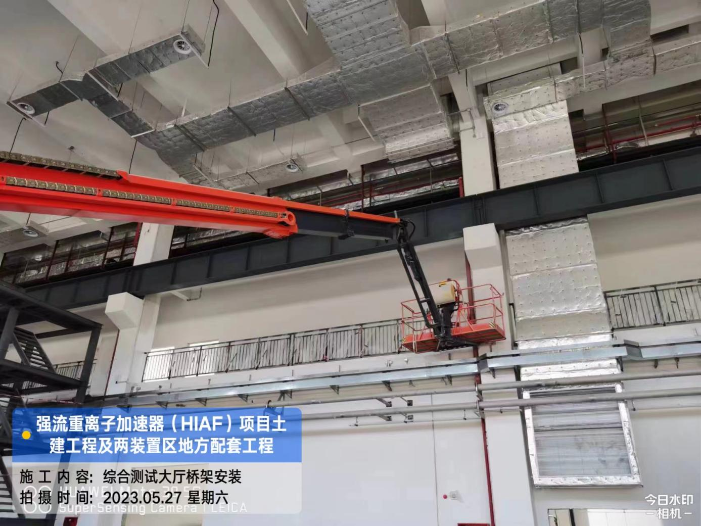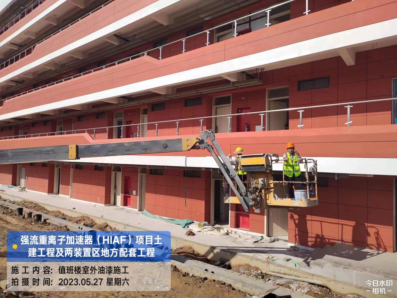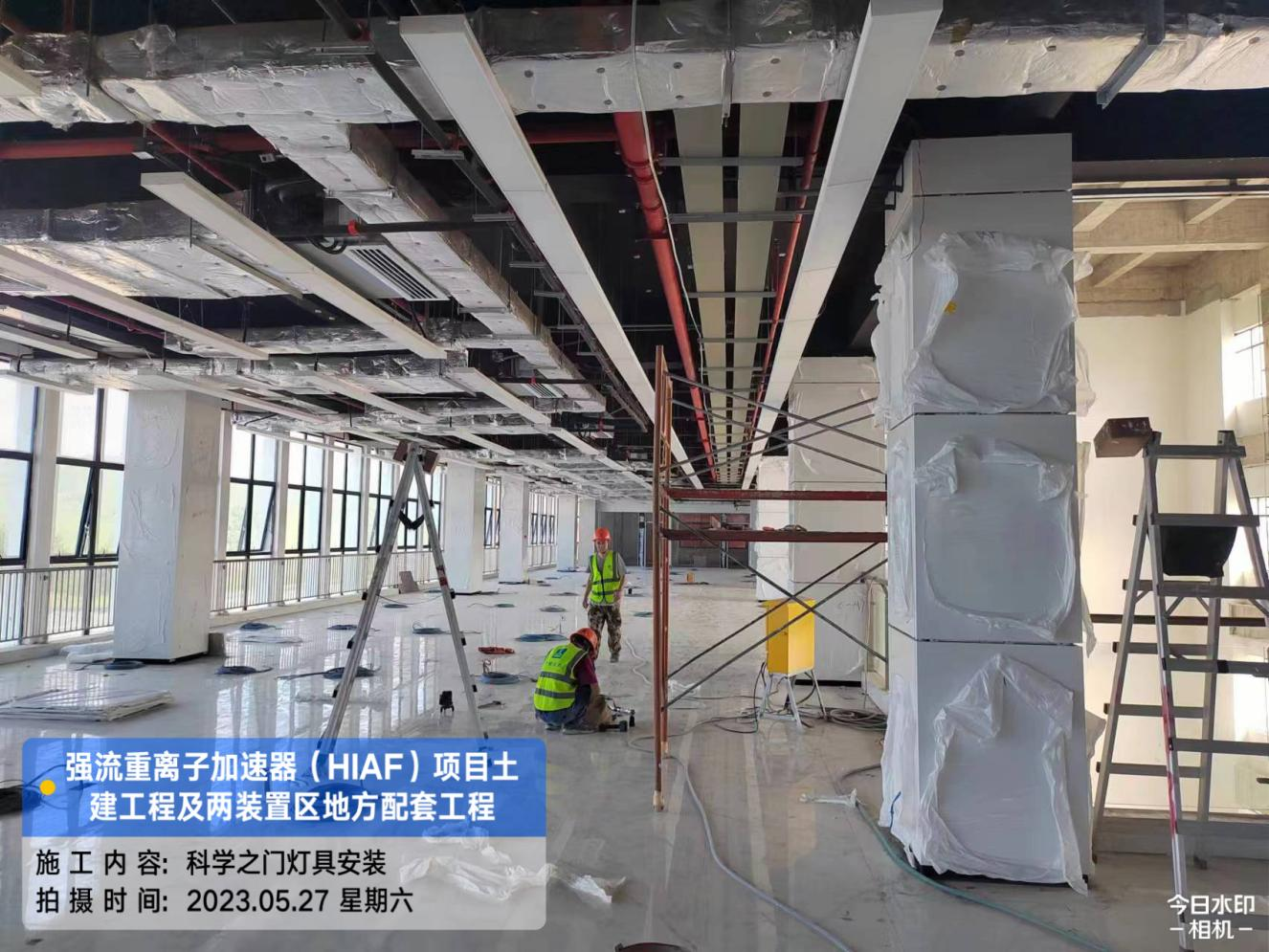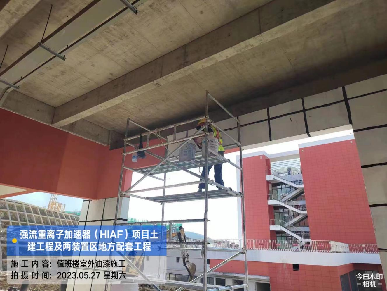 二、HIAF区其它单体:室外综合管廊GL-AD至GL-Y侧墙顶板钢筋模板完成;GLW至GLV交GL8至GL15底板钢筋绑扎完成60%。一号制冷中心RC-F/H轴首层内架拆除清理完成;RC-1/3轴外墙抹灰完成80%,屋面防水完成20%;RC-A/F轴窗框安装完成。综合测试大厅常温测磁间钢骨架安装完成。直线设备楼2#楼设备夹层墙(A1-4段)混凝土浇筑完成。二号测试大厅CB1-1段地梁钢筋绑扎完成,模板完成60%。