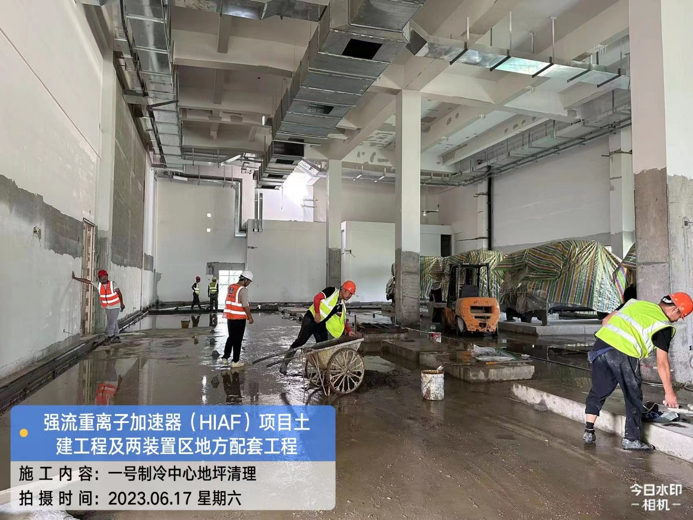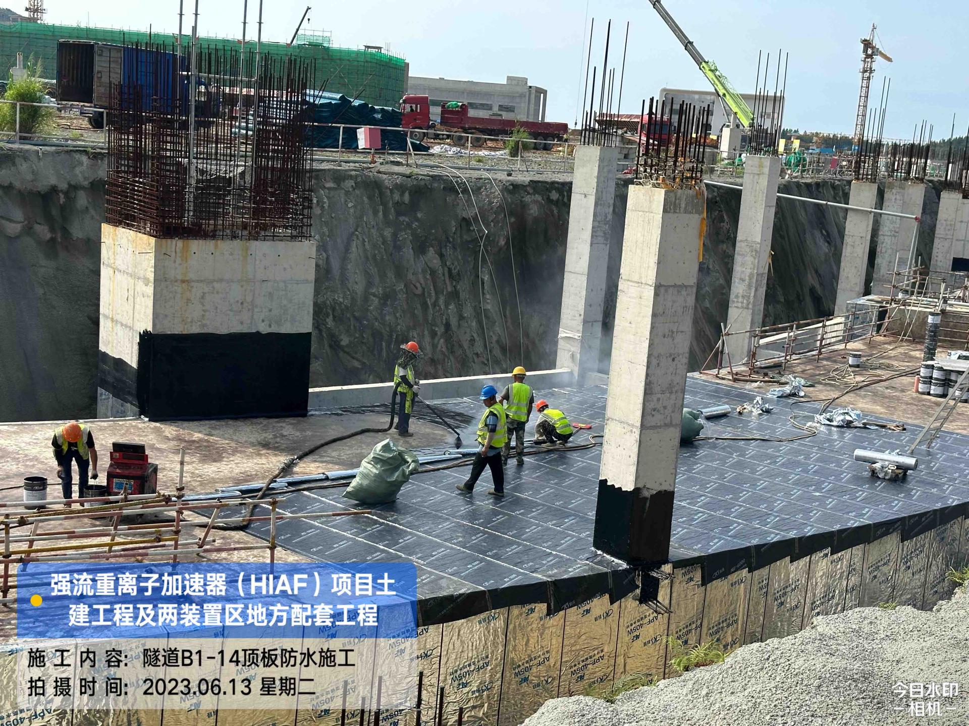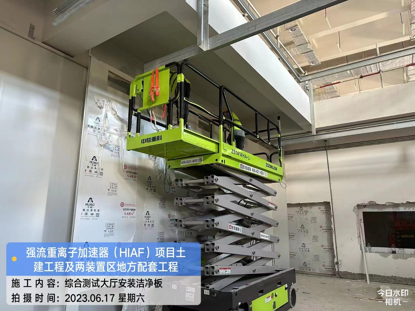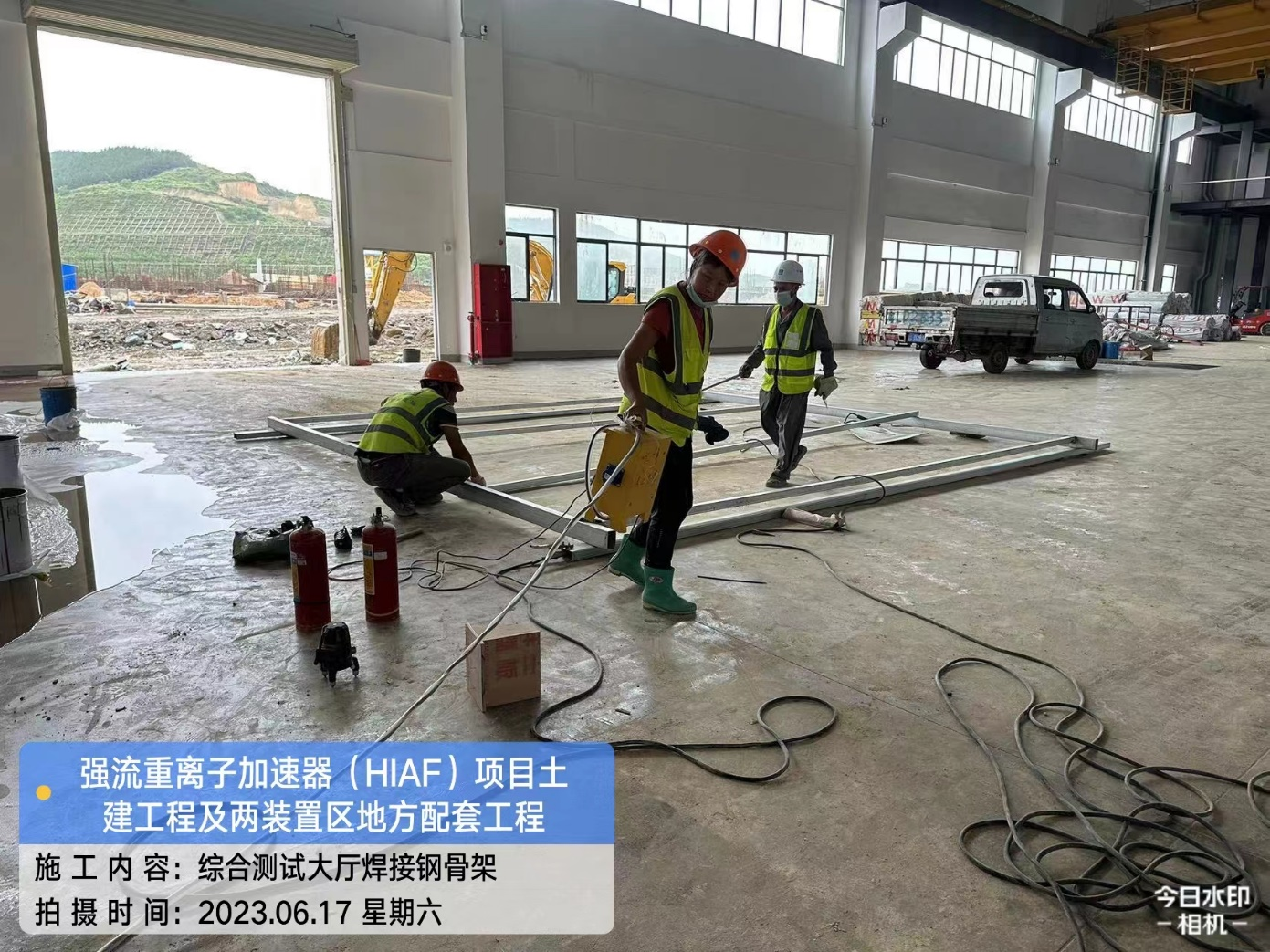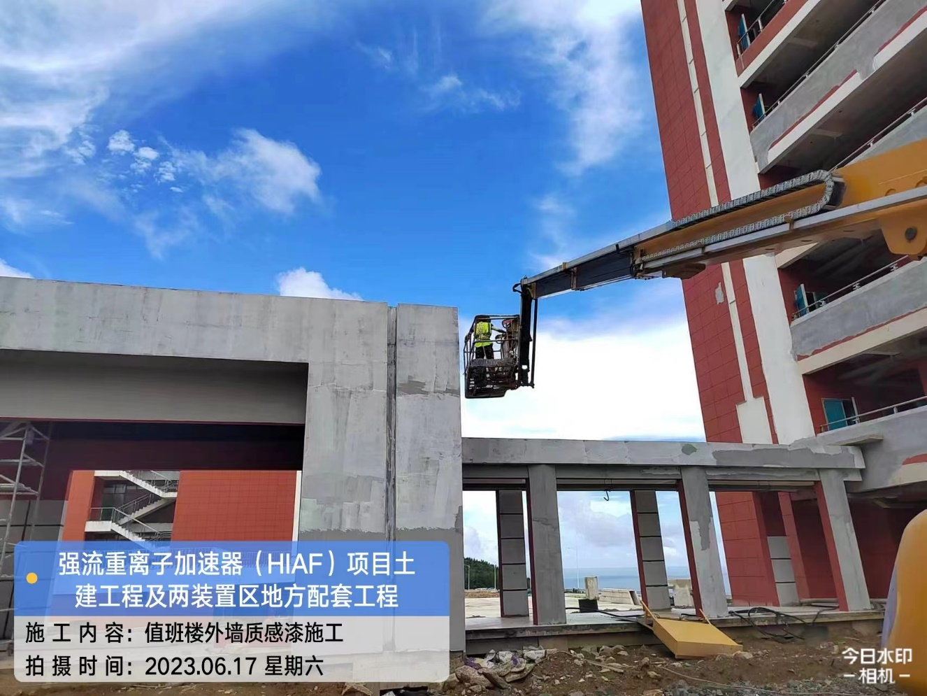 二、HIAF区其它单体:室外综合管廊L2-2段侧墙模板安装完成65%;L2-1段侧墙防水完成。一号制冷中心RC-F/H砌体及圈梁构造柱完成80%,顶棚腻子中涂完成70%;RC-A/D混凝土地面施工完成。综合测试大厅首层大厅环氧中涂完成90%,常温测磁间洁净板安装完成60%,二层房间玻璃窗扇安装完成40%。二号测试大厅CB1-1段首层板浇筑完成;CB1-2段地梁混凝土浇筑完成;CB1-3段地梁钢筋绑扎完成65%。