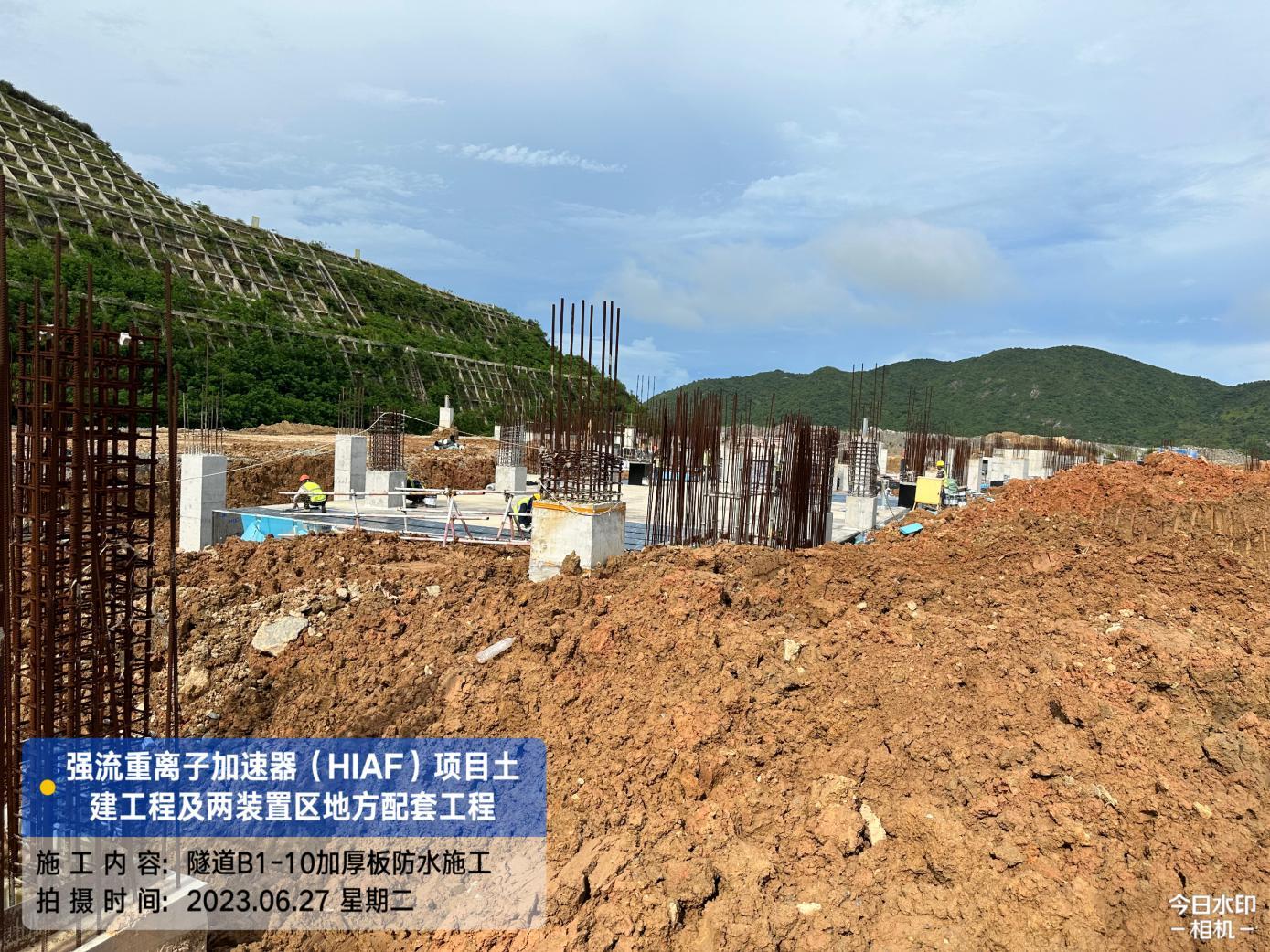 一、加速器隧道:B环B1-3/4顶板防水完成;B1-2顶板防水完成30%;B1-1/2/3内环侧墙排水板、土工布完成10%,回填完成10%。直线隧道A1-2/3内环侧墙排水板、 土工布完成30%,土方回填完成30%;A1-2/3外环侧墙排水板、土工布完成10%,土方回填完成10%;A1-6内环底板牛腿防水完成,内环排水沟清理完成,水沟盖板完成。