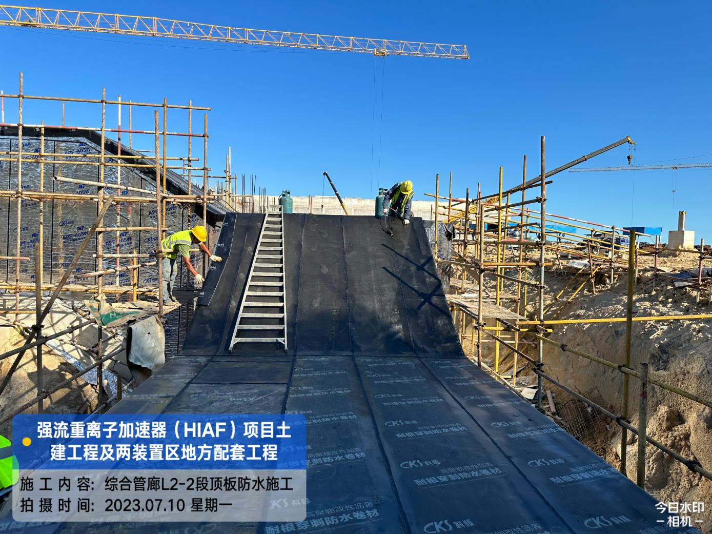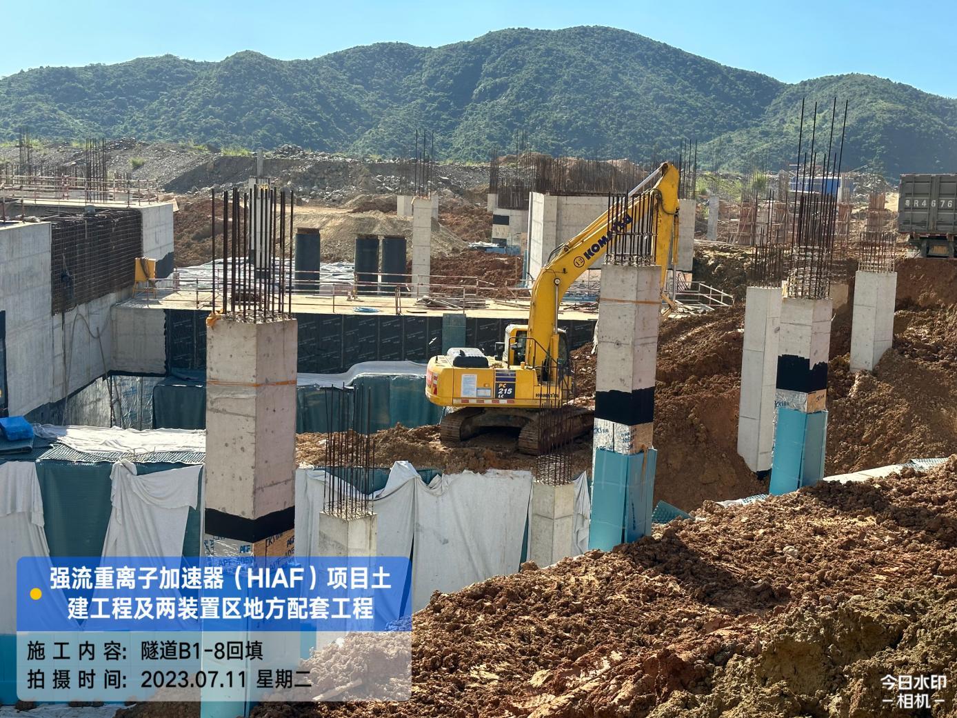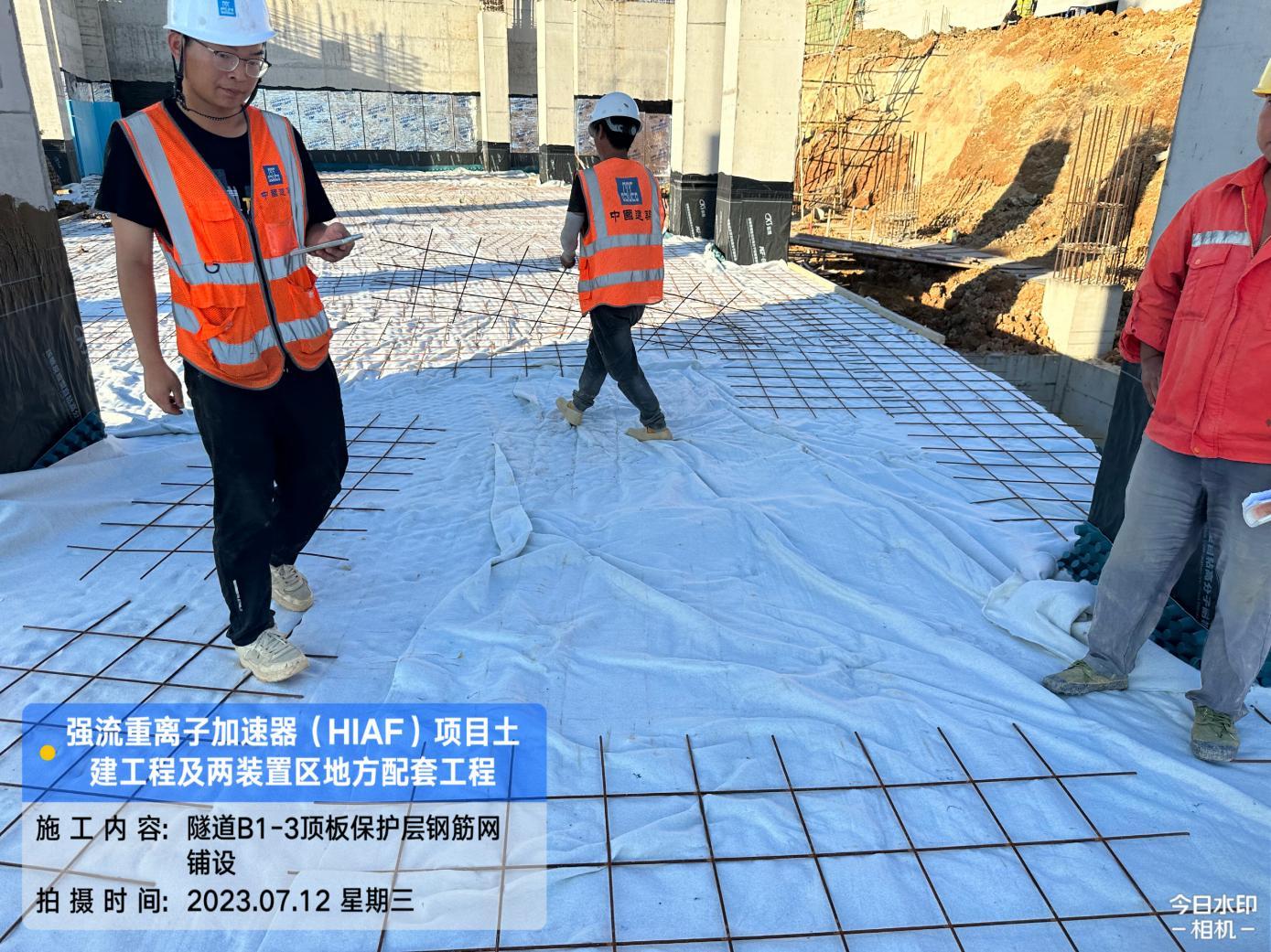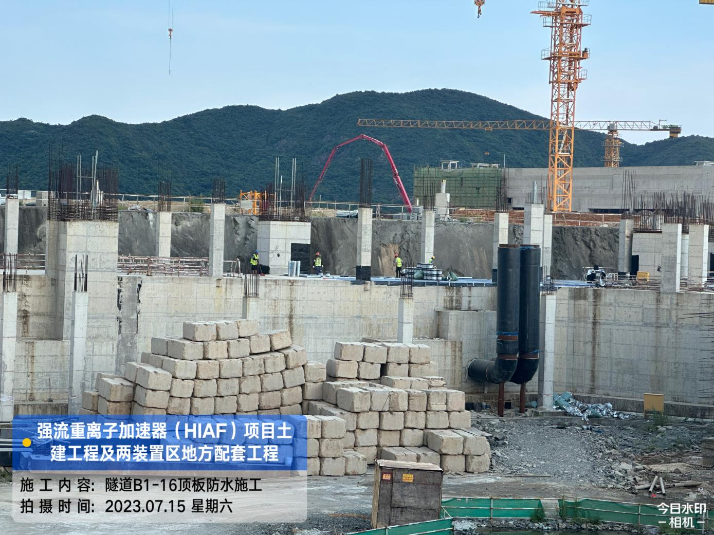 一、加速器隧道:B环B1-2/3/4顶板防水保护层浇筑完成;B1-1/16顶板防水完成;B1-3/4外环侧墙排水板、土工布完成40%,回填完成40%。直线隧道A1-2/3内环侧墙排水板、 土工布完成60%,土方回填完成60%;A1-2/3外环侧墙排水板、土工布完成50%,土方回填完成50%;A1-4/5内环底板牛腿防水完成。