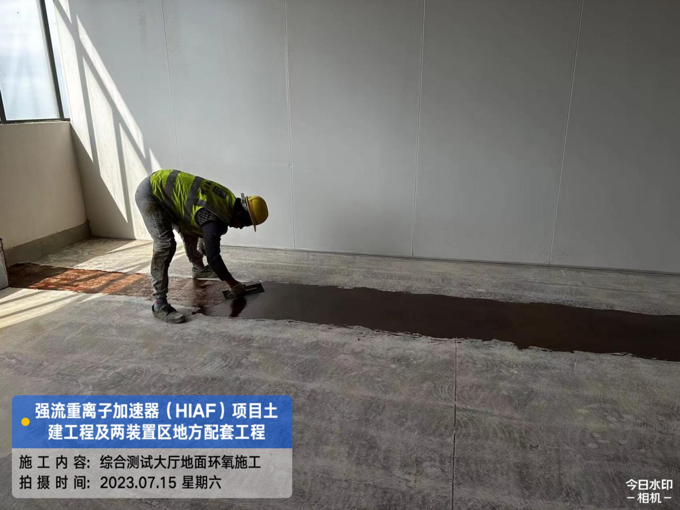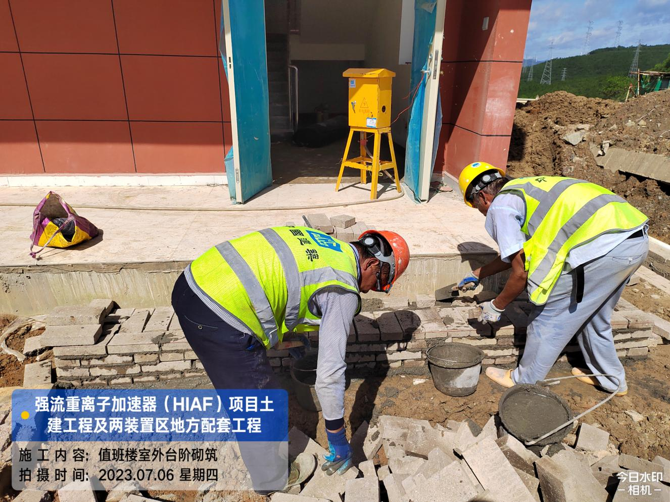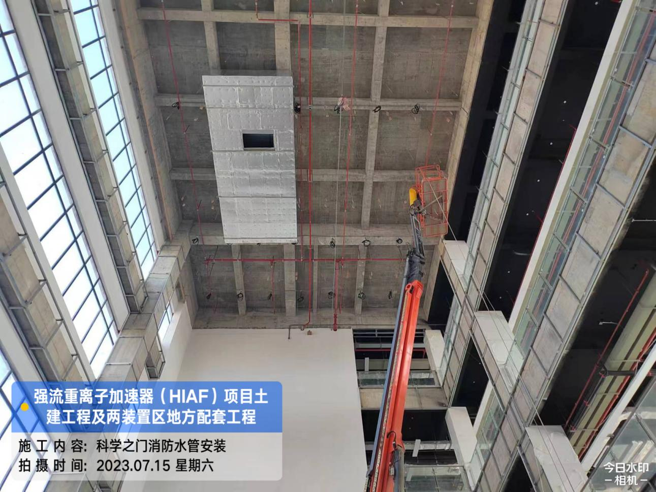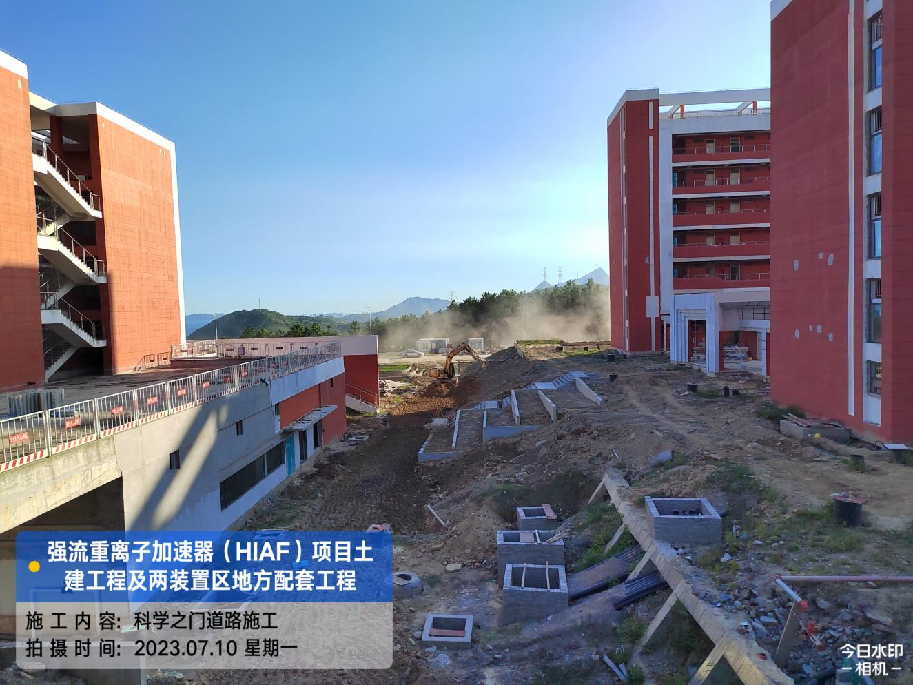 二、HIAF区其它单体:室外综合管廊L2-2段牛腿防水完成50%;L2-1段变更部位牛腿防水完成,保护砖砌筑完成50%,回填完成50%。一号制冷中心RC-F/H轴内墙粗一体化腻子完成60%,外墙甩浆挂网完成;RC-A/F轴外架拆除完成。综合测试大厅木门安装完成80%。一号测试大厅PC1-3段地梁钢筋绑扎完成,模板完成60%;PC1-2段地梁钢筋完成10%。二号测试大厅CB1-1段5.25标高至屋面内架搭设完成,结构柱钢筋完成50%;CB1-2段6.45标高至屋面结构柱钢筋完成50%;CB1-3段夹层(-0.05-6.45)梁柱混凝土浇筑完成;CB1-4首层柱钢筋绑扎完成,内架搭设完成;CB1-5地梁内回填完成50%。二号综合站房首层板混凝土浇筑完成,内架搭设完成30%。