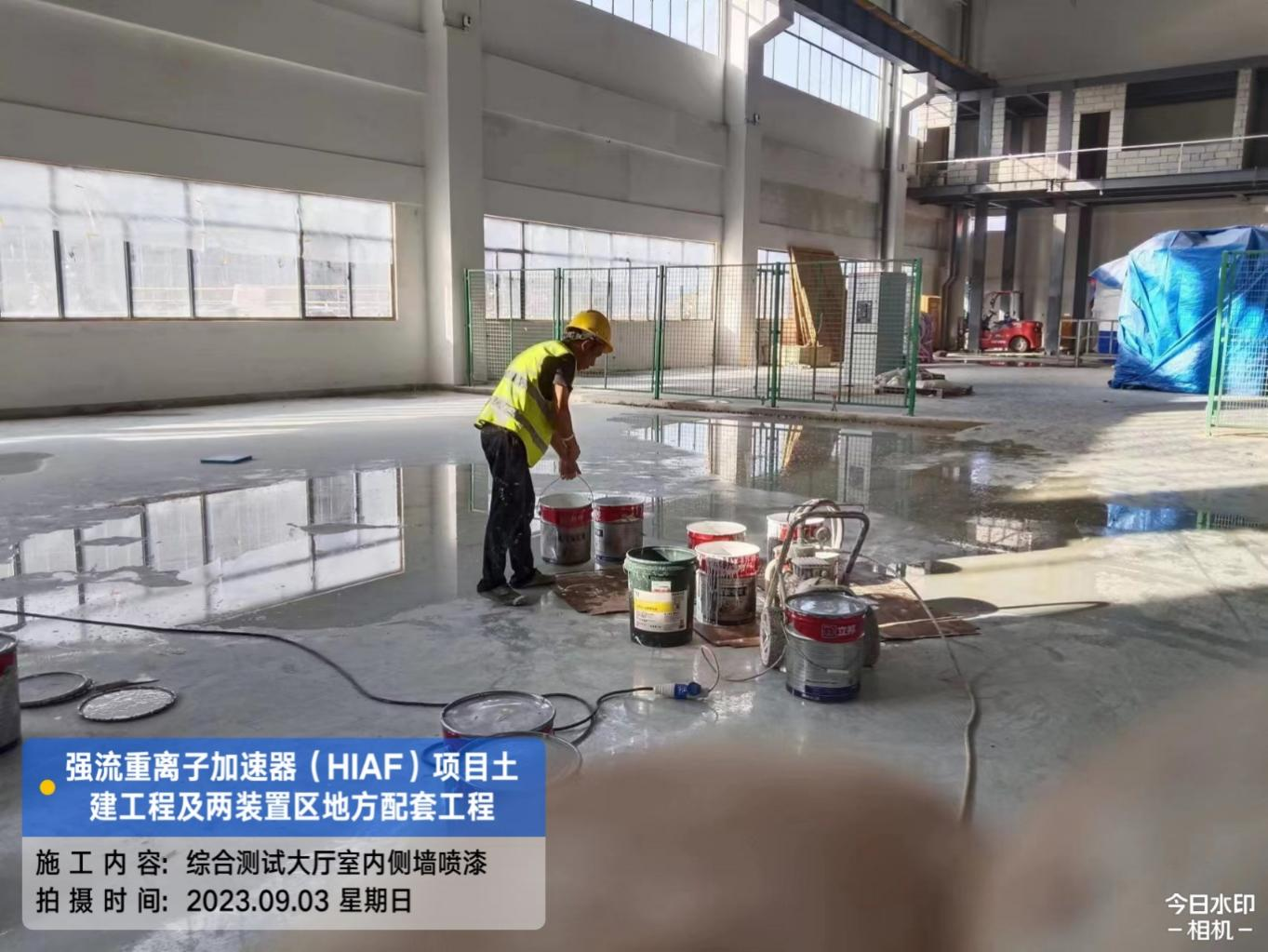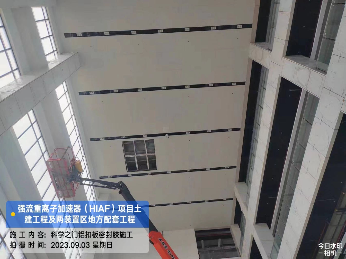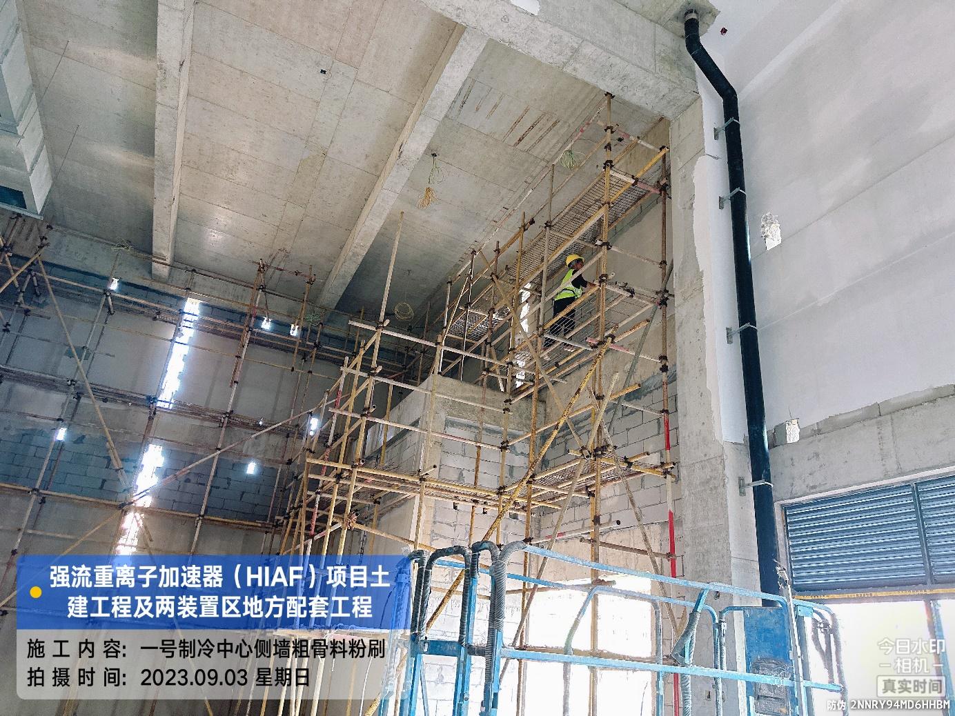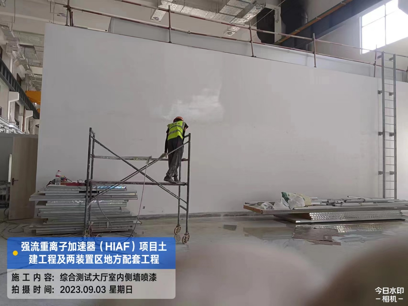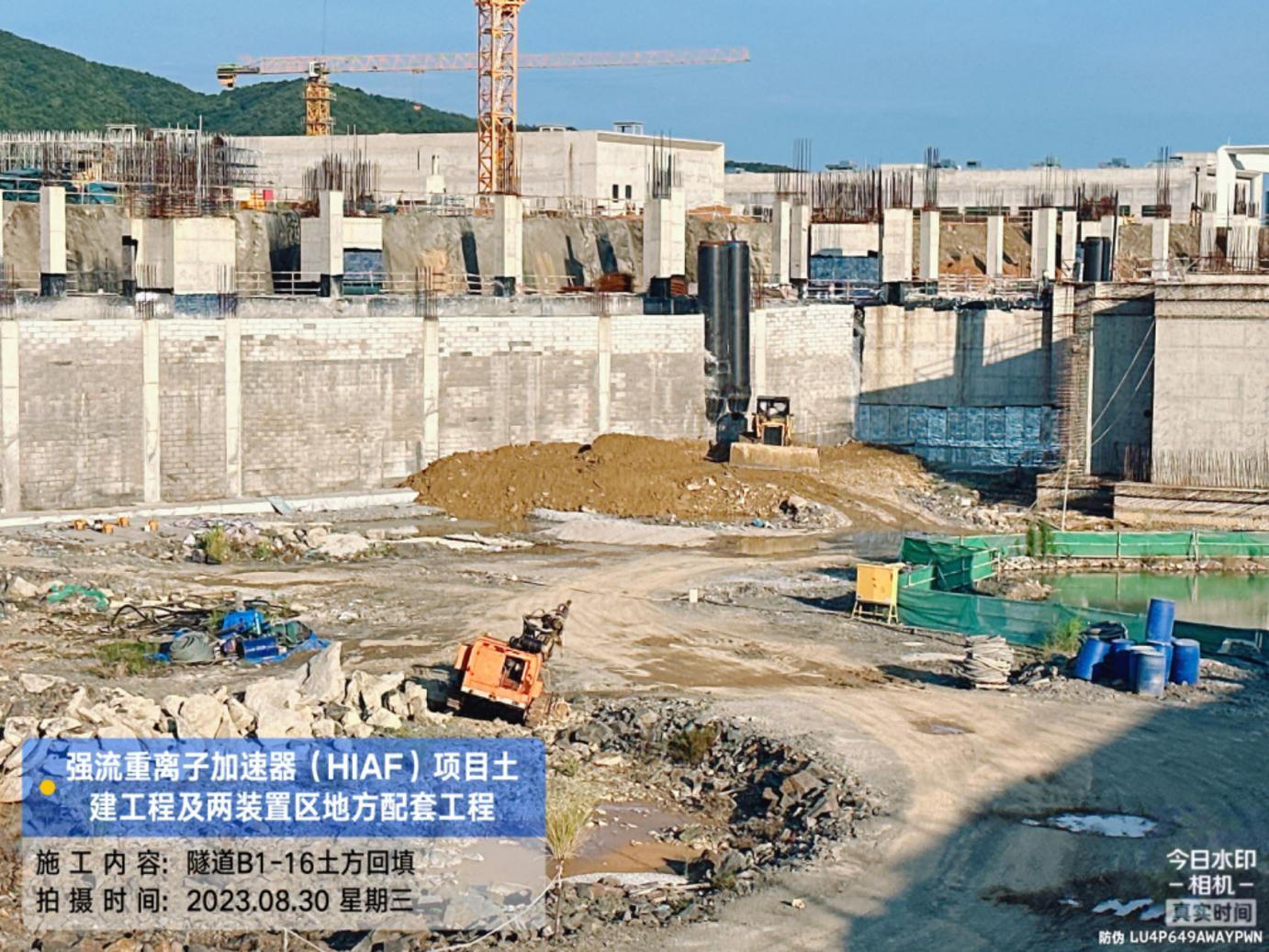 二、HIAF区其它单体:一号制冷中心RC-3至RC-4轴交RC-H至RC-G轴圈梁浇筑完成。综合测试大厅首层内墙涂料完成40%。一号测试大厅PC1-2段屋面钢筋模板支设完成30%;PC1-3段屋面混凝土浇筑完成;PC1-4段夹层混凝土浇筑完成50%,夹层钢筋模板完成90%;PC1-5段屋面钢筋模板完成60%;PC1-6段首层板混凝土浇筑完成50%;PC1-7段地梁钢筋完成100%。二号测试大厅CB1-5段屋面混凝土浇筑完成;CB1-4段(18-19轴)夹层钢筋完成;CB1-2段内架拆除清理完成100%;CB1-5段屋面挑板钢筋完成80%。二号综合站房屋面女儿墙混凝土浇筑完成。