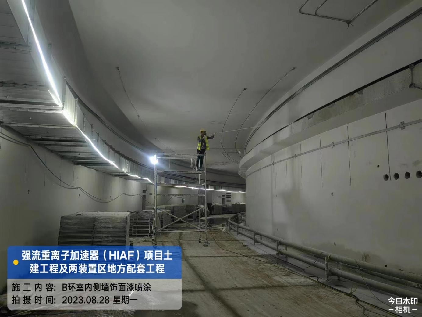 一、加速器隧道:B环B1-13/14/15/16顶板保护层完成;B1-2内外环侧墙排水板、土工布完成90%,土方回填完成90%;室内腻子饰面漆完成80%。