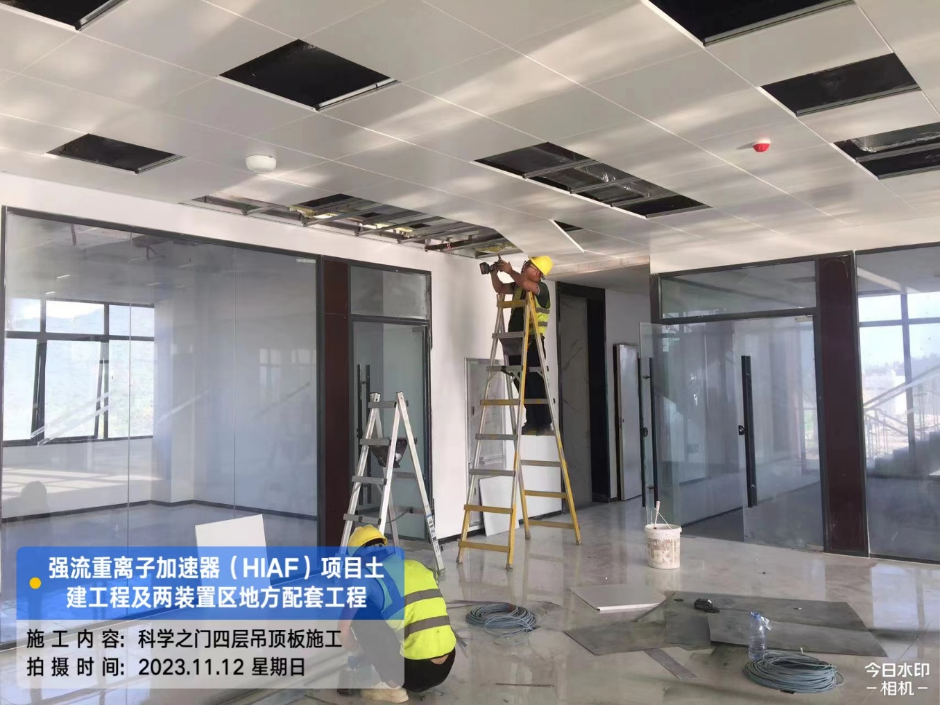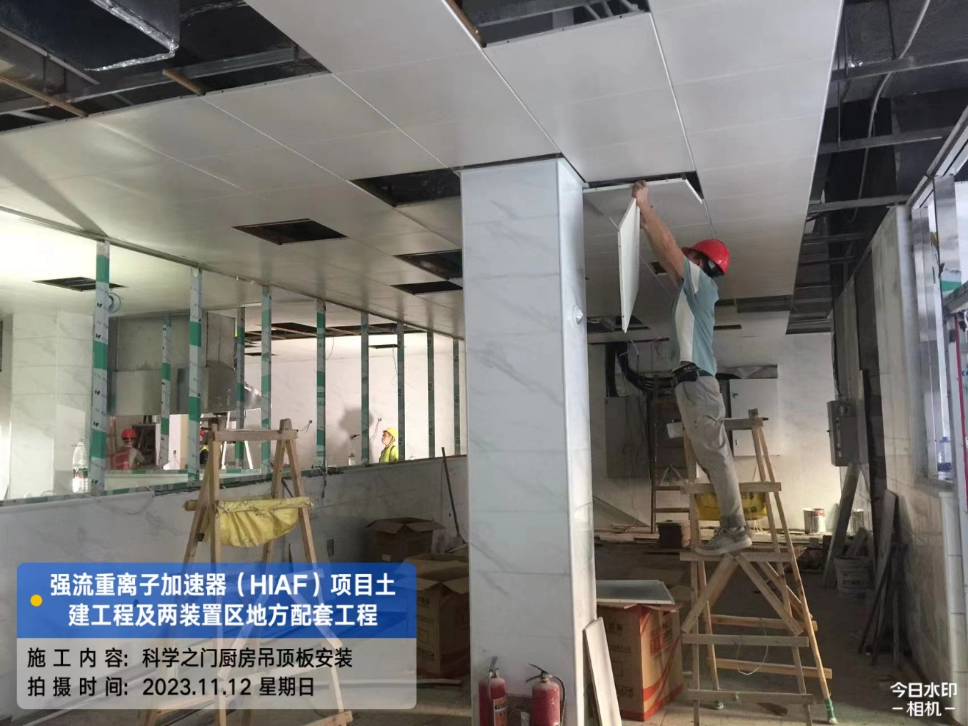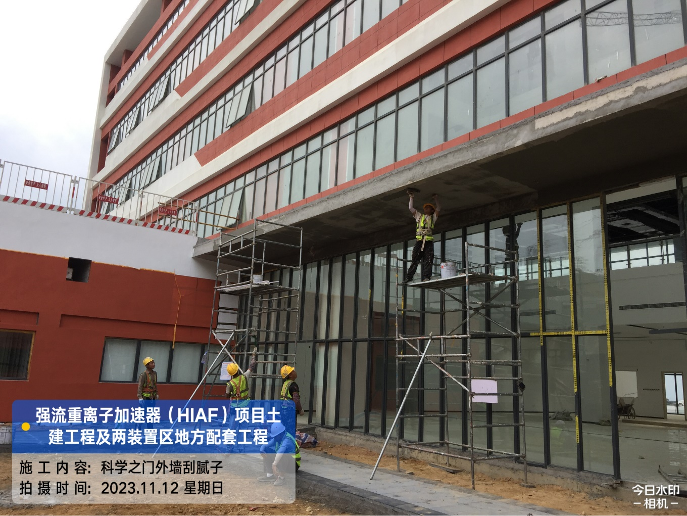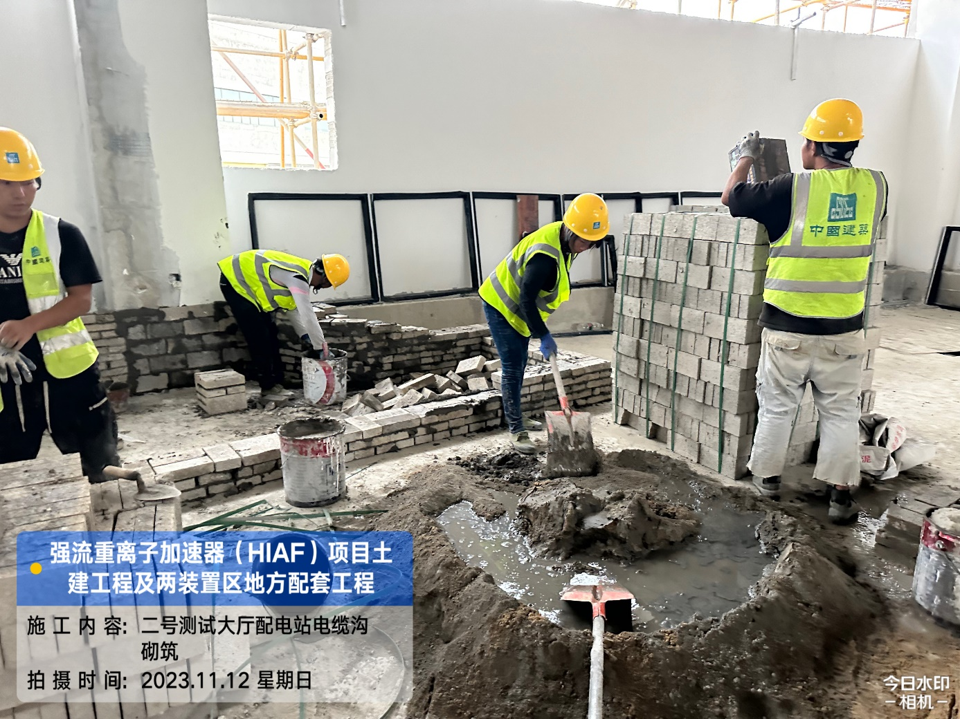 二、HIAF区其它单体:一号制冷中心RC-4轴外墙抹灰完成30%。综合测试大厅TH-3轴外墙抹灰完成。一号测试大厅PC1-1段屋面混凝土浇筑完成;PC1-8段(2/PC-42至PC-49轴)地梁混凝土浇筑完成;PC1-3段砌筑完成90%;PC1-4段砌筑完成40%;PC1-5段砌筑完成70%;PC1-6段砌筑完成30%。二号测试大厅屋面防水完成90%,屋面防水保护层完成30%;内墙抹灰完成40%,2.5以下构造柱浇筑完成90%。一号综合站房(2)内架拆除完成80%,(3)2.05m梁混凝土浇筑完成。二号综合站房内墙抹灰完成90%,顶棚腻子完成40%,窗框安装完成70%。直线设备楼2号楼LB2-3段(LB2-11至LB2-16轴)12.1m板混凝土浇筑完成,LB2-4段(LB2-16至LB2-19轴)8.6m板混凝土浇筑完成。室外综合管廊GL-A至GL-C轴牛脚、侧墙防水完成。室外E+420~520消防车道混凝土浇筑完成。