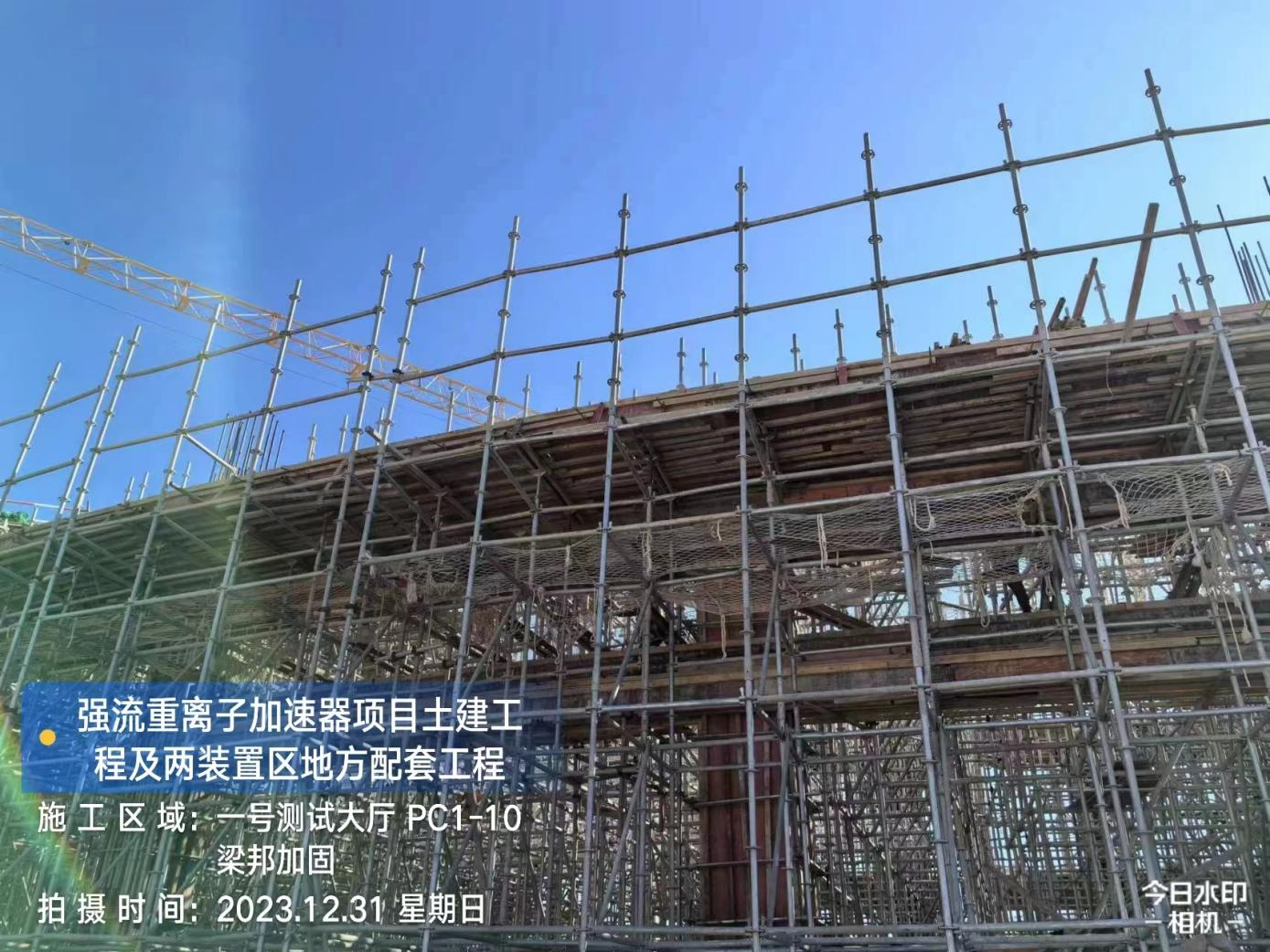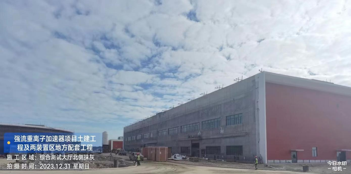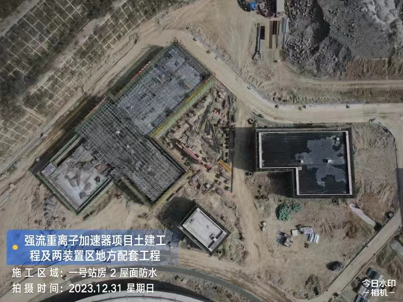 二、HIAF区其它单体:室外综合管廊GL-AC轴、GL-W轴侧墙回填完成80%。一号制冷中心RC-F/H轴地坪施工完成80%。综合测试大厅室外道路混凝土浇筑完成60%,西侧电缆沟完成20%。一号测试大厅PC1-10夹层钢筋完成,PC2-6段地面完成。二号测试大厅内环外墙抹灰完成100%,CB01/02配电室地面环氧完成,室内地面完成85%,外环外墙油漆完成85%。一号综合站房(1#)首层 5.2 米结构施工完成 100%,(2#)屋面防水完成,砌筑完成100%,内墙抹灰完成60%,(3#)砌筑完成70%。二号综合站房首层至7.4梁柱混凝土浇筑完成。直线设备楼(1#)7.1 米标高柱钢筋完成,屋面模板完成 50%;(2#)LB2-1~LB2-2交LB2-B~LB2-C轴结构完成100%。室外一号制冷中心衰变池浇筑完成,直线设备楼(1#)衰变池底板钢筋绑扎完成50%,消防车道D线排水沟砌筑完成20%,消防车道L线、J线路灯完成80%,消防车道Y线路基回填完成,一号制冷中心、二号综合站房人行道完成100%。