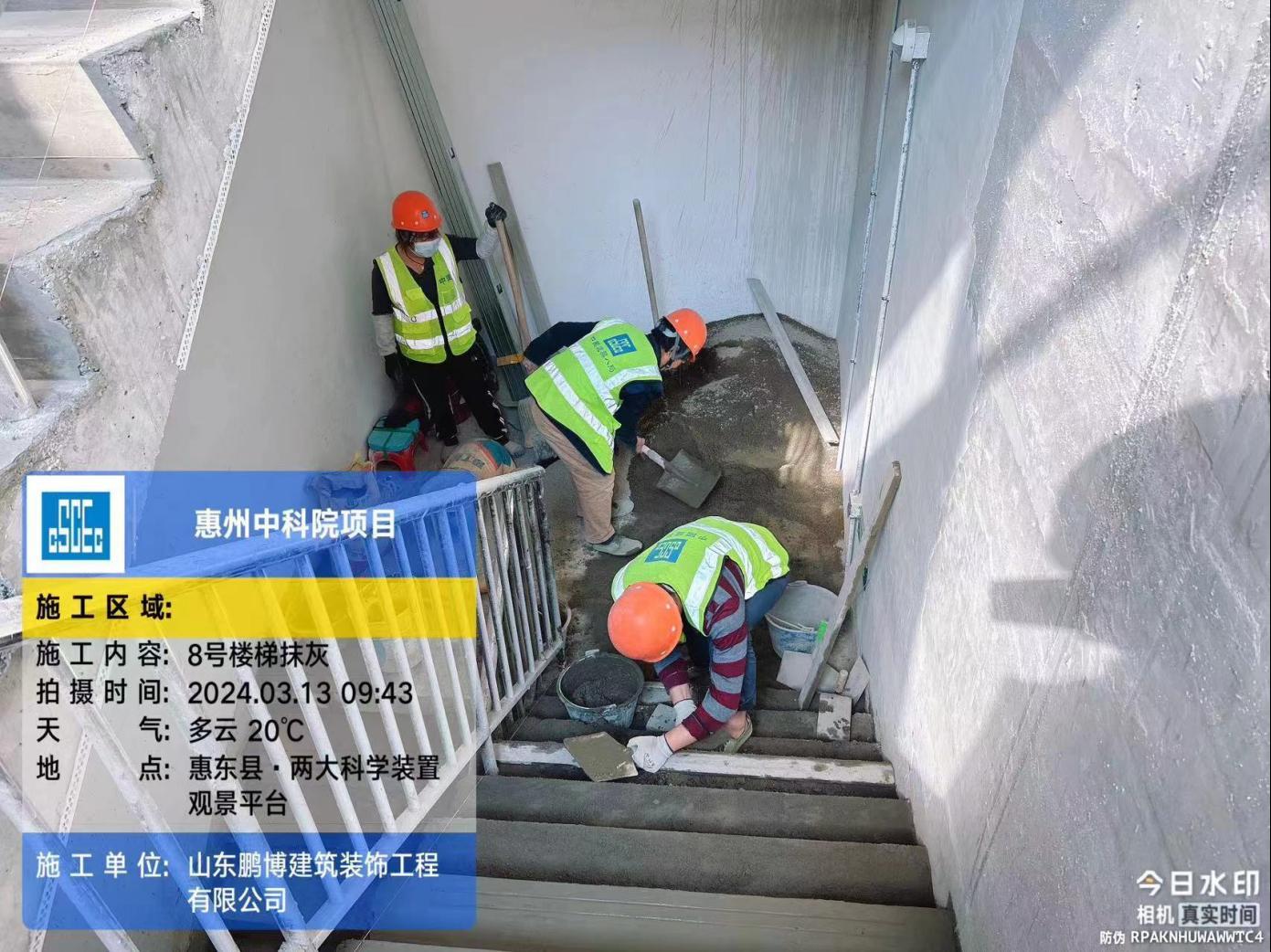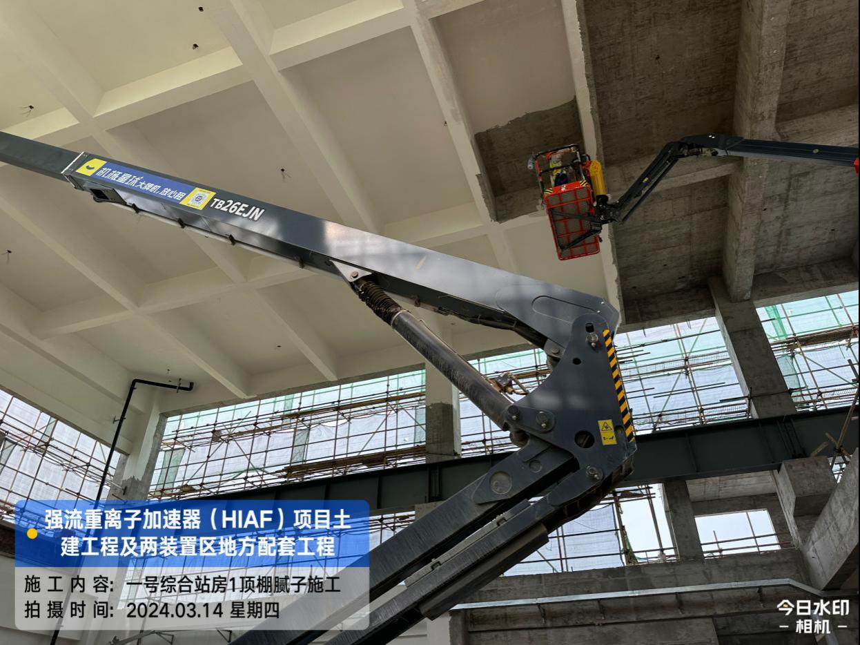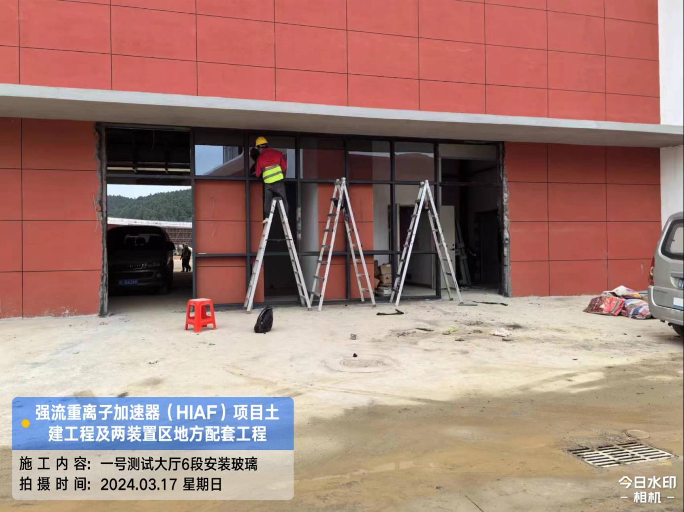 一、加速器隧道:直线隧道A1-1段离子源大厅地面环氧完成,室外楼梯口内外抹灰完成,A1-6段屏蔽门钢结构安装完成1个。B环隧道设备间环氧地坪底漆完成。高能综合终端2号楼梯踏步踢脚线完成。HFRS隧道C2-1段8号楼梯踏步踢脚线完成,屏蔽门钢结构安装完成2个。