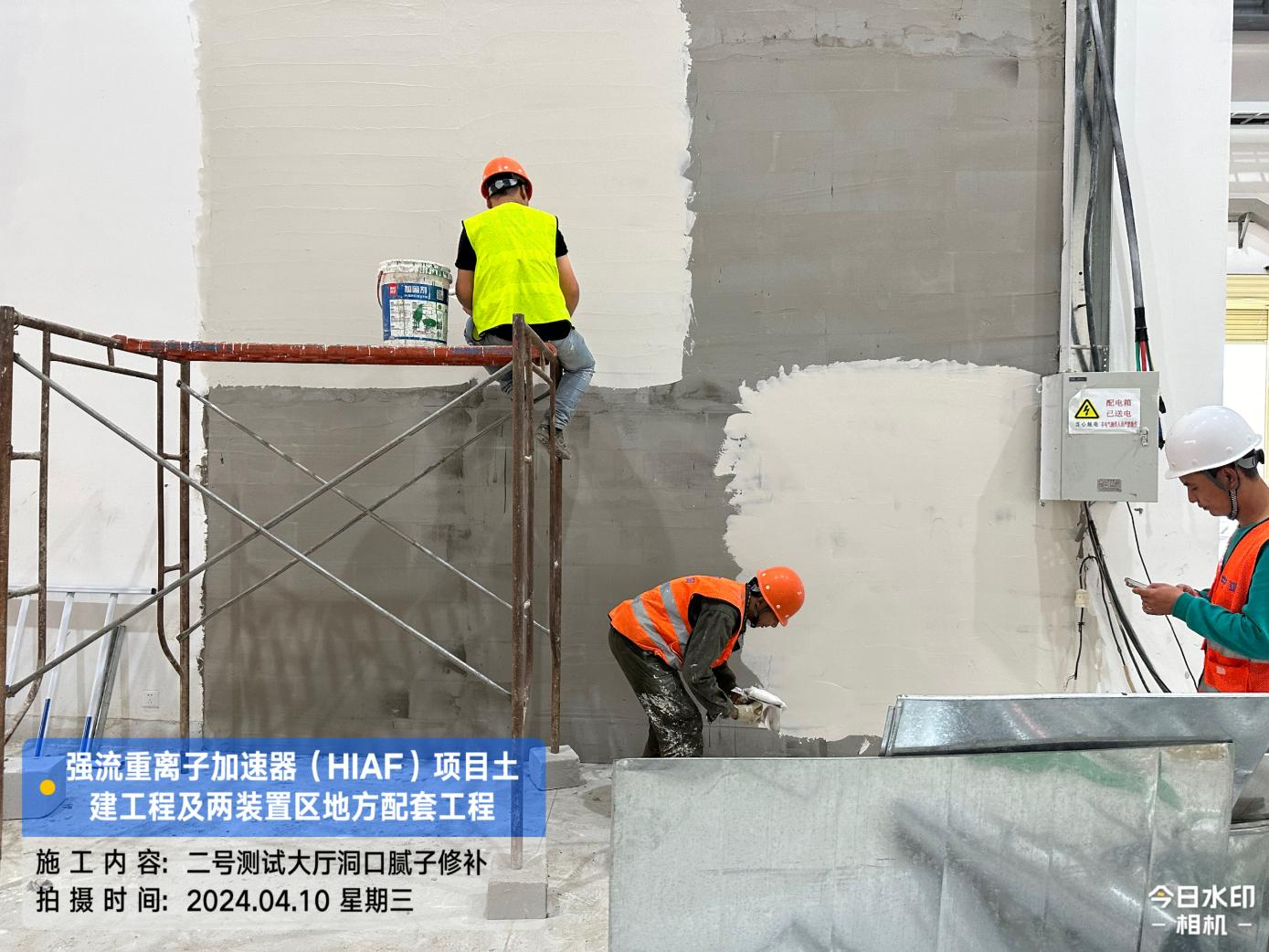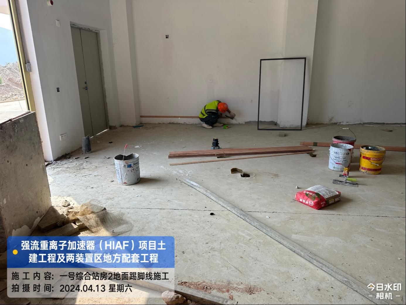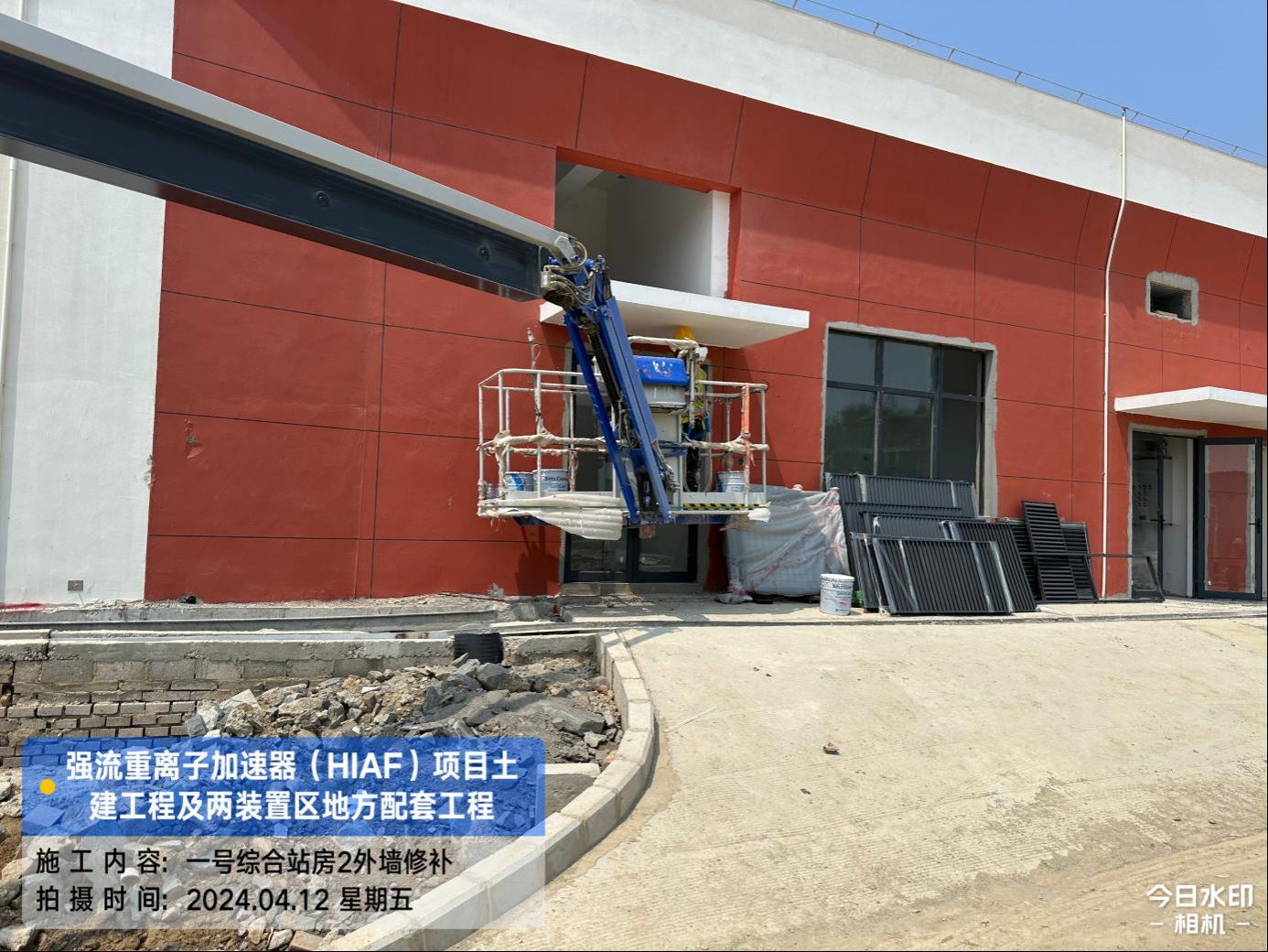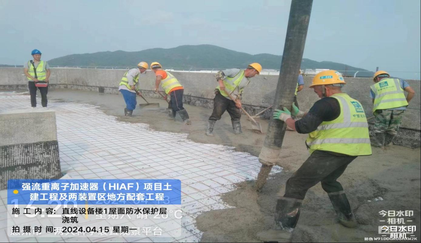 二、HIAF区其它单体:一号测试大厅PC1-9段卫生间贴砖完成,门安装完成。二号测试大厅管井抹灰腻子完成,电梯洞口封堵抹灰完成,电梯门洞装饰板完成30%。一号综合站房(1#)内墙抹灰腻子完成90%,外墙抹灰完成100%,外墙油漆完成45%,门窗框安装完成80%;(2#/3#)外墙油漆修补完成80%。直线设备楼(1#)门窗安装完成85%,外墙涂料完成90%,屋面保护层完成60%;(2#)屋面保护层完成100%,门窗框安装完成90%。室外直线设备楼(1#)室外人行道浇筑完成70%;直线设备楼(2#)室外东侧人行道浇筑完成60%;道路H线KO+140~220段道路浇筑完成50%。