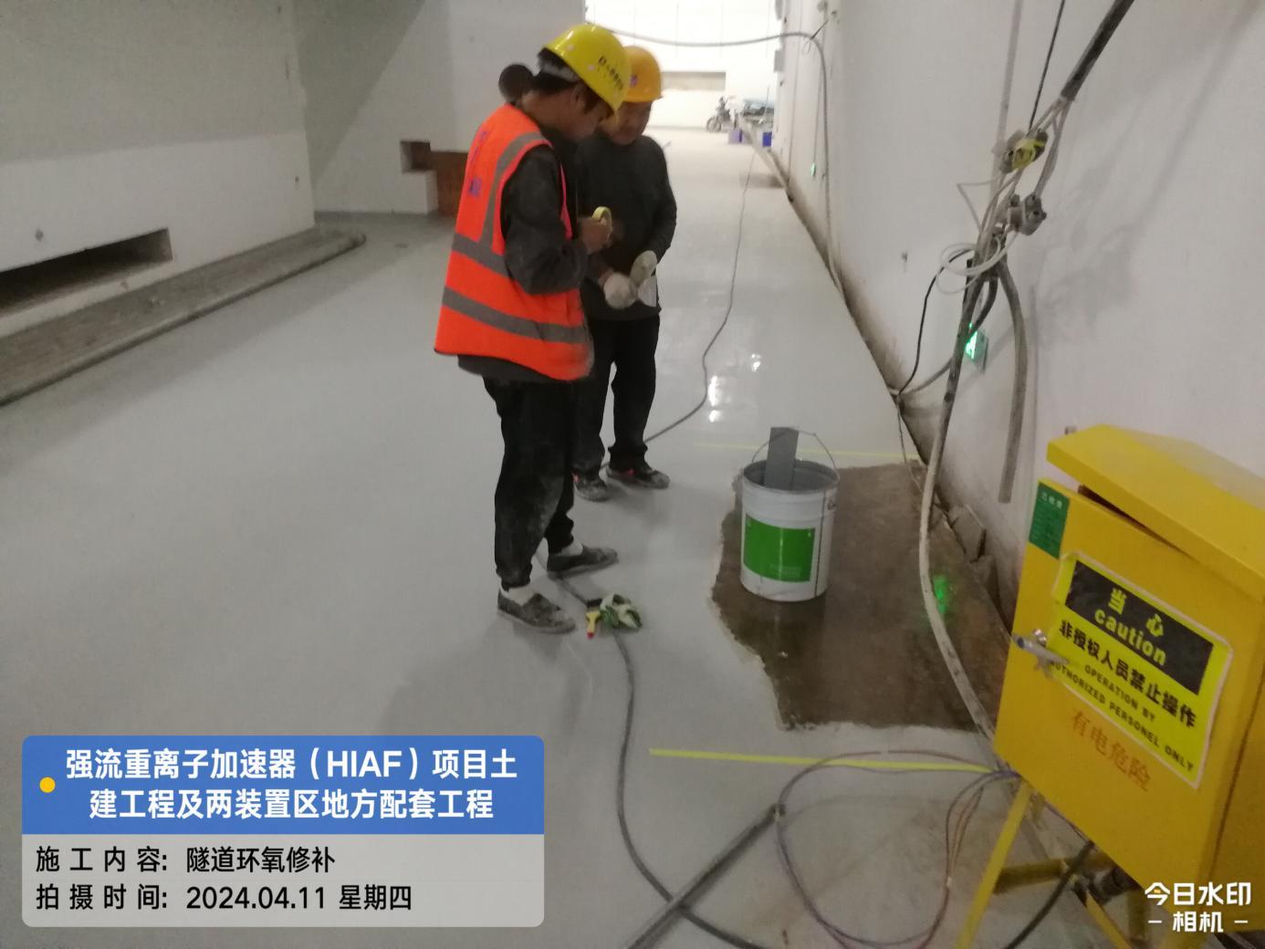 一、加速器隧道:直线隧道A1-1段顶板防水卷材铺设完成,室外楼梯口外墙油漆涂料完成;A1-2段地坪环氧漆完成;A1-9段地坪环氧漆完成。S环隧道排水沟环氧漆完成。H隧道排水沟环氧漆完成。高能综合终端2号楼梯间贴砖完成。