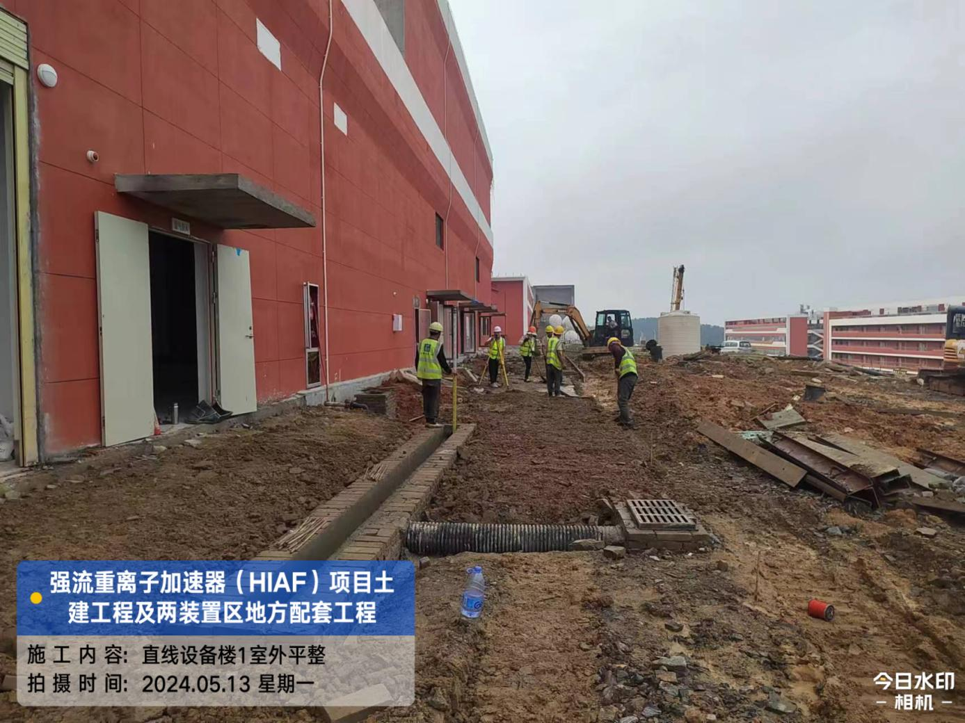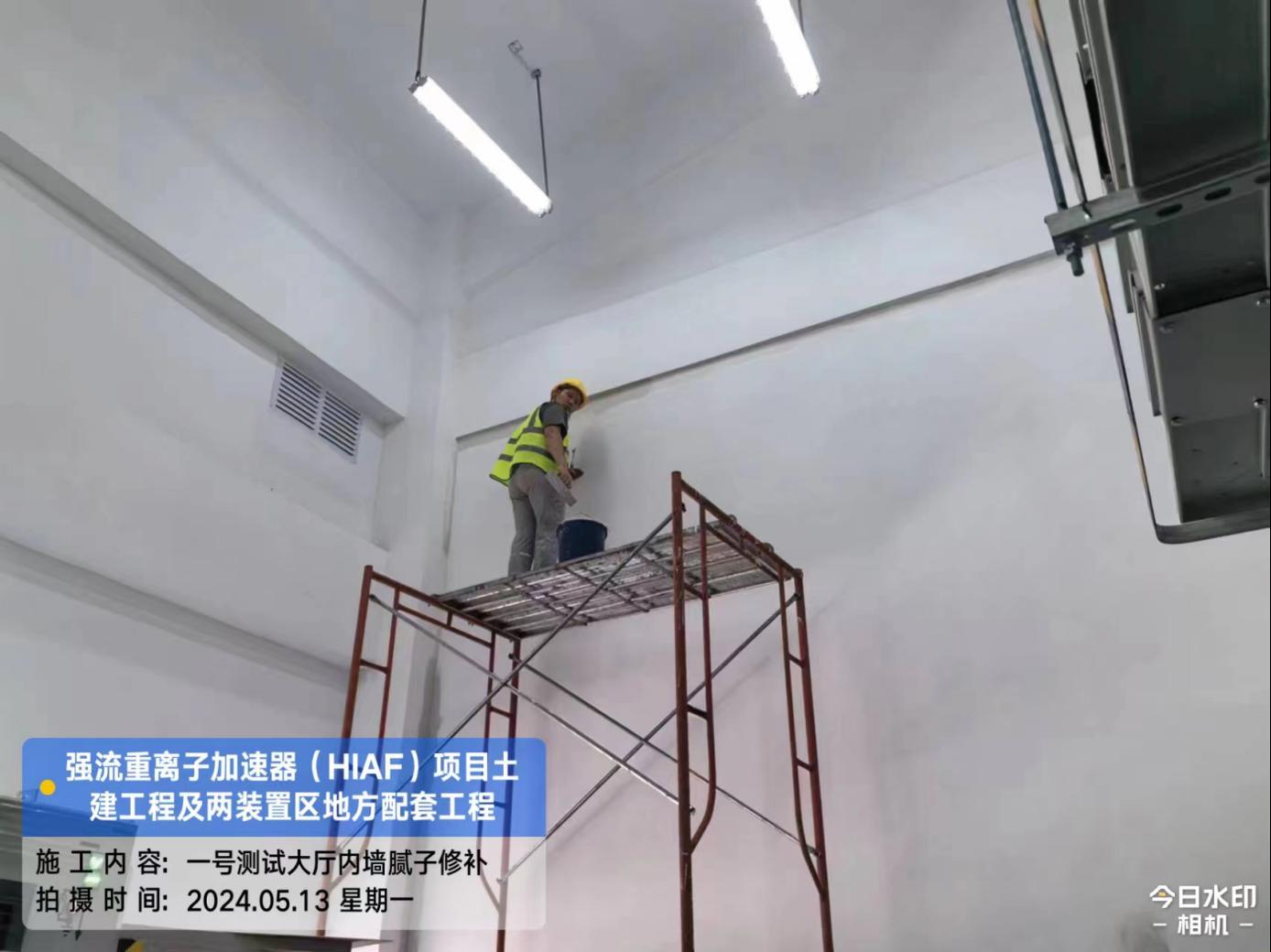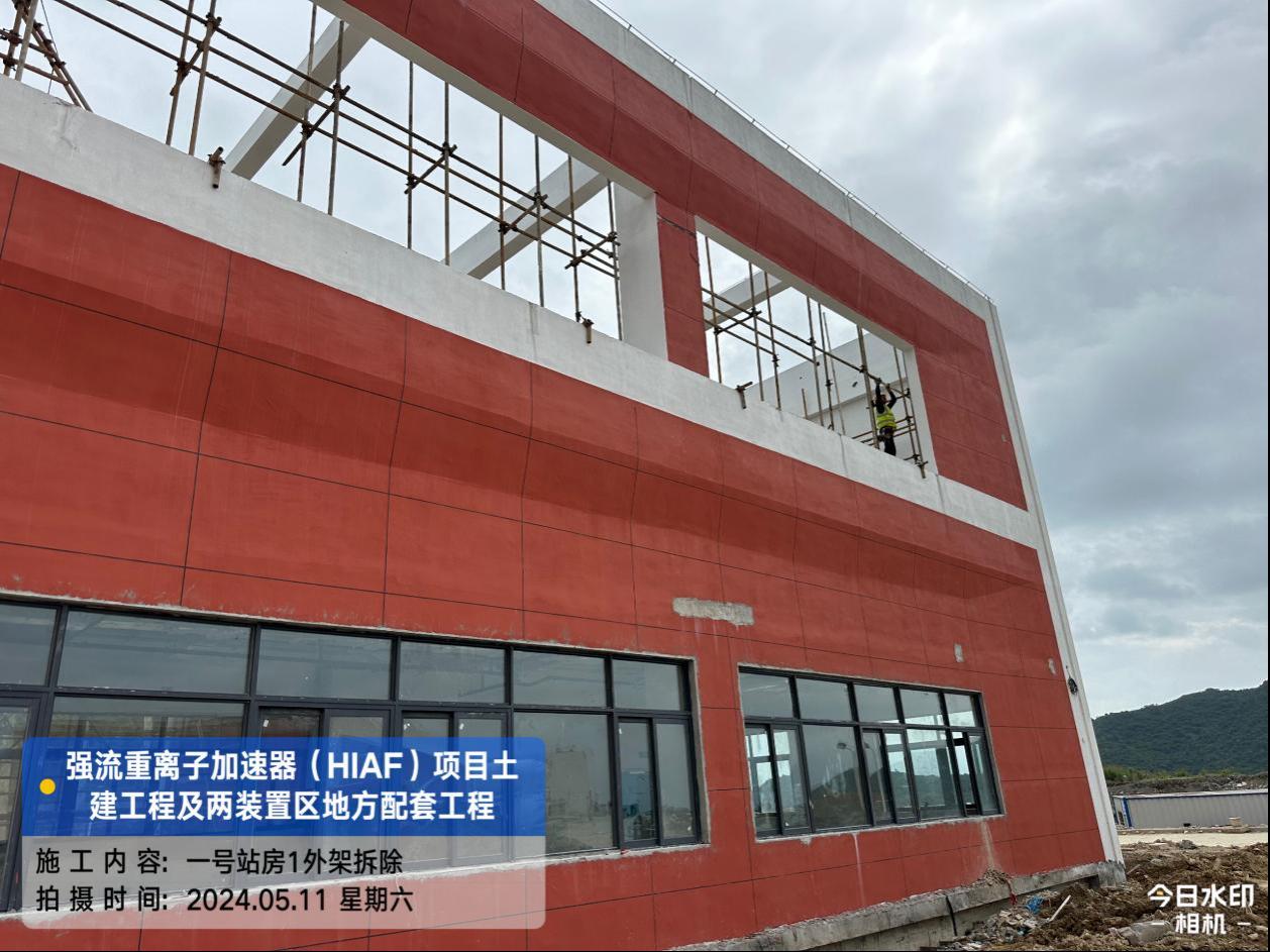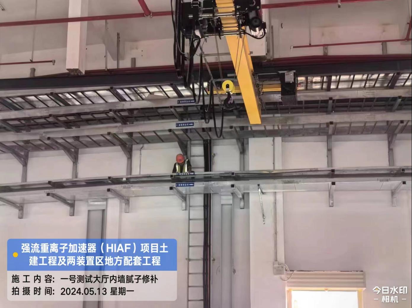 二、HIAF区其它单体:一号测试大厅屋面内环水沟内侧施工完成;屋面上半环外环水沟圆弧角施工完成80%。二号测试大厅室内修补完成95%。一号综合站房(1#)外墙油漆完成98%,外架拆除完成。室外消防车道AH K0+680-760混凝土浇筑完成50%;直线设备楼(1#)西侧步行道浇筑(恢复)完成70%。