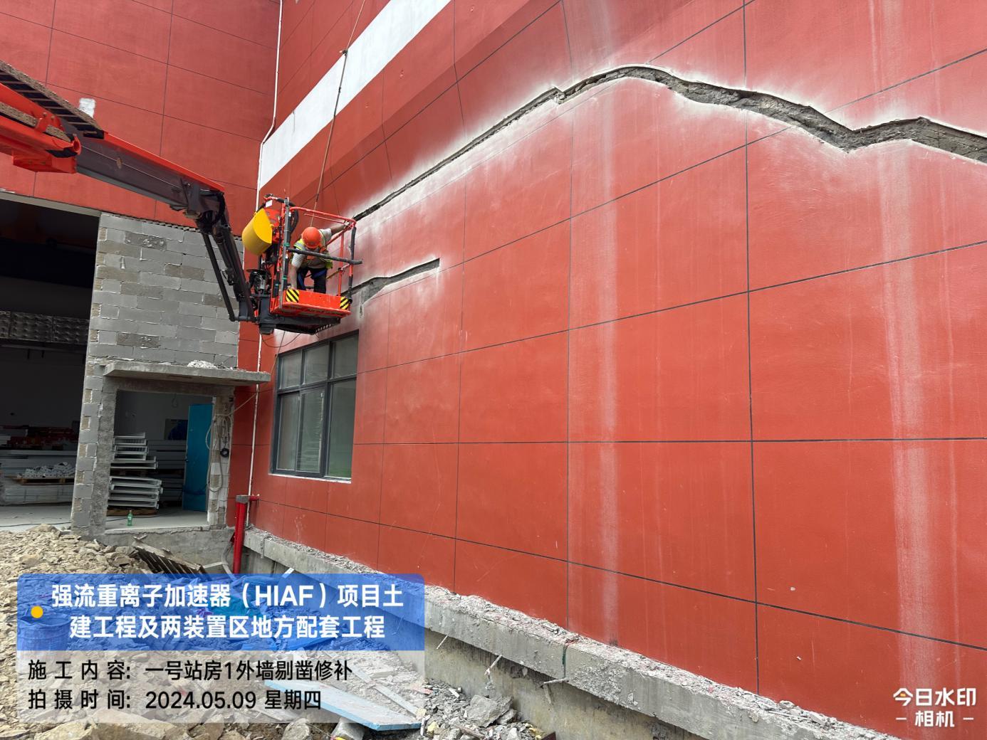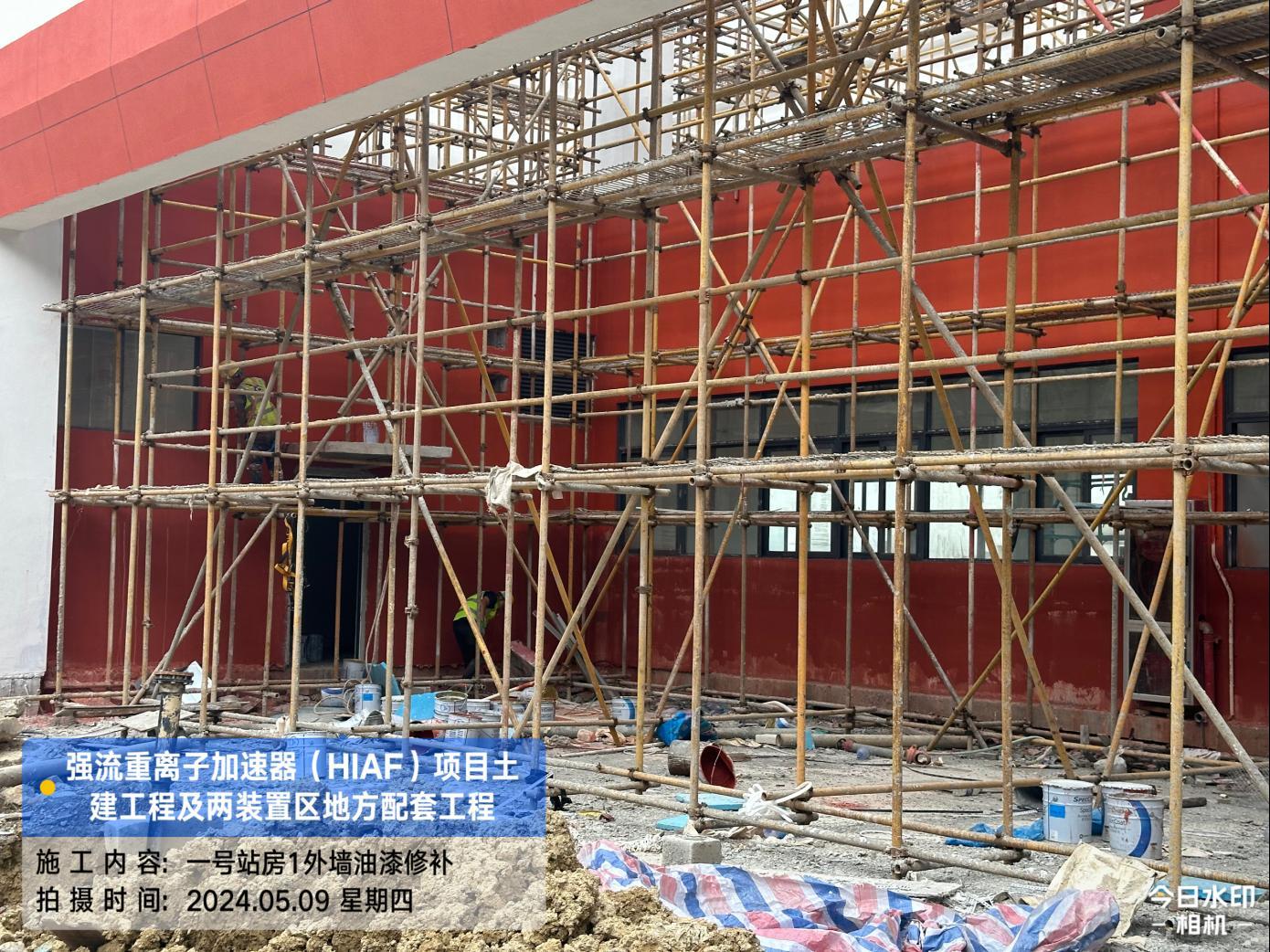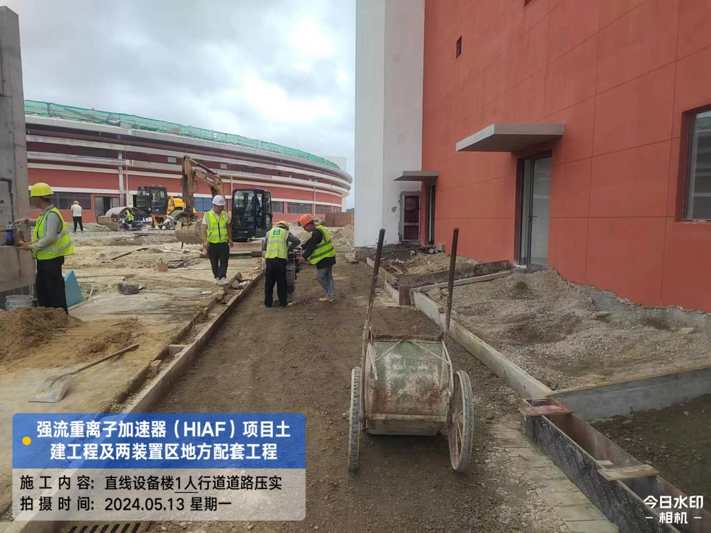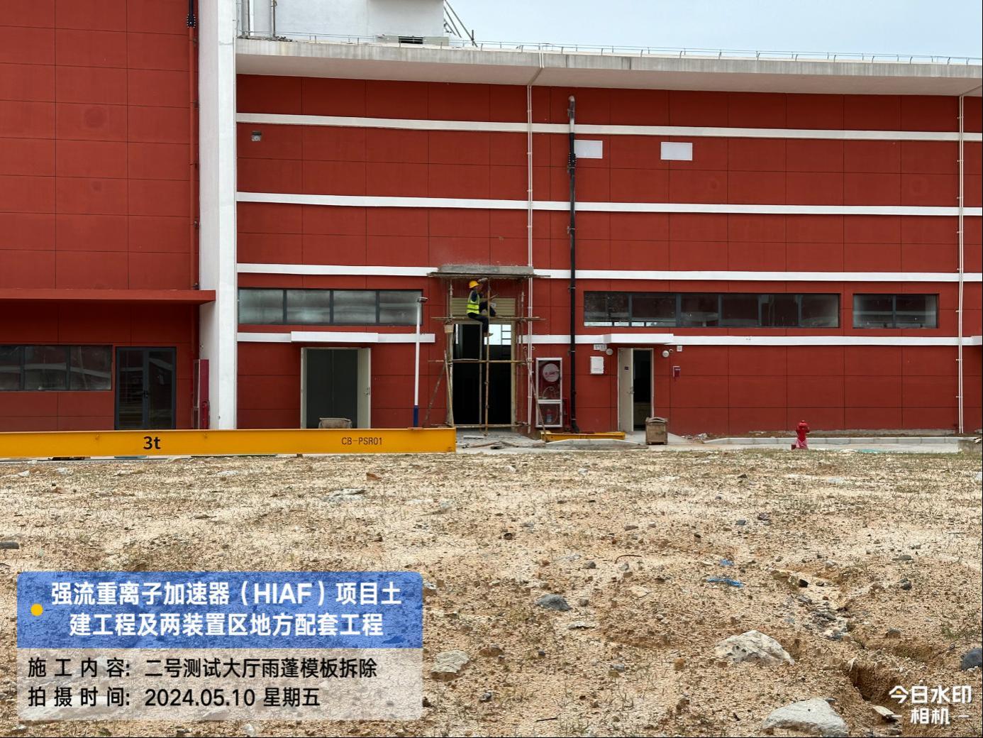 二、HIAF区其它单体:一号测试大厅屋面内环水沟内侧施工完成;屋面上半环外环水沟圆弧角施工完成80%。二号测试大厅室内修补完成95%。一号综合站房(1#)外墙油漆完成98%,外架拆除完成。室外消防车道AH K0+680-760混凝土浇筑完成50%;直线设备楼(1#)西侧步行道浇筑(恢复)完成70%。
