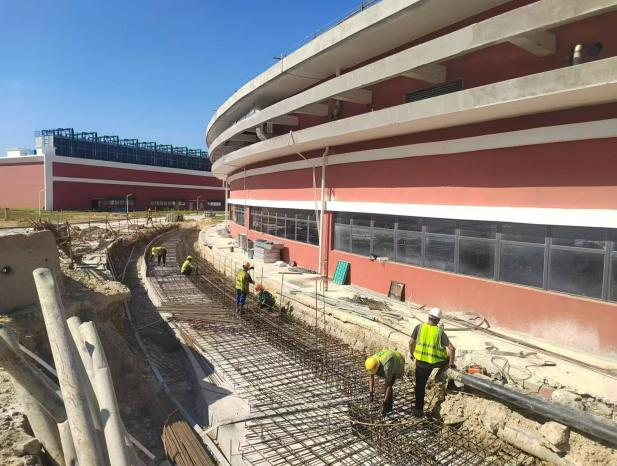 二、HIAF区其它单体:一号测试大厅屋面水沟防水完成50%。直线设备楼二西侧外墙新增漏点处理完成;屋面百叶安装完成;施工预留屋面防水保护层浇筑完成。室外一号测试大厅外环新增悬臂式挡土墙整体完成40%;一号制冷中心排水沟浇筑完成70%。