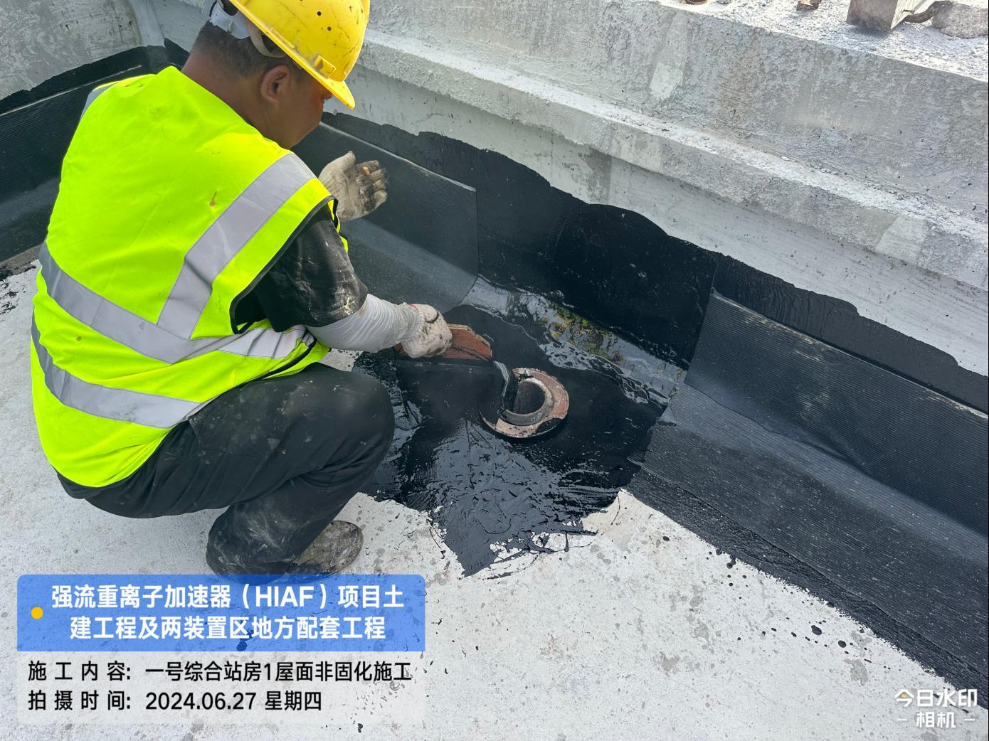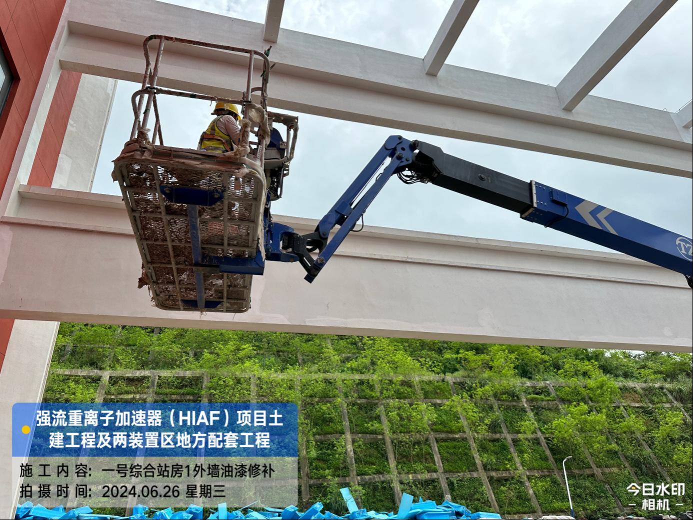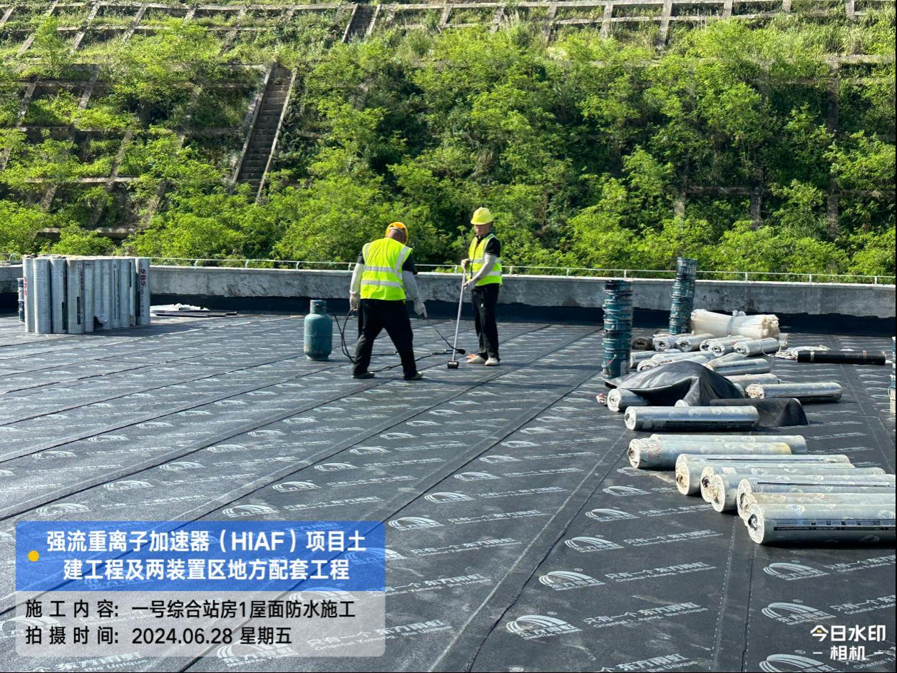 二、HIAF区其它单体:综合管廊水沟角铁安装完成10%,墙底踢脚线施工完成50%。一号综合站房(1#)外墙油漆修补完成80%,屋面防水完成30%。室外一号测试大厅内环道路注浆完成100%;一号综合站房新增悬臂式挡土墙混凝土浇筑完成100%(变更);一号测试大厅外环新增悬臂式挡墙开挖完成50%(变更);直线设备楼(2#)新增挡墙第二段混凝土浇筑完成50%(变更);B06、08、09智能化电缆沟侧墙浇筑完成100%;综合测试大厅新增排水沟混凝土浇筑完成80%(变更)。